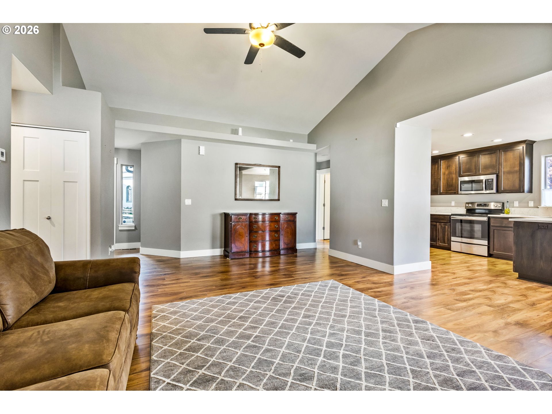 Beautifully maintained and truly move-in ready, this home offers a spacious open floor plan with luxury vinyl plank flooring throughout, soaring ceilings, and a cozy gas fireplace. Enjoy outdoor living on the covered patio overlooking the easy-care lawn.The large primary suite features a generous walk-in closet, a walk-in shower, and private access to the patio. The kitchen is bright and inviting with an eat-in bar, abundant counter space, and a convenient pantry—perfect for everyday living and entertaining.With plenty of storage throughout and a fantastic location just minutes from town, this home blends comfort, convenience, and style. It’s ready for you to move in and enjoy!