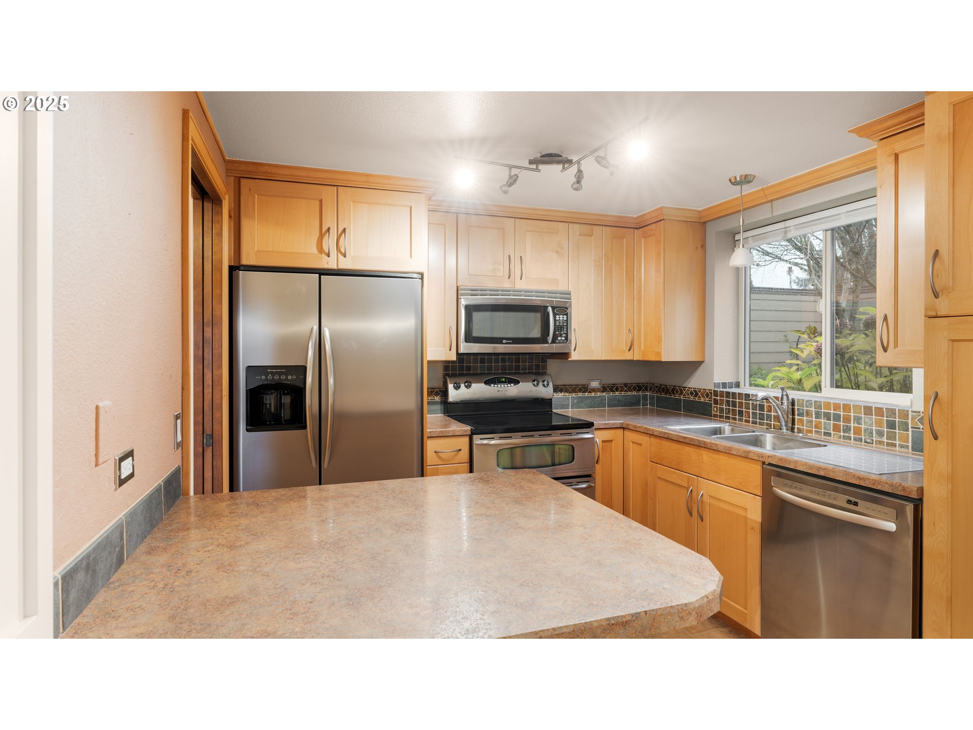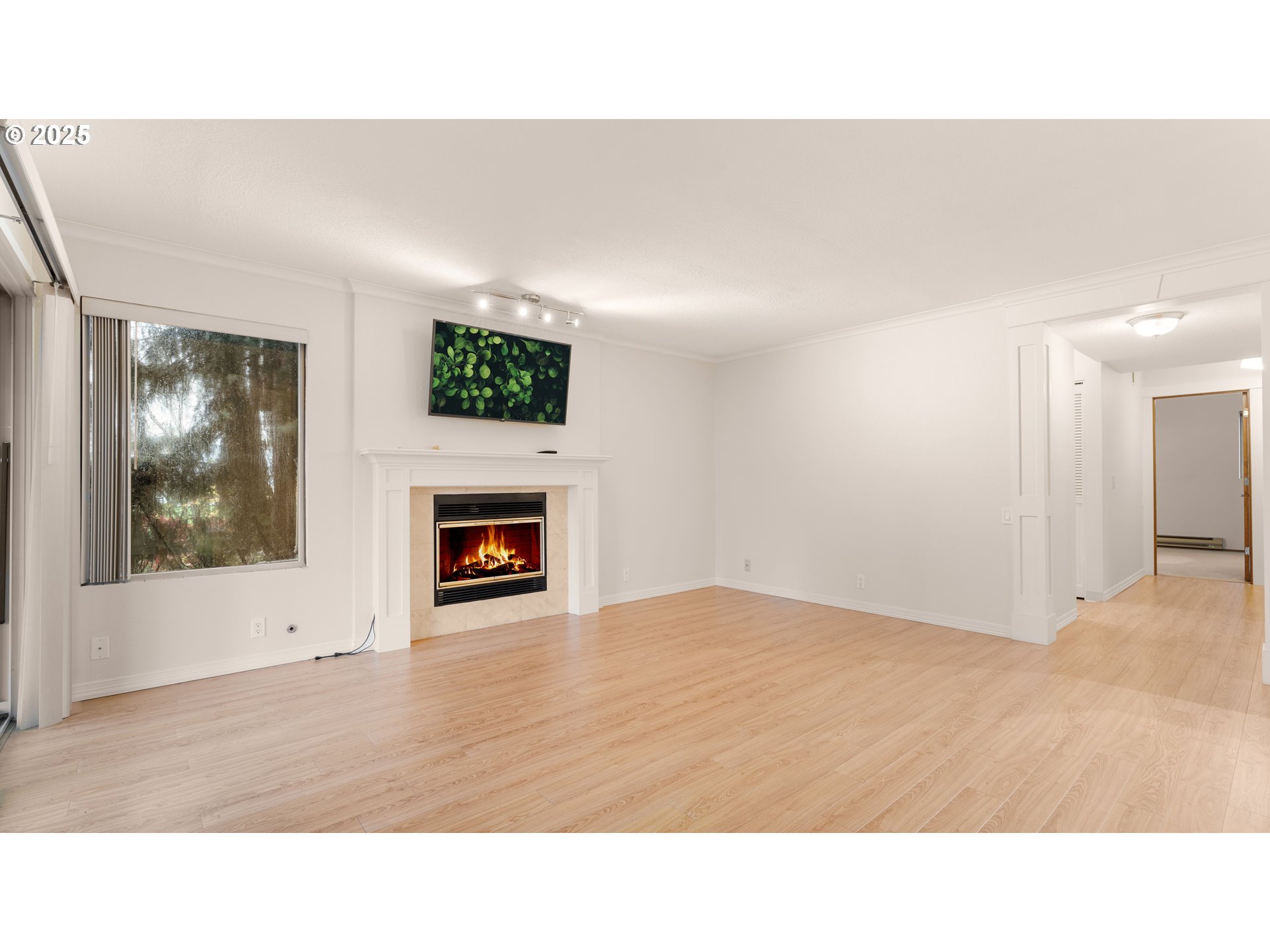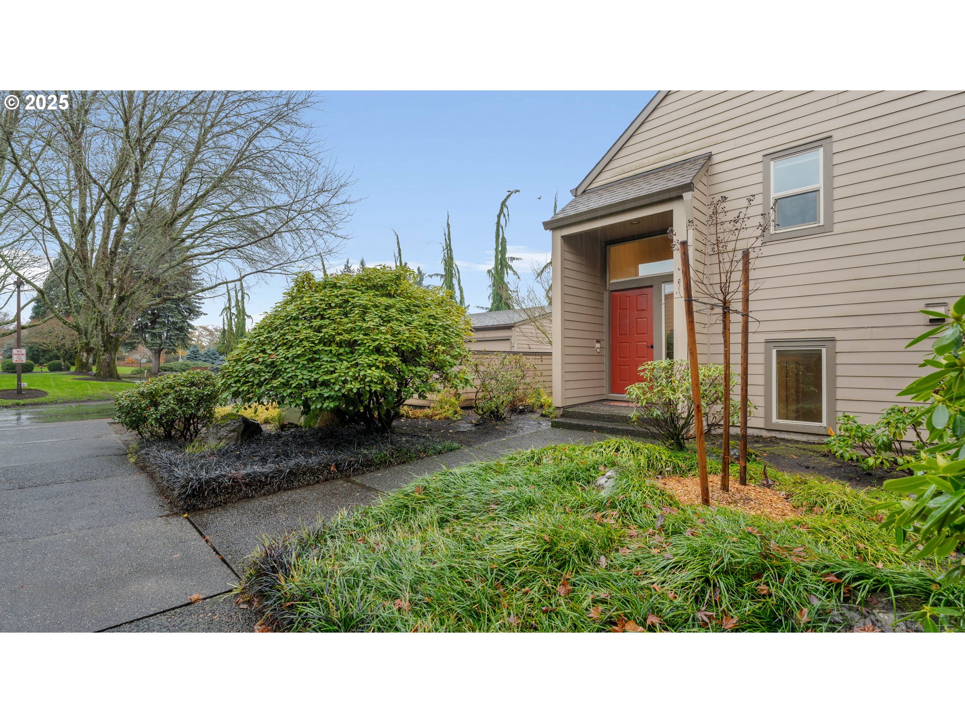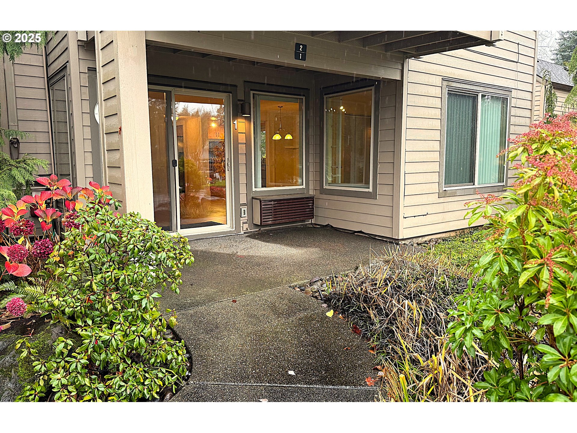 Enjoy a beautiful view of the 7th green from this updated ground-level unit, offering rare street access with no stairs. The kitchen features stainless steel appliances including the refrigerator, plus a tiled backsplash, pantry, and convenient eating bar. The open great room stands out with laminate oak flooring, a cozy gas fireplace, and a sleek wall-mounted flat-screen TV. Two private covered patios extend your living space outdoors. The spacious primary suite includes generous closet space and a private bathroom. The second bedroom, with French doors, could easily serve as a den or home office. A second full bathroom offers a walk-in shower for added convenience. Additional highlights include an in-unit laundry area with washer and dryer, and an extra-deep detached one-car garage. This condo is situated in a vibrant 55+ planned community, offering an array of upscale amenities to elevate your lifestyle. Residents enjoy access to a golf course, a spacious clubhouse, a sauna, a swimming pool, billiards, ping-pong tables, an arts and crafts studio, a ballroom, a library, meeting rooms, and an event center. Conveniently located near grocery stores, restaurants, shopping, and 15 mins to PDX International airport. Experience the best of active adult living in this meticulously maintained community. Schedule your private tour today!