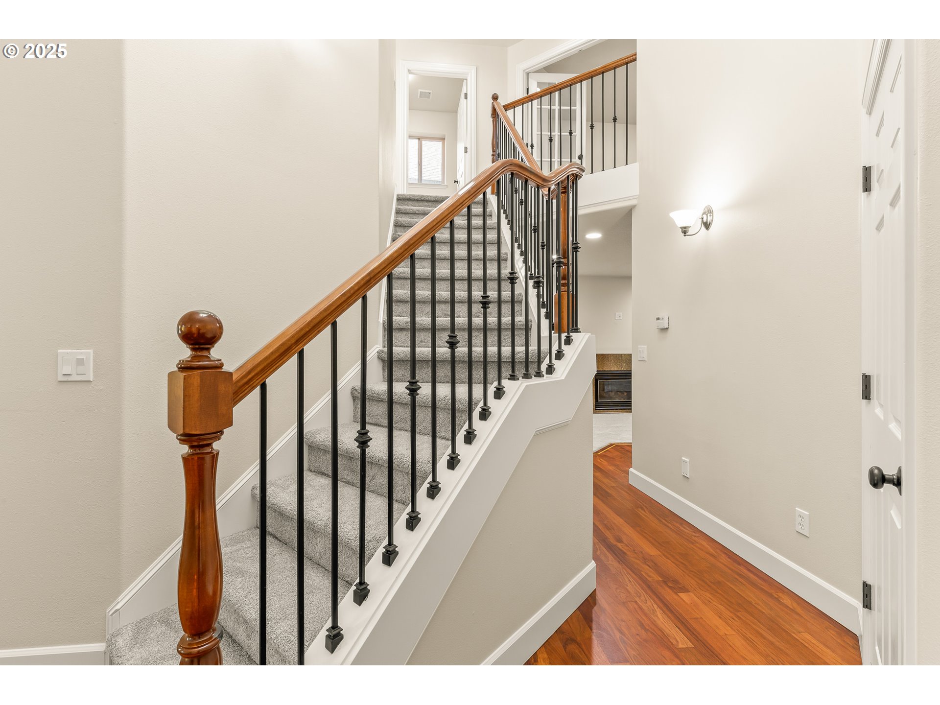 Meticulously maintained custom 4-bed, 3.5-bath home in sought-after Shilo Heights, Camas, WA. Approx. 2,620 sq ft across three levels with a finished daylight basement. Main level features Brazilian cherry hardwoods, high ceilings, and abundant windows overlooking a private greenbelt. Open-concept living with a gas fireplace flows to the dining area and gourmet kitchen with granite countertops and stainless steel appliances.Upstairs, the primary suite offers a spacious bedroom, jetted soaking tub, dual sinks, tile shower, and walk-in closet. Additional bedrooms are generously sized—each with walk-in closets. The lower level includes a versatile rec/media room ideal for a gym, playroom, or home office.Outdoor living includes a deck/balcony with a fenced yard, and direct greenbelt privacy. Notable upgrades: central house vacuum system, forced-air heating, central A/C, fiber-cement siding, composition roof, and an attached 2-car garage with driveway parking. Quiet loop street near parks, trails, and top-rated Camas schools.Move-in ready with quality finishes, modern amenities, and a peaceful setting—prime Camas location.