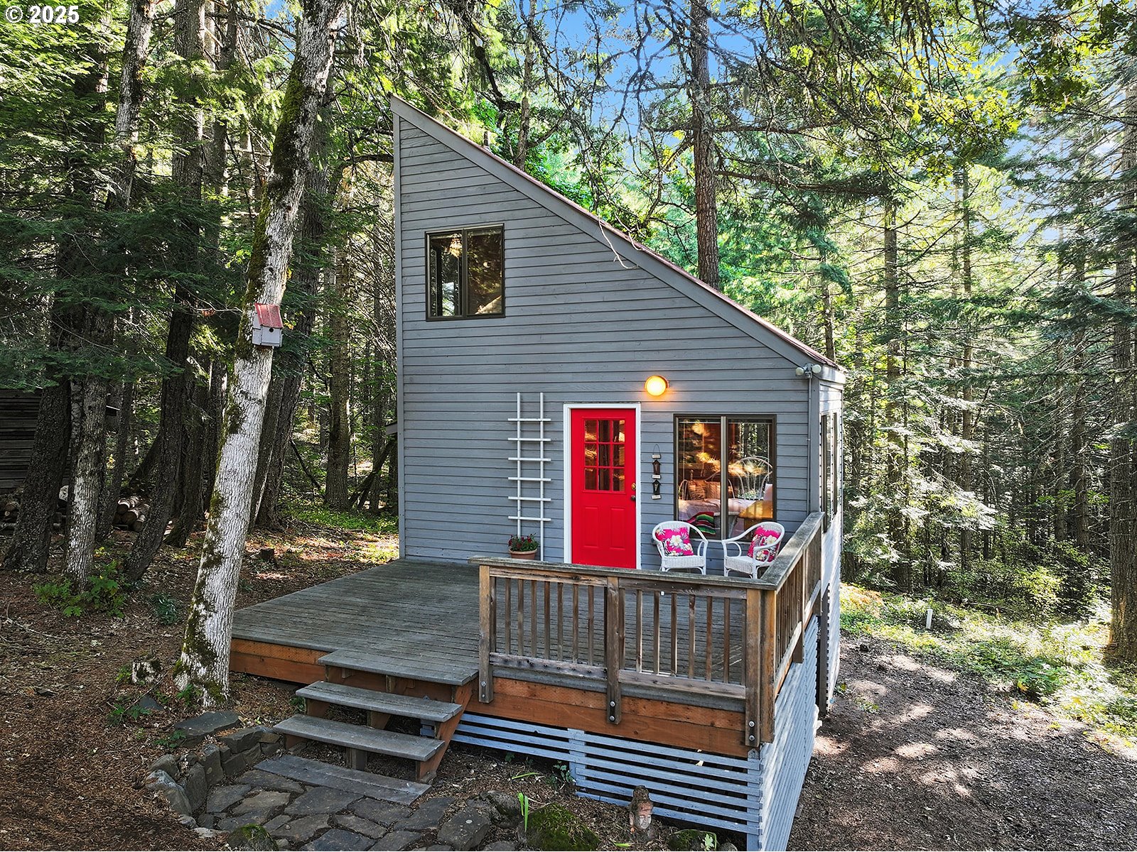 Idyllic location on 5 wooded acres only 2.5 miles from town. Additional, adjacent 6.01 acre lot available at an additional cost would comprise a total of 11.06 acres. With both lots, the total property should be able to qualify for timber classification. Buyer or buyers agent to investigate the benefits, options and requirements of the timber classification program. The property consists of a 2 BR/2 BA home built in 1999 as well as 216sf separate ADU with loft sleeping built in 1978 by a Portland architect. The vacant lot has a 1000 gallon, buried cistern curently not in active use. The lot will not be offered separately until the house has sold and is only available with the house property at present (See aerial in photos). Vacant lot is listed at $275,000. Package pricing is an option. Make an offer. Perfect getaway in the woods 2.5 miles from White Salmon and all the Gorge has to offer.