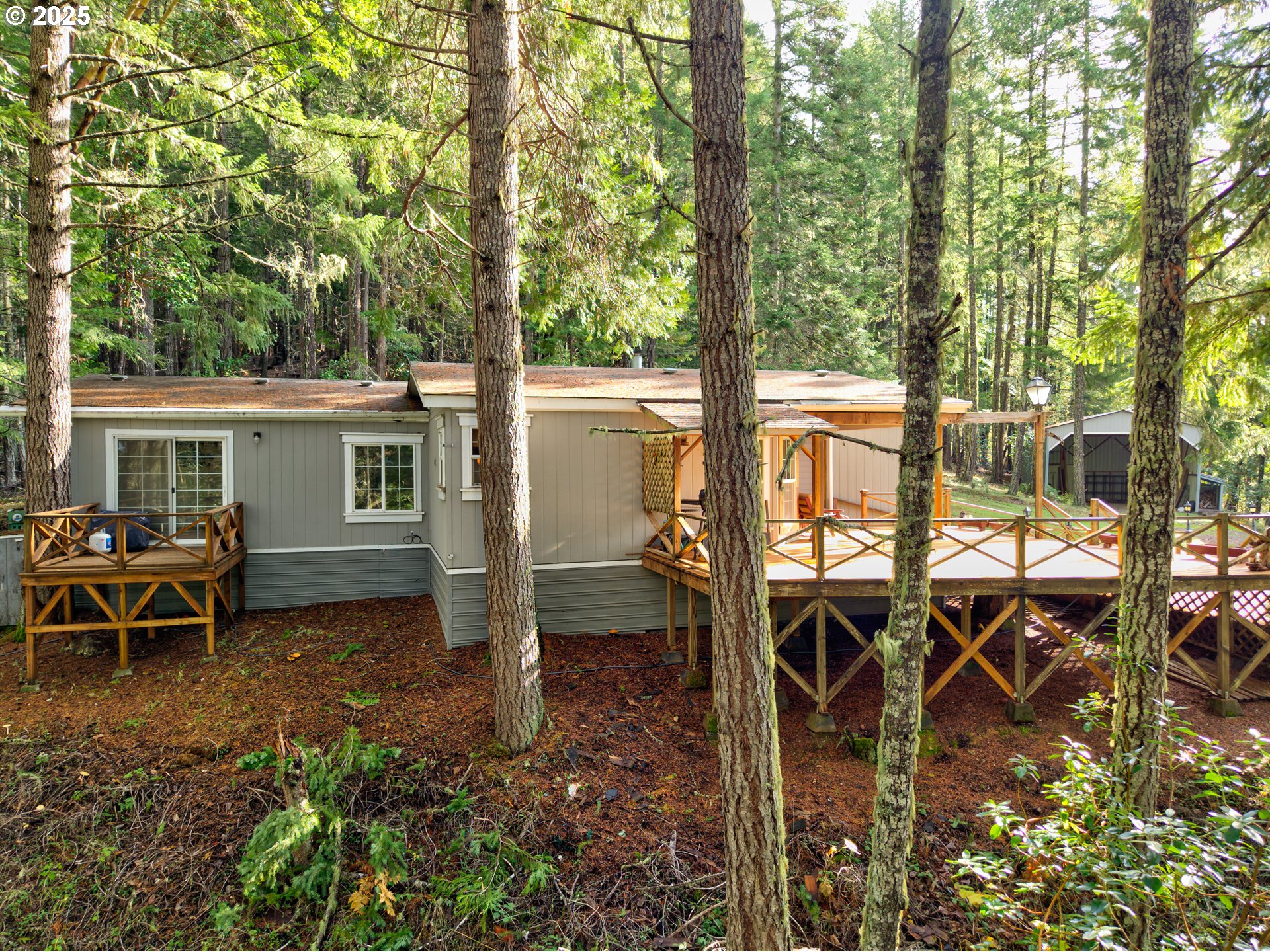 Come home to your own private escape hidden in the trees! Beautiful parklike setting with amazing views and end of the road privacy. Property features include a huge, large covered RV storage, detached guest quarters, a storeroom & workshop. The manufactured home was custom built for the current owners with many custom touches. An expansive deck is perfect for gatherings or taking in the amazing views! Division potential under current zoning. Call today for your private showing!