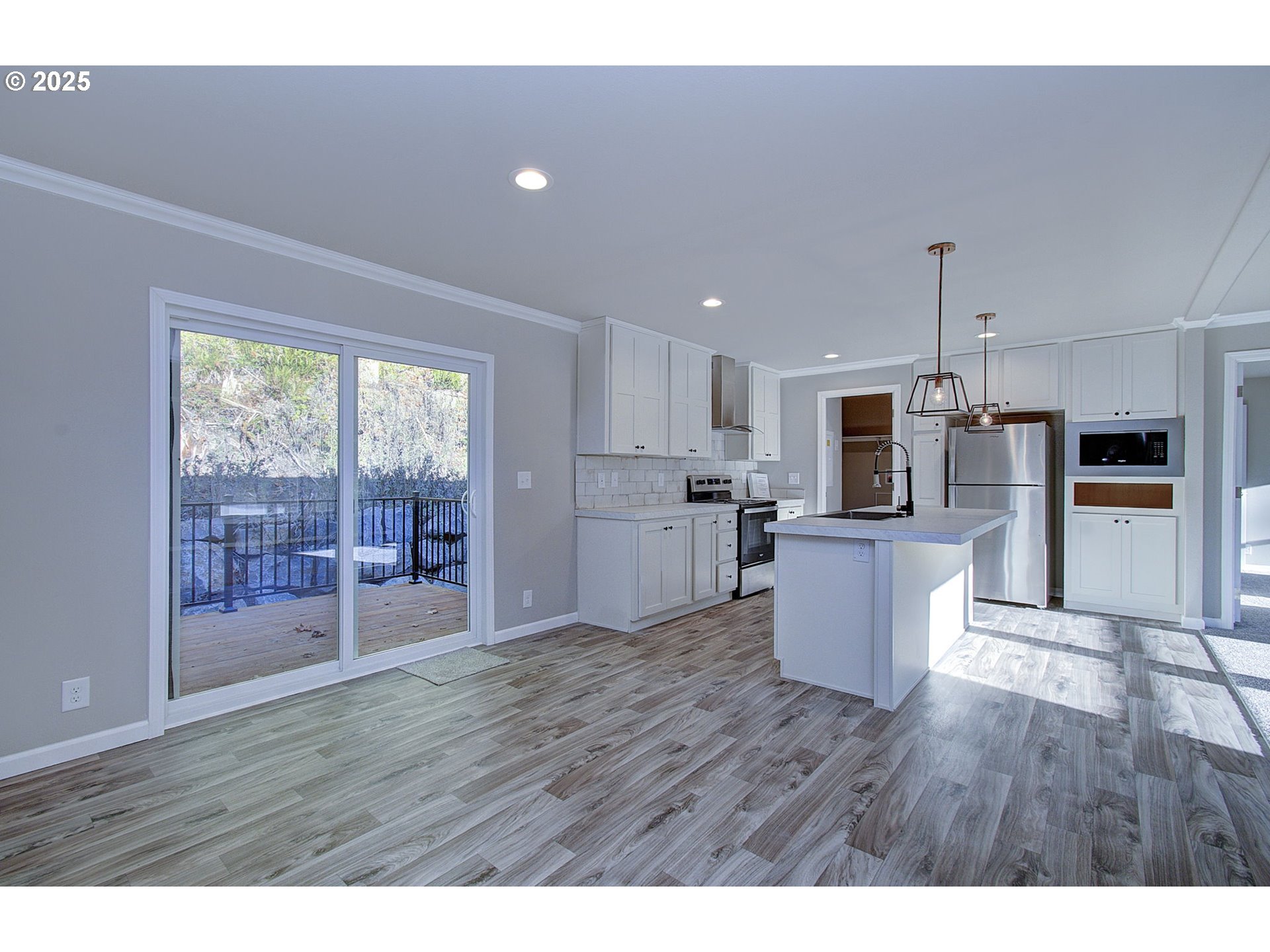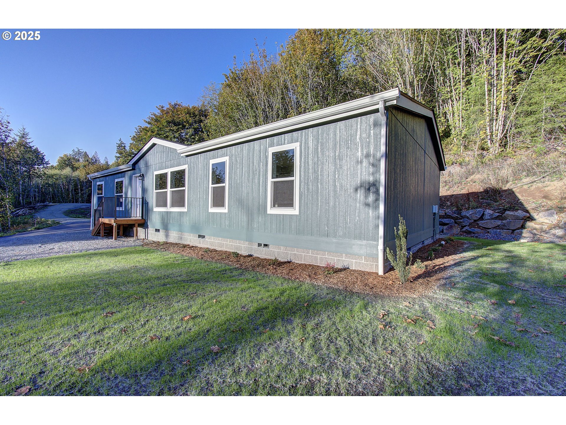 Brand new 3-bedroom, 2-bath manufactured home with an office situated on over 5 acres of peaceful land with decks to enjoy nature, usable land. This move-in-ready home features a spacious open floor plan, a modern kitchen with stainless steel appliances, a large island, and ample cabinet space. The primary suite includes a walk-in closet and a private bath. The property shares a well and a private septic system. NO HOA, no space rent, and you own the land! Enjoy quiet rural living with plenty of space and privacy, while still being within a reasonable distance to town amenities. A great opportunity for affordable homeownership with room to grow. Build your dream shop in the already cleared space behind your new home.