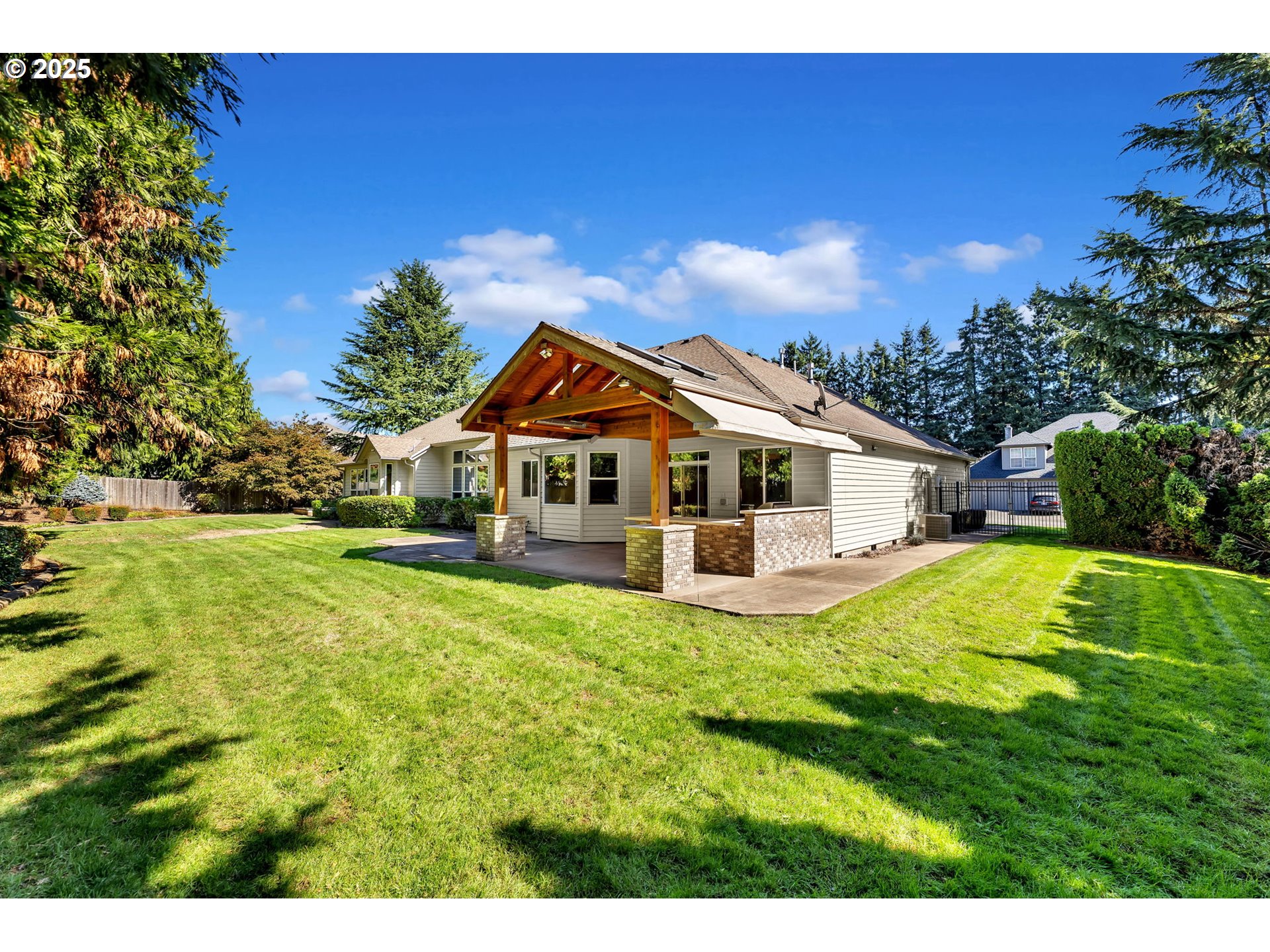 On nearly half an acre in a quiet well-established Vancouver neighborhood, this 2,863 sq ft single level home is built for everyday comfort and easy entertaining. A large kitchen island, abundant storage, and a sunny eating nook flow into the great room, where built-ins frame the gas fireplace. Formal dining and living rooms give you the right spaces for hosting — whether it’s a holiday dinner or a quiet evening with friends. Three bedrooms, two and a half baths, plus a dedicated office with custom built-ins and a window seat, mean everyone has a place of their own — all on one level with high ceilings throughout. Outdoors, you’ll find even more to love. The covered patio is an outdoor kitchen, complete with a built-in grill and plenty of prep space. Raised garden beds wait for your vegetables or flowers, and the fully fenced, gated yard offers rare privacy in town.Practical details make life easier: a large laundry room, central vacuum, and three-car garage. Built in 1996 and carefully maintained, this home feels solid and move-in ready, with good bones and thoughtful design. Here, you don’t have to choose between space and convenience. You’ll have a generous lot and a sense of retreat, with nearby shopping, parks, recreation, and freeways — with Portland Airport just a short drive away. If you’ve been searching for a true single story home with room to spread out, gather, and live well, this home delivers.