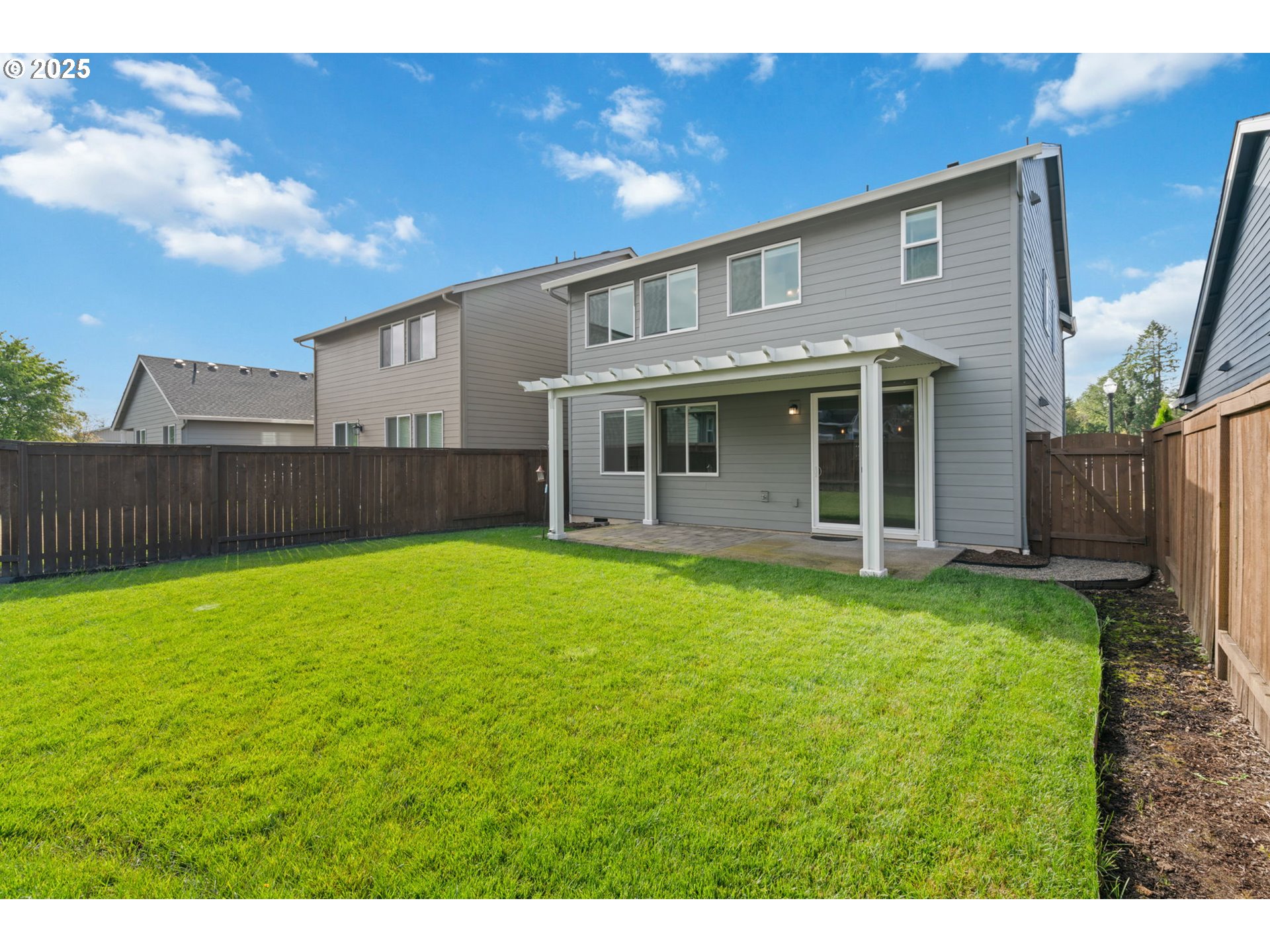 New Price and Seller is offering a rate buy down for Buyer! Great floor plan, open and move in ready. The main floor features a living room with gas fireplace, kitchen has an island with seating, refrigerator, microwave, oven and dishwasher are stainless steel. Beautiful countertops and a large pantry. The dining is off the kitchen and has sliding doors to the covered patio, the perfect place for BBQ's all year long. Nicely landscaped yard, fenced. Upstairs has a large family room area, Primary Suite with a huge walk-in closet, soaking tub, shower, dual sinks. Two additional bedrooms up with the hall bath. Convenient location not far from schools, grocery shopping and a touch of the country feel with surrounding area farms. A place to call home.