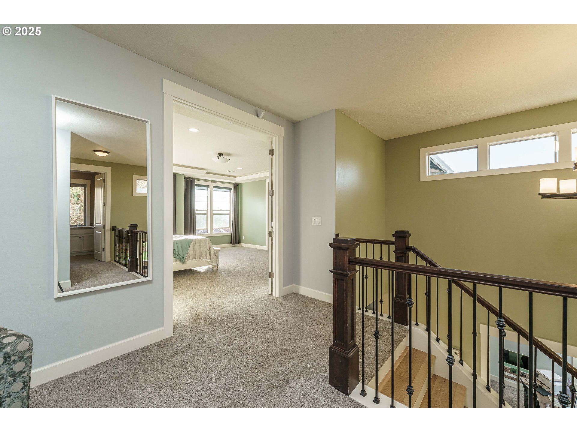 Step inside this impeccable home filled with comfort, style, and incredible natural light—thanks to 47 windows that brighten every corner. A soaring entry and rich, engineered hardwood floors set an impressive tone and are complemented by high ceilings and tall doors throughout both levels. The heart of the home is an immaculate gourmet kitchen featuring lavish cabinetry, slab granite counters, stainless steel appliances, a gas cooktop, pantry, and a generous island with eating bar. The cozy dining area flows seamlessly into a spacious great room with a gas fireplace, making it perfect for both everyday living and entertaining guests. Retreat to the beautiful primary suite, complete with tile counters, soaking tub, walk-in tile shower, dual vanity and large walk-in closet. With 4 bedrooms, 2.5 baths, and a main-floor den, there’s room for everyone. Step outside to an expansive, partially covered deck where you can relax or entertain while taking in territorial views. This home sits on a quiet cul-de-sac in a neighborhood of well-kept, quality-built homes. Additional highlights include: oversized 3-car tandem garage with an EV charging station, central A/C, gas forced-air heat, plumbed for central vac. Built in 2016, this wonderful home is the perfect blend of modern convenience, thoughtful design, and everyday livability—ready to welcome its next owner. Conveniently located close to Hwy 14, restaurants, and just 15 minutes to PDX.