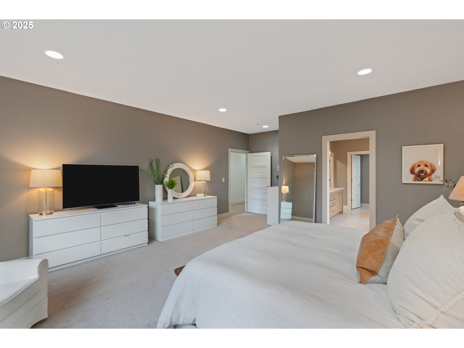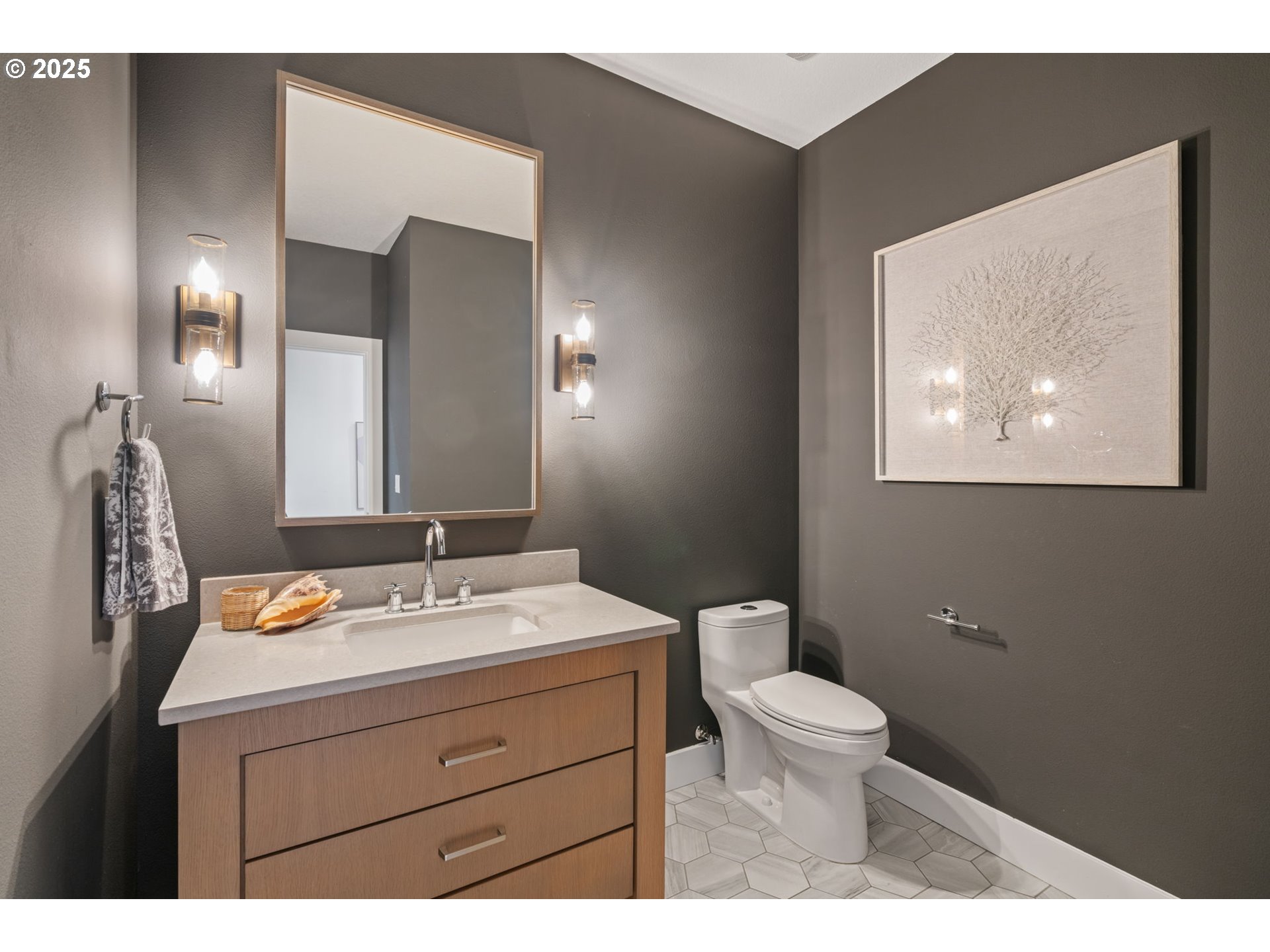 NEW PREMIER LISTING. Blending modern Northwest style with single-level comfort for aging in place, this sophisticated yet welcoming home invites you to relax, entertain, and enjoy life in one of the area’s most sought-after neighborhoods. The heart of this home is the expansive great room, a light-filled space that steals the show. High ceilings, a stunning fireplace, and custom built-ins all working together to create a warm, comfortable backdrop for everyday living. Designed for those who love to cook and connect, the kitchen offers prep space, statement-size island, dual dishwasher, and walk-in pantry - all perfectly integrated with the great room layout. Substantial in size, the primary bedroom suite offers the ideal escape to unwind and relax. Bedrooms are thoughtfully detailed, from shiplap to board-and-batten accented walls. Premium materials and craftsmanship, high-end fixtures, generous storage, central vac system (newer motor), low profile lighting for drama and visual interest, a highly functional laundry room and a finished 3 car garage with storage features. Outside, the sellers have created an exceptional space on this oversized lot. Enhanced with an eye-catching water feature, 7-zone irrigation system and customizable drip system, beautifully built raised garden boxes, mature shrubs for privacy and plantings of jasmine, an espaliered apple tree, and seasonal fruits (tomatoes, raspberries, strawberries). A covered patio with wood-slat ceiling extends the living space outdoors - perfect for year-round Northwest enjoyment. Appliances and 1-year home warranty included. First Place neighborhood offers a 3.5 acre park featuring paved paths, gazebo, benches, garden and playground, along with numerous resident-focused activities. Conveniently located near groceries, restaurants, medical facilities, vet and easy access to I-205. Ask for Feature Sheet and don’t miss the cinematic video. An outstanding home.