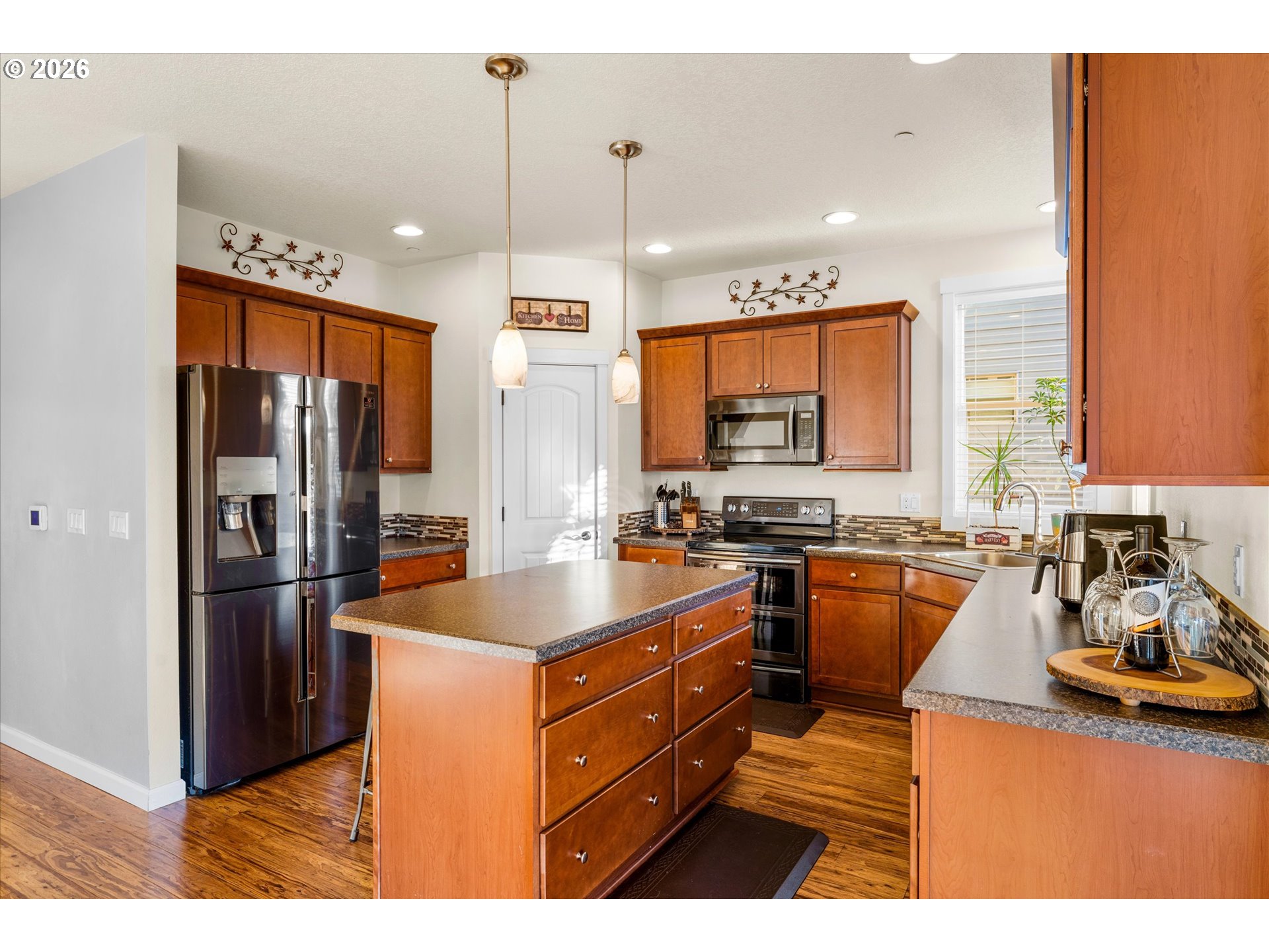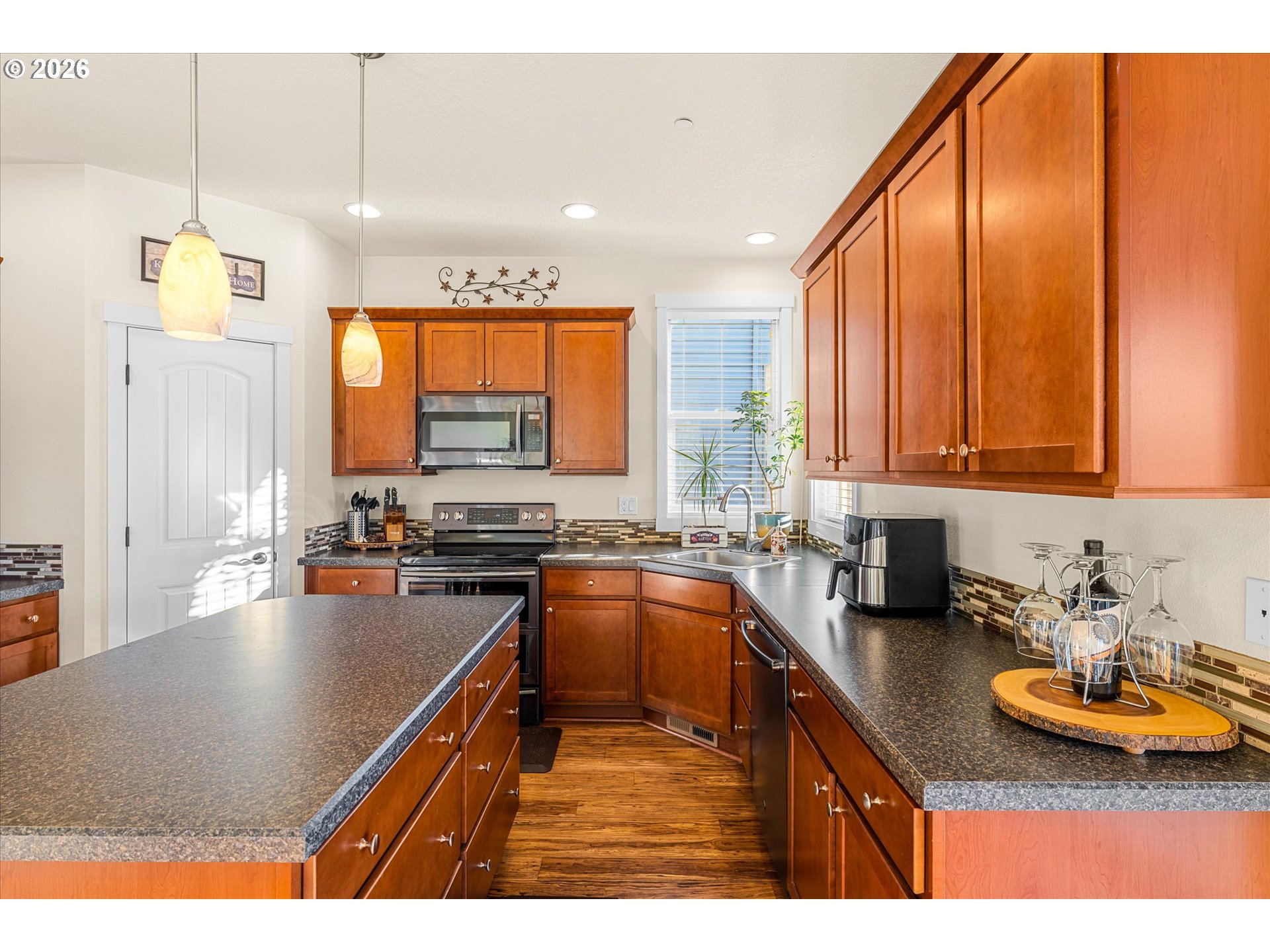 Beautifully kept home in a great, low traffic, Gladstone neighborhood close to everything! Located on a private flag lot this custom, Colton Homes residence has so much to offer both inside and out! Inside the home has enough room for the whole family with 4 bedrooms and 2 and a half bathrooms and 2,300 SF with multiple living spaces and oversized bedrooms. You will love the high ceilings throughout, ceiling fans in every room, fully air conditioned, built in features, pantry in the kitchen, loads of closet space, and valley views! Outside includes beautiful hardscaped backyard with both turf and grass areas with automatic sprinklers, raised beds for gardening, followed by a built in pool surrounded by concrete with a water slide! You will love the outdoor fire pit and covered storage area. Open the exterior door to the unfinished basement you will find ample dry storage with a large built in 7'x9' walk-in cooler along with a work shop. Home features a finished garage with a work space and cabinets throughout The privacy of the flag lot also allows for plenty of parking for all of your toys and RVs with a huge graveled 2,800 SF area out front. This home truly has it all and ready for a new owner!