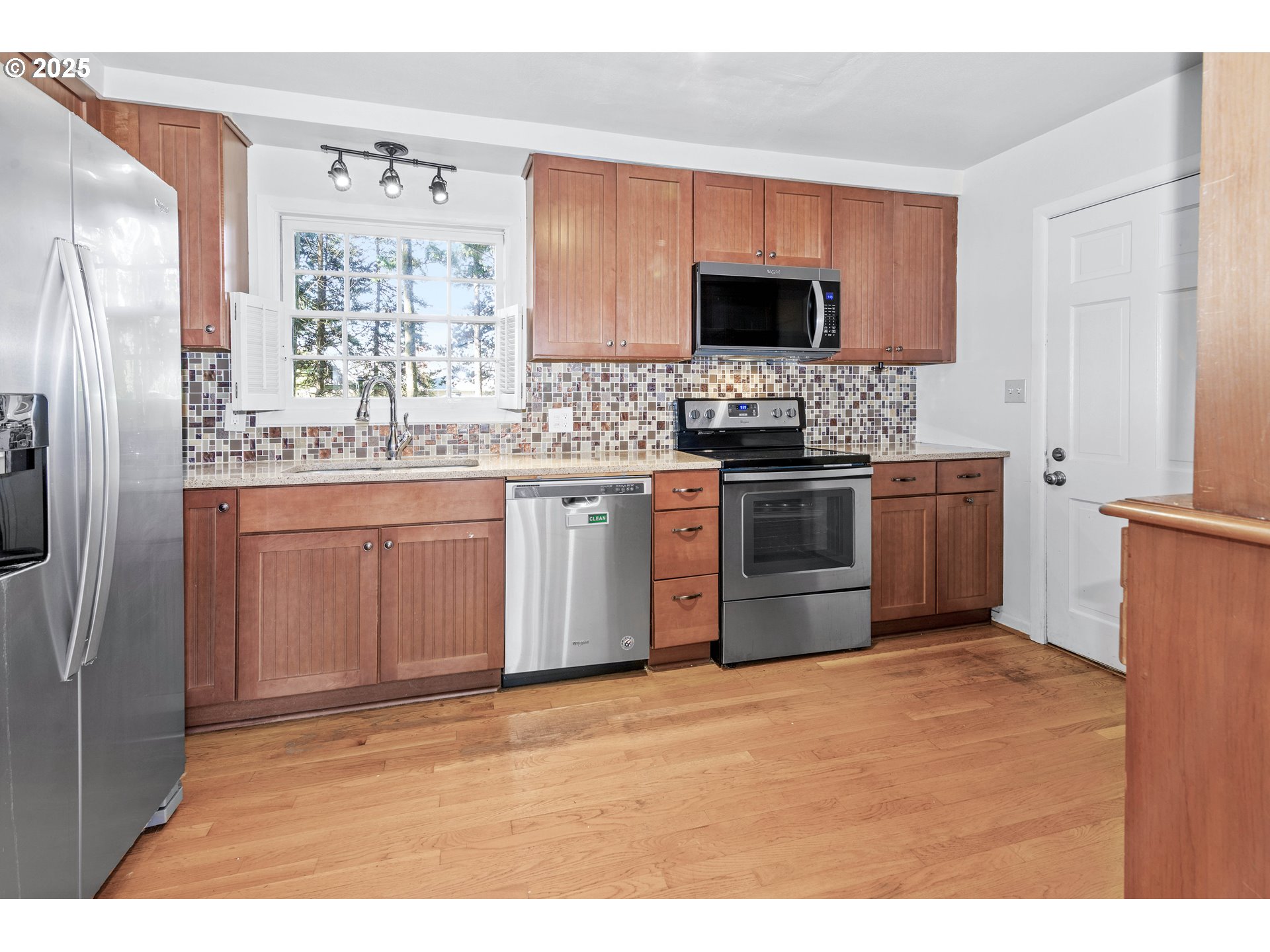 Gorgeous classic Colonial in an unbeatable location—just minutes from major freeways and only 10 minutes to PDX. Warm hardwood floors flow across the main and upper levels, leading to a beautifully updated kitchen with stainless steel appliances, slab-granite counters, and a crisp tile backsplash. Thoughtful built-ins enrich the main-level living and dining rooms, while wood-burning fireplaces on both the main floor and the spacious lower-level basement add comfort and charm. A brand-new HVAC system provides year-round efficiency and peace of mind. Out back, the fenced yard feels like a private retreat with natural wooded landscaping and a firepit for all-season gatherings. A large RV parking area with its own dedicated entrance adds rare flexibility. A timeless home with exceptional livability and outstanding potential.