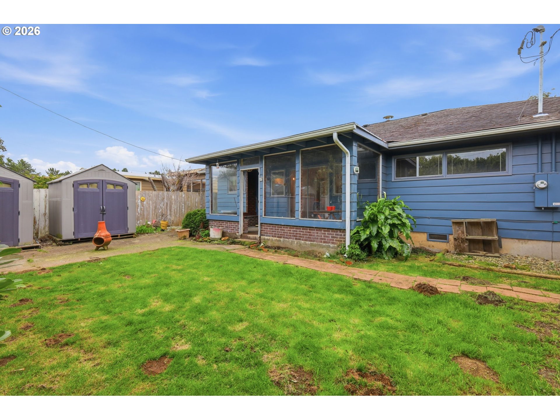 You will not want to miss this mid century charmer offering timeless character and thoughtful updates throughout. Tucked away on a quiet dead-end street yet ideally located in Coos Bay with a short drive to the beach, boating, and fishing as well as shopping and SWOCC. Easy commute to Bay Area Hospital as well as numerous other medical facilities. The spacous and beautifully remodeled kitchen is the true centerpiece of the home, featuring custom cabinetry, abundant workspace, and a spacious layout that opens seamlessly to the large dining area. Hardwood floors run throughout the main living areas and extend beneath the bedroom carpet, adding warmth and classic appeal. The generous laundry room provides excellent functionality with a utility sink and ample storage, making daily tasks simple and organized. Comfort is enhanced by a furnace paired with a heat pump system that provides both heating and air conditioning. Conveniently located near shopping and Southwestern Oregon Community College, making everyday errands and activities easily accessible. The open living areas, beautiful kitchen remodel, and location make this a wonderful opportunity to enjoy coastal living