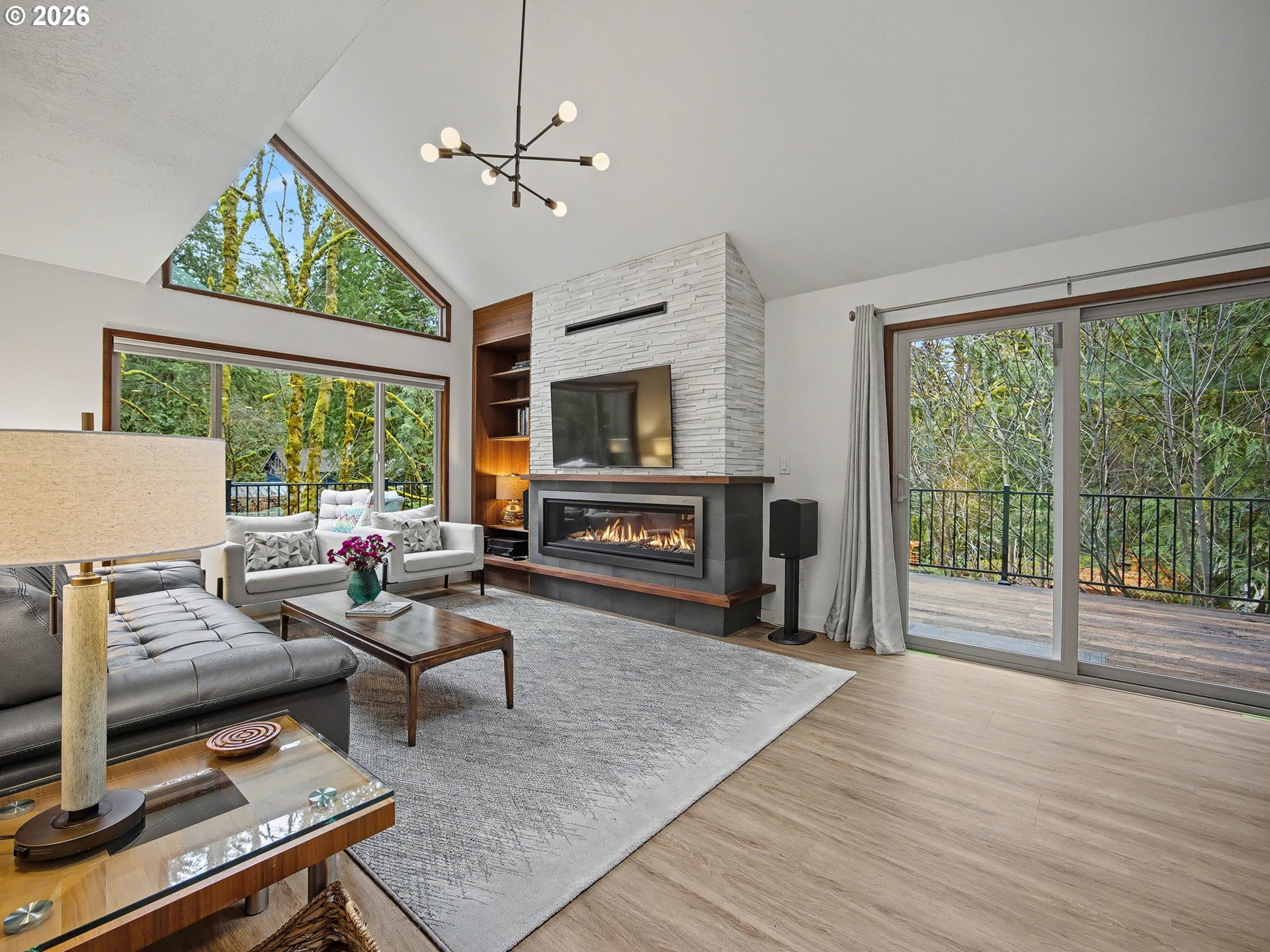 Fully Remodeled Creekfront Cabin – Modern Rustic Luxury Meets Tranquil Waters. Discover the perfect blend of timeless charm and contemporary comfort in this completely remodeled and updated creekfront cabin, where a pristine, gently flowing creek runs right along the property line, delivering endless soothing sounds and stunning natural beauty. This turn-key gem has been thoughtfully transformed from top to bottom with high-end finishes and modern conveniences, while preserving its authentic custom character. Step inside to an inviting open-concept living space featuring soaring ceilings, abundant natural light from oversized windows, and breathtaking creek views that feel like they're part of the room. The gourmet kitchen boasts sleek stainless-steel appliances, quartz countertops, custom cabinetry, and a large peninsula for casual meals or entertaining guests. Hot water replaced in 2025, high end Mitsubishi Furnace installed 2019, All windows replaced in 2019 with Vinyl. Cozy up by the updated stone 60" linear propane fireplace or retreat to the spacious primary suite, on the main level.
