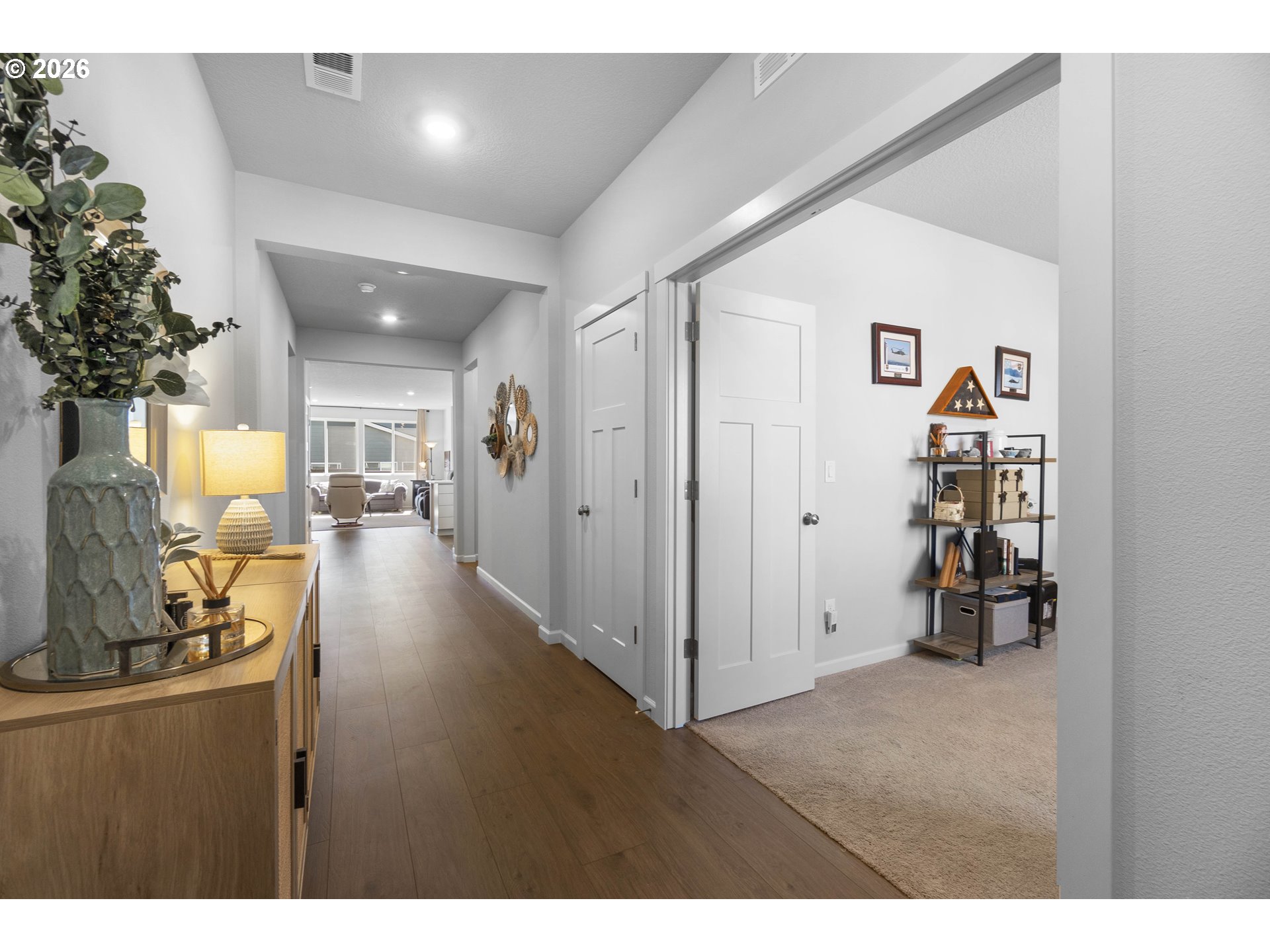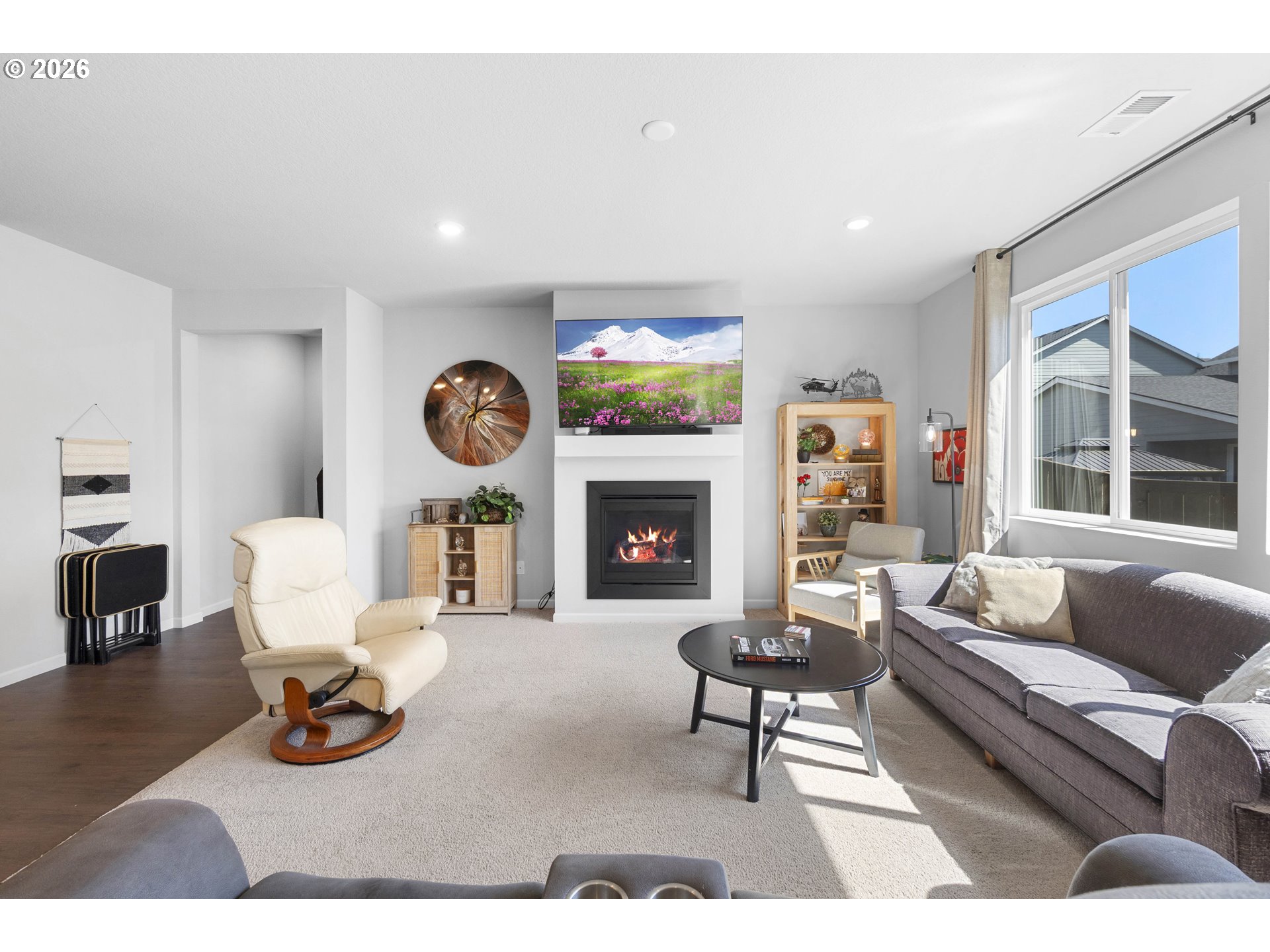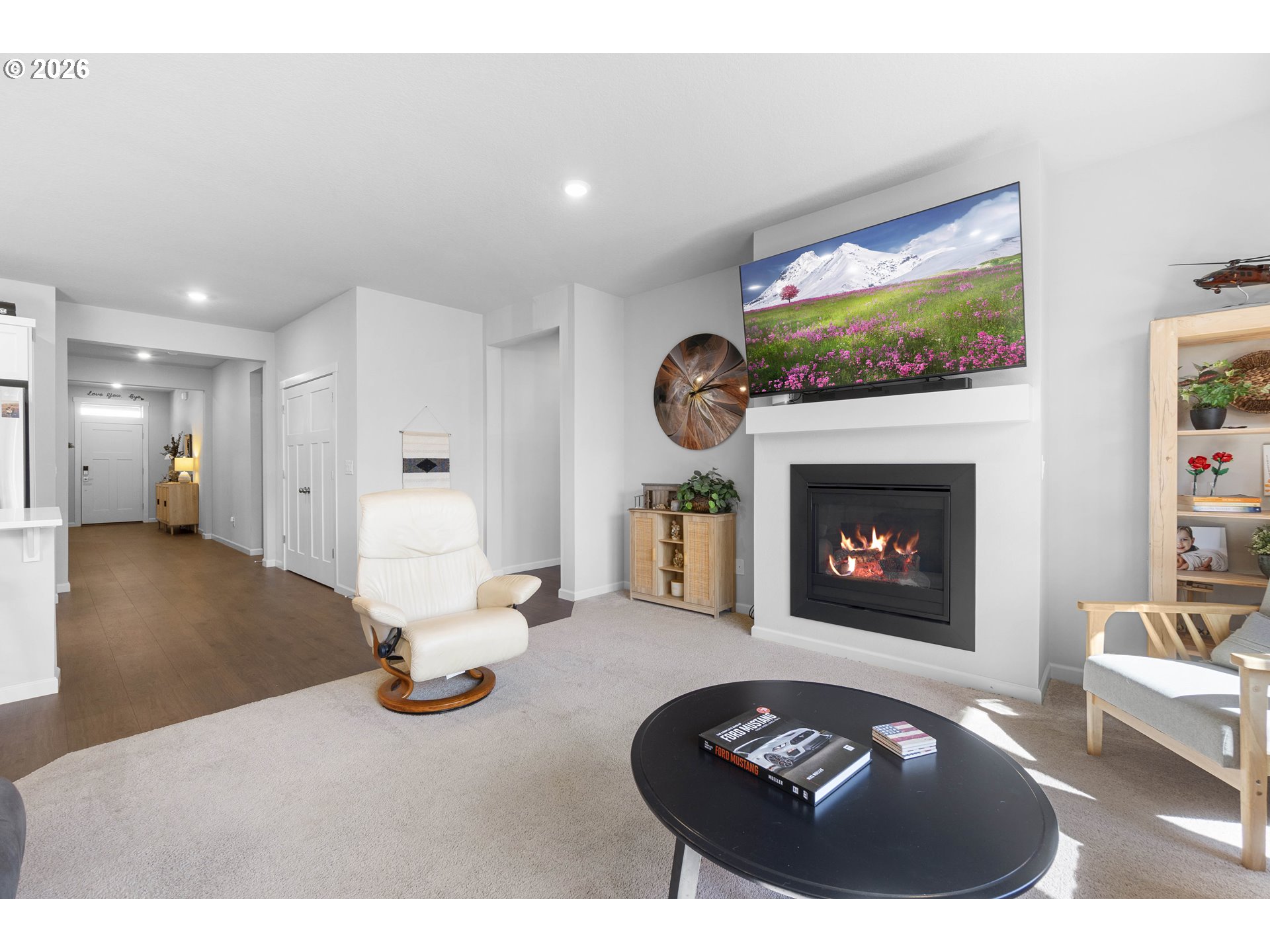 OPEN Sat 4/4 1-3pm. Hard to find Single-Level home with an open-concept layout and 4 spacious bedrooms. Located in Skyliner Crossing, this 2-year-old home offers solid wood cabinetry, slab quartz countertops, and stainless steel appliances. Fully landscaped front and back yards include sprinklers and fencing. Interior features LVP flooring in the entry, living, and dining areas, quartz bathroom countertops, and a gas fireplace with a floating mantel. Two-car garage is pre-wired for an electric vehicle. Tankless water heater.