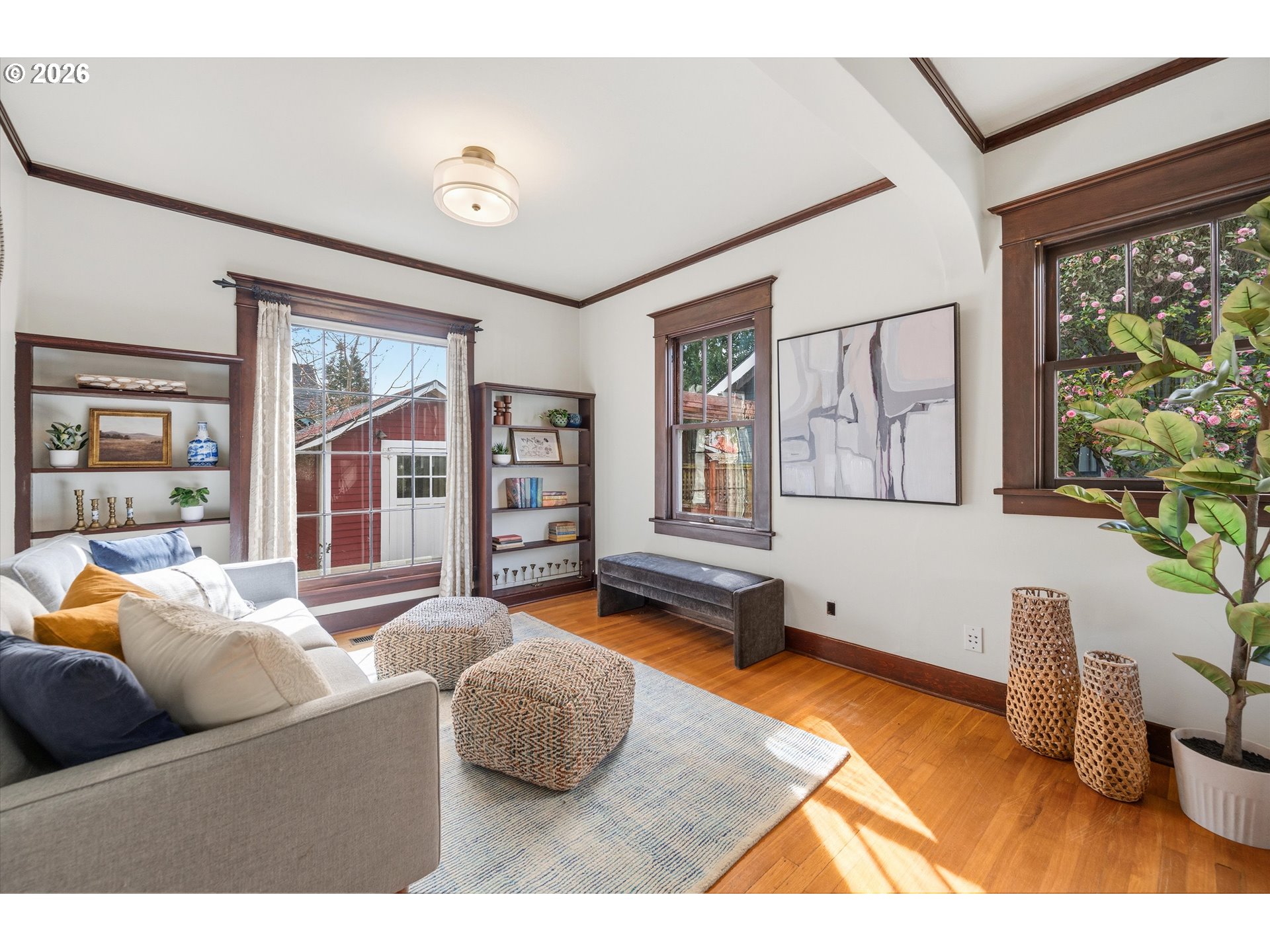 Welcome to this classic Craftsman in the heart of the coveted Beaumont neighborhood — where timeless character meets modern comfort on a street that truly feels like community.The main floor showcases the home's original soul: hardwood floors, stunning original woodwork, plate rails, and a built-in buffet with leaded glass windows. A grand living room flows into a formal dining room and a sunny family room, all flooded with natural light — including a spectacular leaded window overlooking the landscaped backyard. Step outside to a fully fenced yard with mature plantings, trex deck for quiet evenings and charming cobblestone-lined garden beds. The sunny East facing kitchen features new stainless steel appliances, a gas range with a professional hood vent & solid surface counters. A convenient powder room rounds out the main level. Upstairs, three generously sized bedrooms and a fantastic sunroom await, along with a fully renovated bathroom that strikes the perfect balance between old and new — a walk-in rainfall shower, with bench and frameless French doors paired with a generous console sink and classic subway tile. Original fir floors carry the home's warm character throughout the upper level. The fully finished basement expands your living space dramatically, with a family room, media room, dedicated office, full bath/laundry/storage room — room for everything and everyone. And then there's the grand front porch — the perfect perch to sip your morning coffee and soak in the warmth of one of NE Portland's most welcoming neighborhoods, steps from Beaumont Village's shops, cafés, and restaurants. This one checks every box. Come see it before someone else does. [Home Energy Score = 2. HES Report at https://rpt.greenbuildingregistry.com/hes/OR10246144]