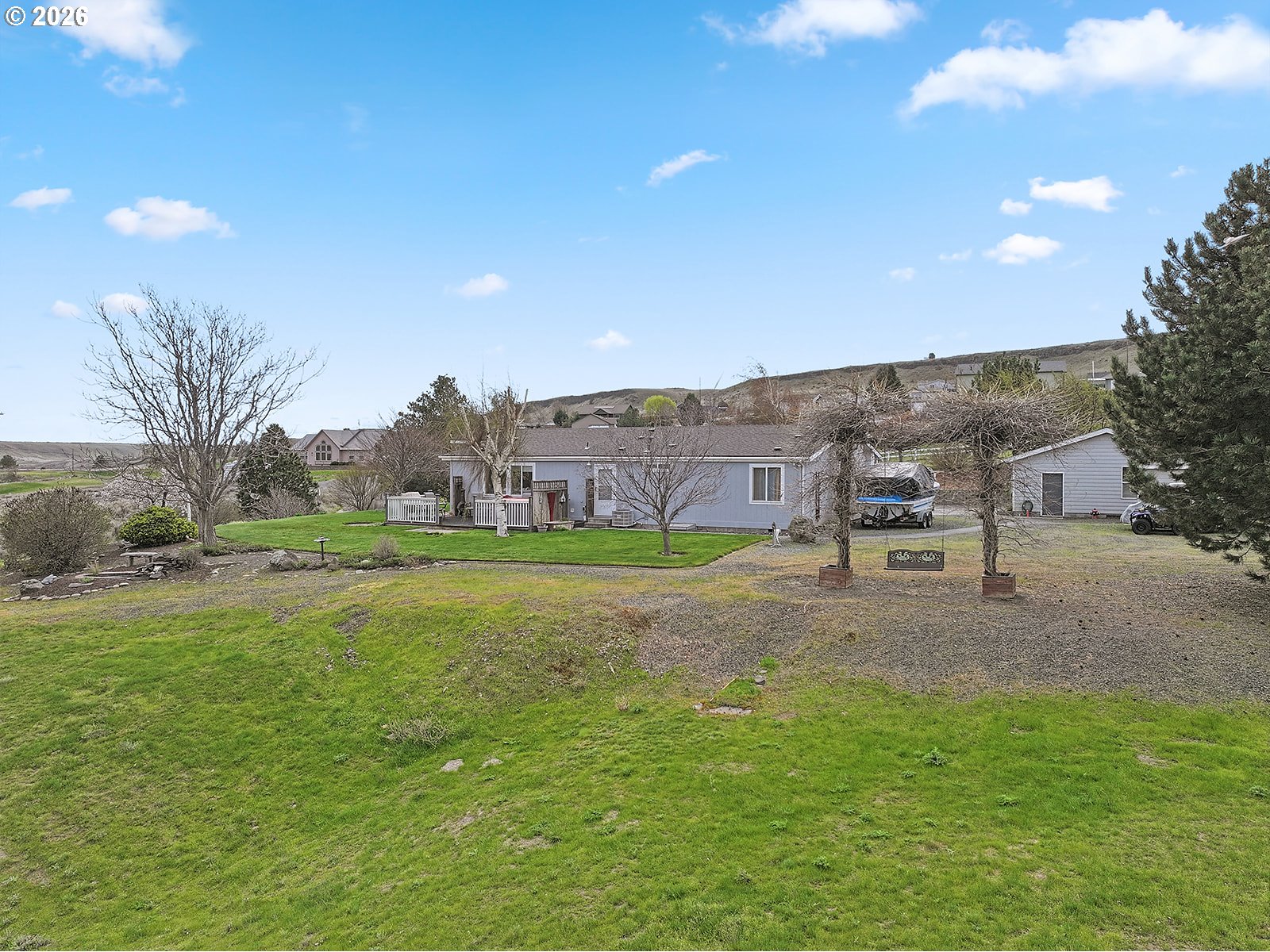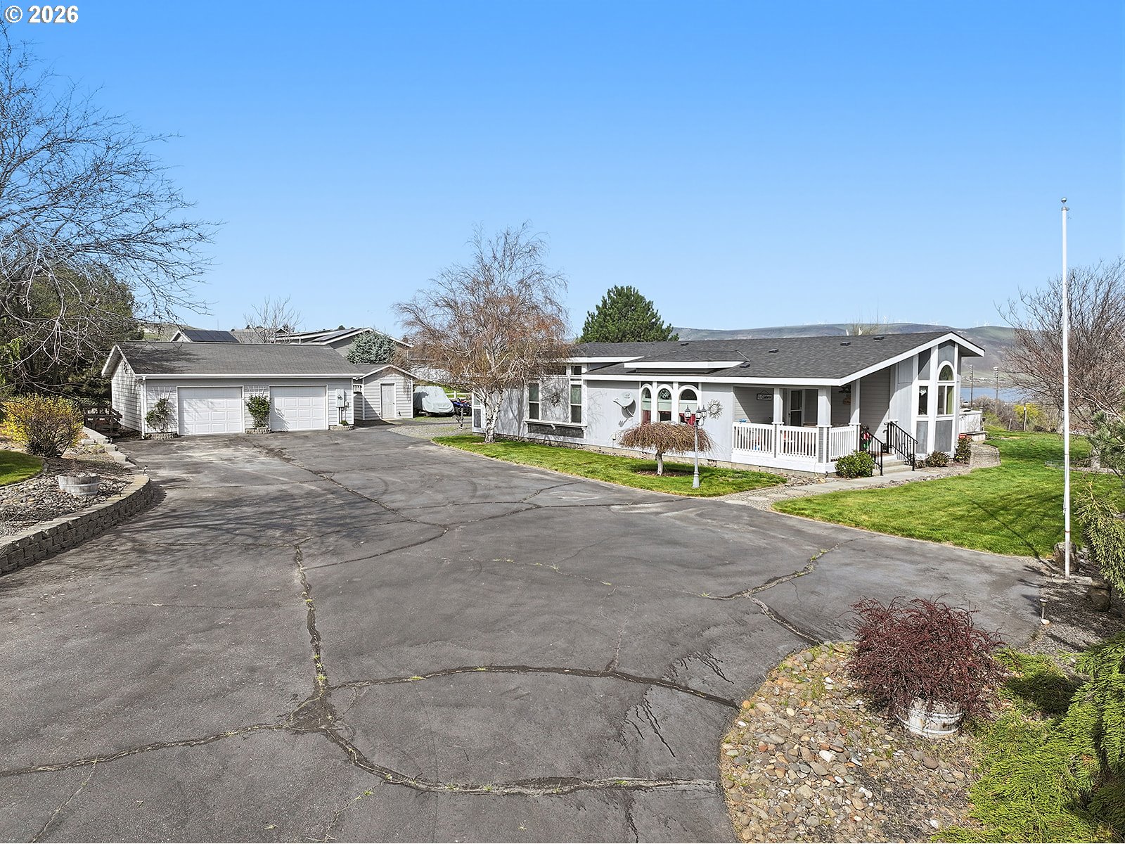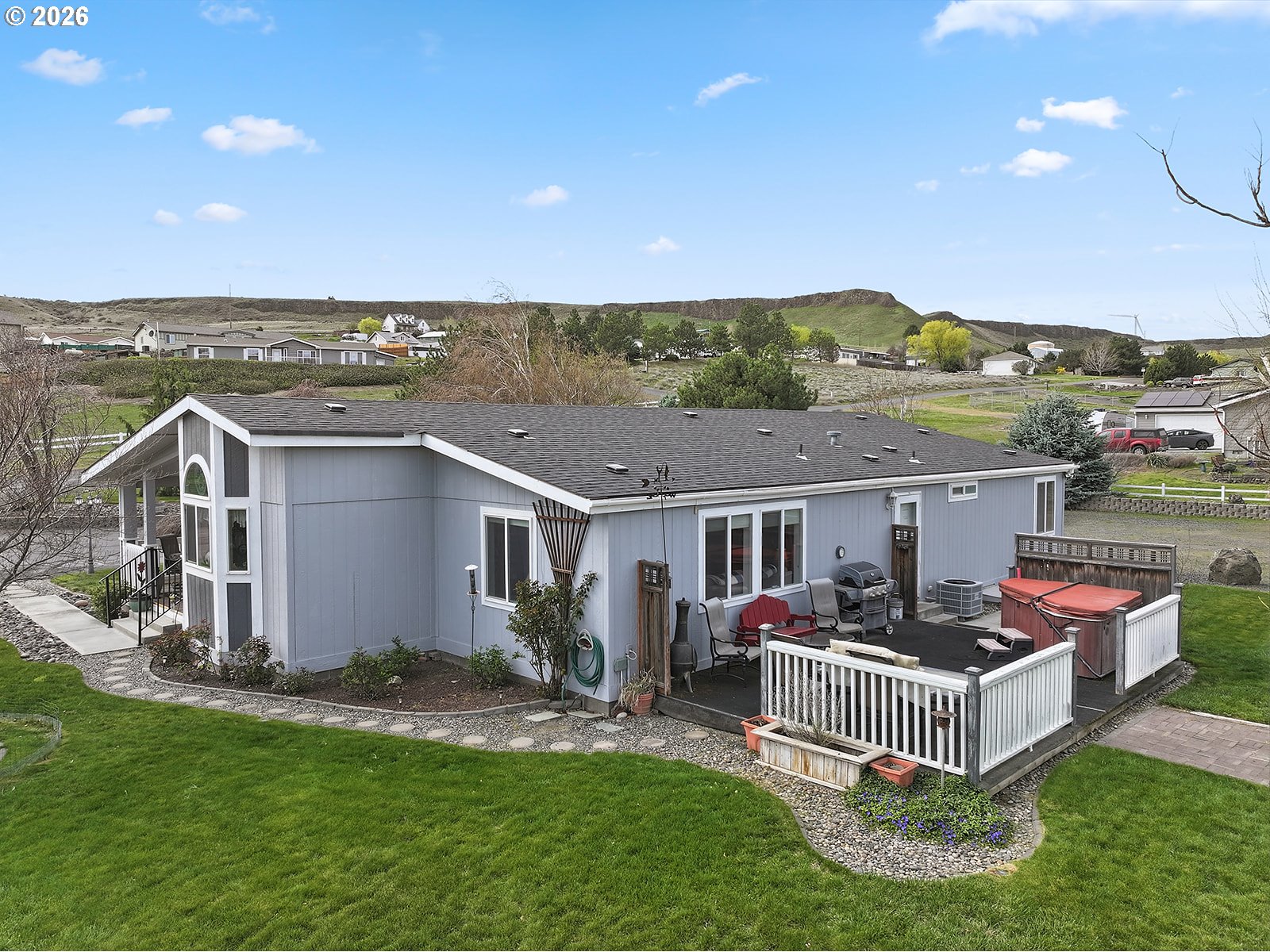 Immaculate Triple-Wide Home with Breathtaking Views and Tranquility!Experience country living at its finest in this immaculate triple-wide manufactured home featuring 3 bedrooms and 2 bathrooms on two lots totaling 1.74 acres. Enjoy panoramic views of Arlington, the Columbia River, the golf course, and the surrounding countryside, a truly serene setting that captures the essence of peaceful living.Step inside to discover gorgeous bamboo flooring, granite countertops, and stainless-steel appliances. The open-concept layout is filled with natural light and showcases breathtaking views from every room, creating a seamless connection between indoor comfort and the natural beauty outside.Recent updates include a new roof and heat pump (2024), offering both comfort and confidence for years to come. The beautifully landscaped yard features a sprinkler system, mature fruit trees, and drip irrigation throughout, providing a lush and tranquil outdoor retreat.The two-car garage is equipped with a built-in air compressor and workbench area, perfect for projects and extra storage. This home has ample parking for RVs and recreational vehicles, it combines functionality, charm, and serenity.Don’t miss out on this exceptional opportunity, schedule your showing today to experience all this home has to offer!It pays to own a home in Gilliam County--Ask your Agent about the Homestead Rebate Program.