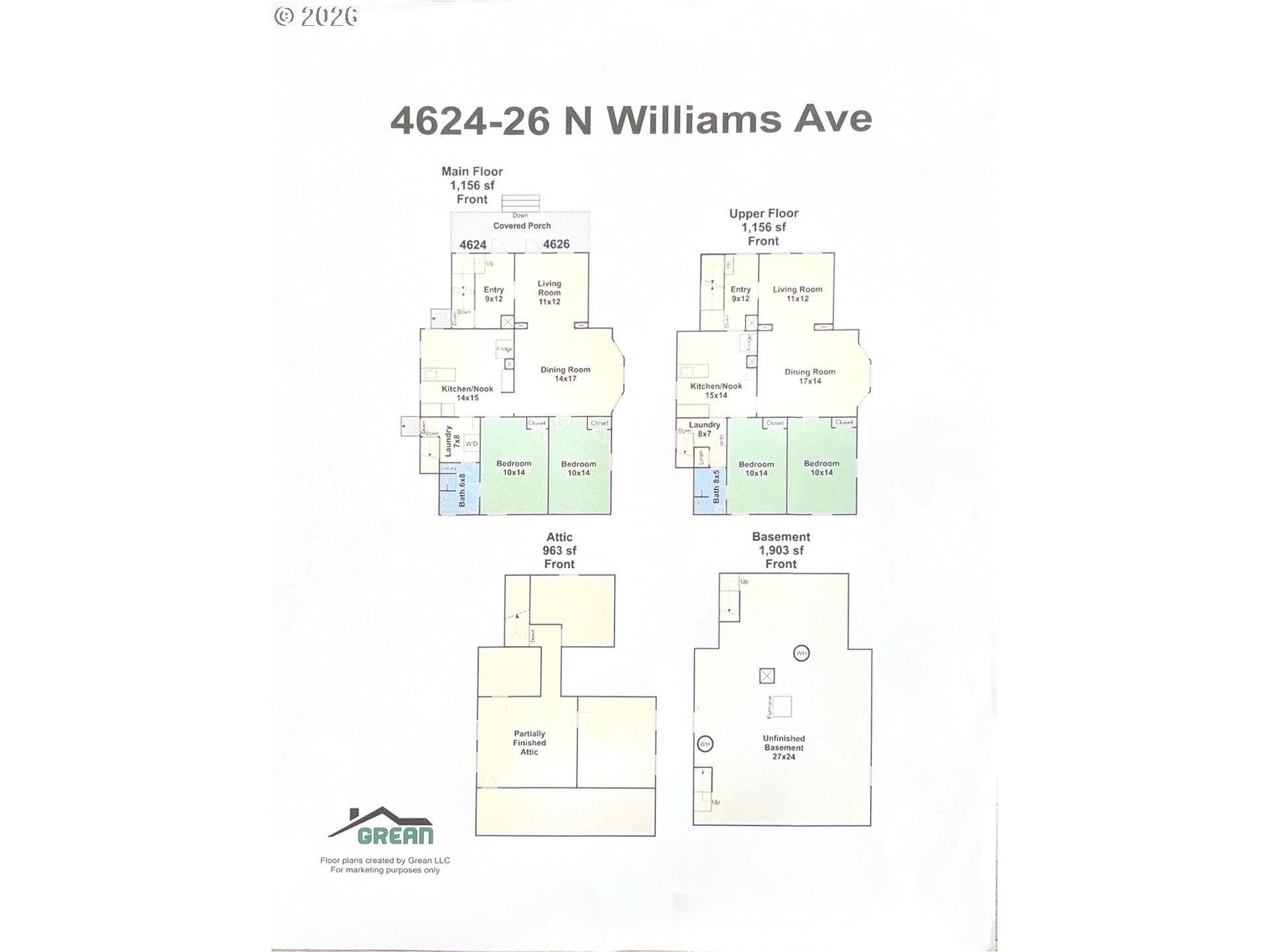 Figured as a duplex with two official addresses 4624 & 4626 N Williams Ave, this property is classified by the City of Portland as a single-dwelling residence, yet its long-standing duplex configuration offers exceptional versatility for today's lifestyle needs. With flexible living and rental options.Updated electrical system. Each level includes 2 Bedrooms, 1 Bath, living and dining room, a kitchen with a small eat area with New Stainless-steel appliances. A newer roof, laminated floors throughout. Off-street parking, unfinished basement add everyday convenience and future potential, with flexible living and rental options. It's a valuable opportunity for investors, multi-generational living or an owner-occupant seeking additional income. Easy to show!