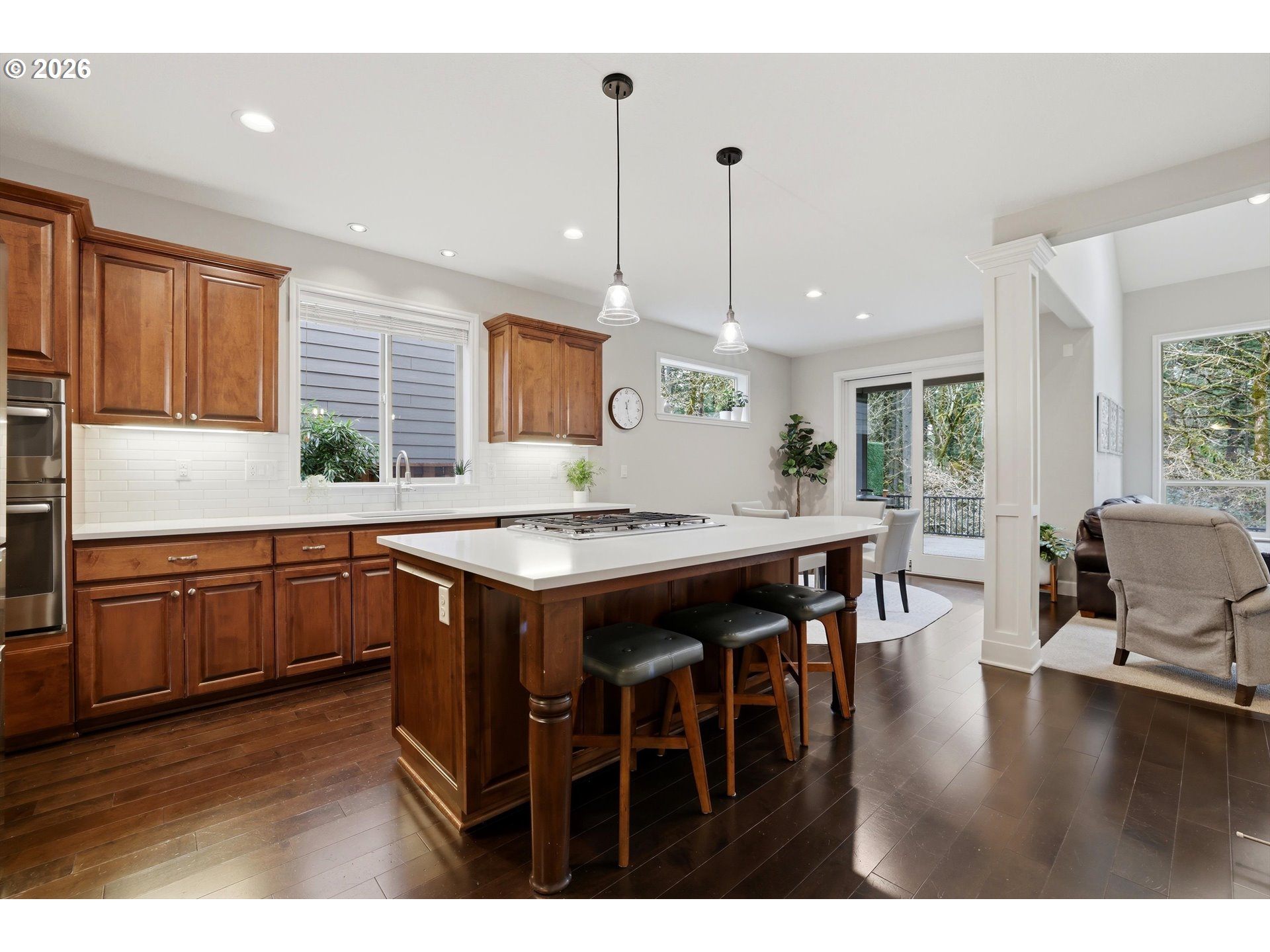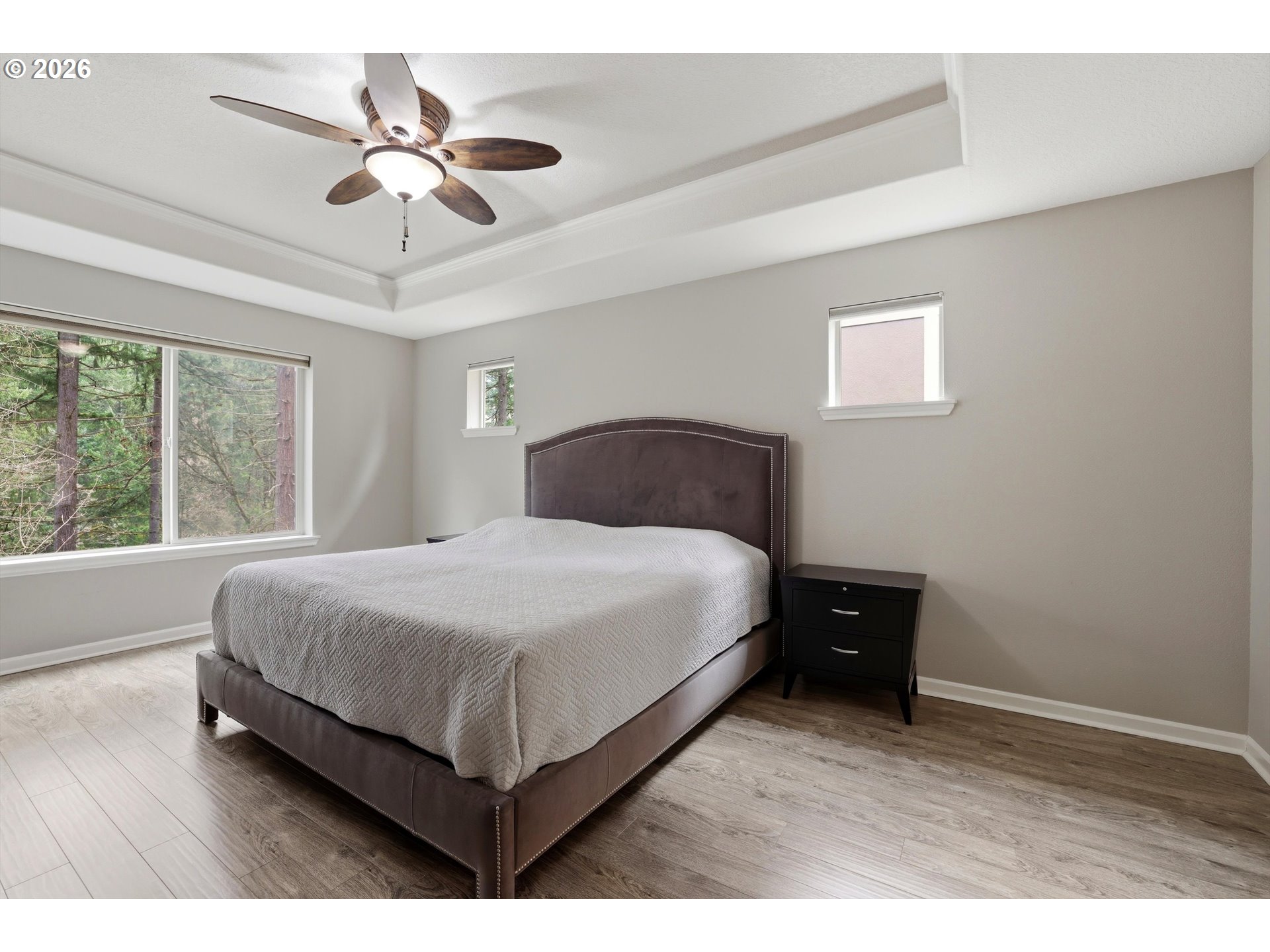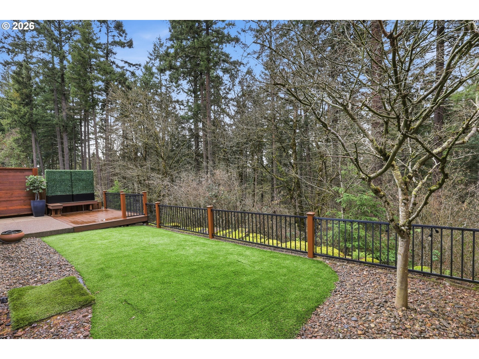 Beautiful Tualatin home backing directly to Victoria Woods Nature Park, offering serene wooded views and a private, low maintenance yard designed for easy living. Large windows throughout the home frame peaceful views of the trees, creating a bright and inviting atmosphere. Both the family room and backyard overlook the woods, giving this home a unique sense of privacy and connection to nature. The main level features a spacious open layout ideal for entertaining. The kitchen includes a large island, walk through pantry, and excellent storage, with a convenient pass through to the dining room. The vaulted family room with skylight and fireplace fills the space with natural light and warmth. A main level office with closet offers flexibility as a potential 4th bedroom, and a full bathroom on the main floor provides added convenience. Upstairs you’ll find three bedrooms, a large bonus room with coffered ceiling and built in California Closet storage, and convenient upstairs laundry with utility sink. The primary suite features a ceiling fan, double vanity, soaking tub, walk-in shower, and spacious closet. Step outside to enjoy the exceptionally private backyard backing to nature with Trex decking, Trex fencing, turf landscaping, and a storage shed. The front yard. Turf in both the front and back yards provides year round greenery with minimal upkeep. A rare opportunity to enjoy peaceful wooded views, exceptional privacy, and low maintenance living in a beautiful Tualatin setting.