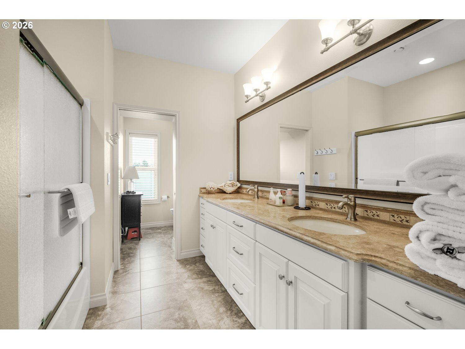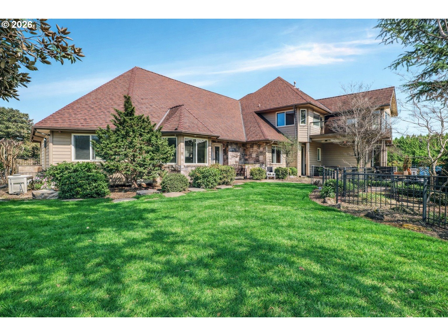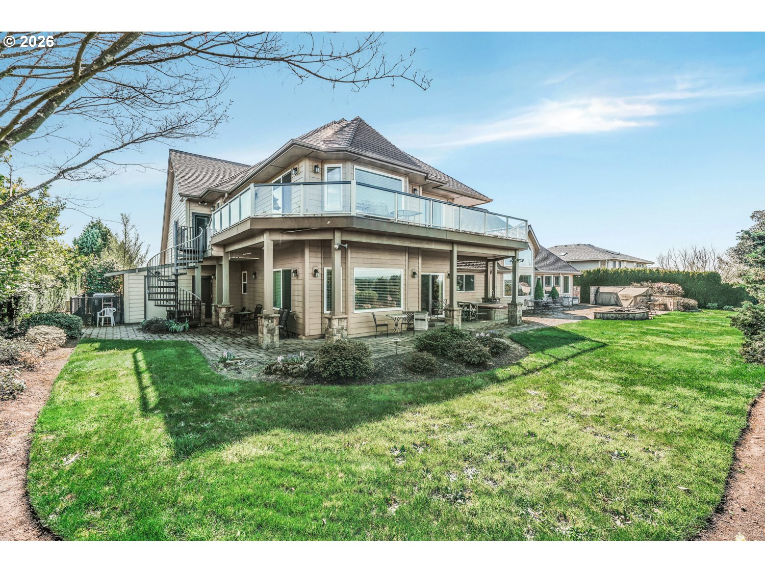 Custom-built luxury estate on .43 acres showcasing breathtaking views of the State Capitol, city lights and surrounding mountains, including Mt. St. Helens and Mt. Hood. This home was completely remodeled in 2011 and is designed with high-end finishes and an open-concept layout ideal for both everyday living and entertaining. The living room has vaulted ceilings, a dramatic floor-to-ceiling wall of windows that frames the stunning views, and a striking granite gas fireplace. Seamlessly flowing into the dining area with French doors leading to the patio, this space offers easy indoor/outdoor living. The gourmet kitchen includes a large island with granite eat bar, premium stainless steel appliances, custom cabinetry, elegant countertops, and a sunny dining nook. The luxurious main-level primary suite has a spacious walk-in closet with custom organizers and a spa-inspired en-suite bath with soaking tub, glass walk-in shower, and dual granite vanities. A dedicated office on the main floor provides ideal work-from-home flexibility. Upstairs, a second primary suite offers elevated comfort with its own fireplace, private balcony access (47x37), walk-in closet, and ensuite bath with dual granite vanities and walk-in shower. A generous family room with kitchenette and balcony access creates the perfect space for entertaining or relaxing. Two additional bedrooms and a full guest bath complete the upper level. Convenience abounds with laundry rooms on both floors, each equipped with utility sinks. The oversized triple garage includes an extra-tall third bay, bathroom, and additional space for RV parking. Outside, the beautifully landscaped and rod iron fenced backyard is an entertainer’s paradise, with a stone patio and built-in BBQ with chef sink, all set against a backdrop of gorgeous views. An Elan-Nice security system adds peace of mind. Minutes from dining, shopping, schools, Creekside Golf Club and local vineyards, this property offers luxury, comfort and lifestyle.