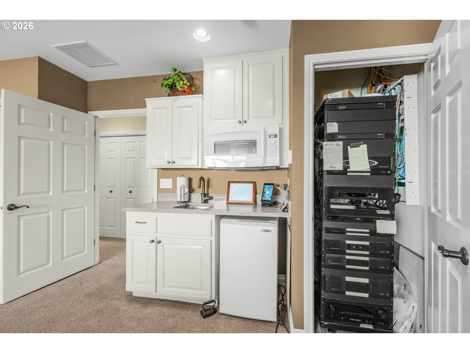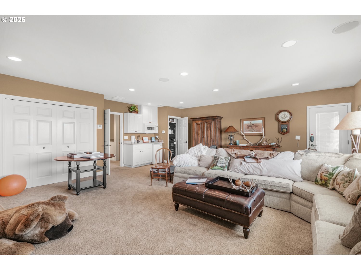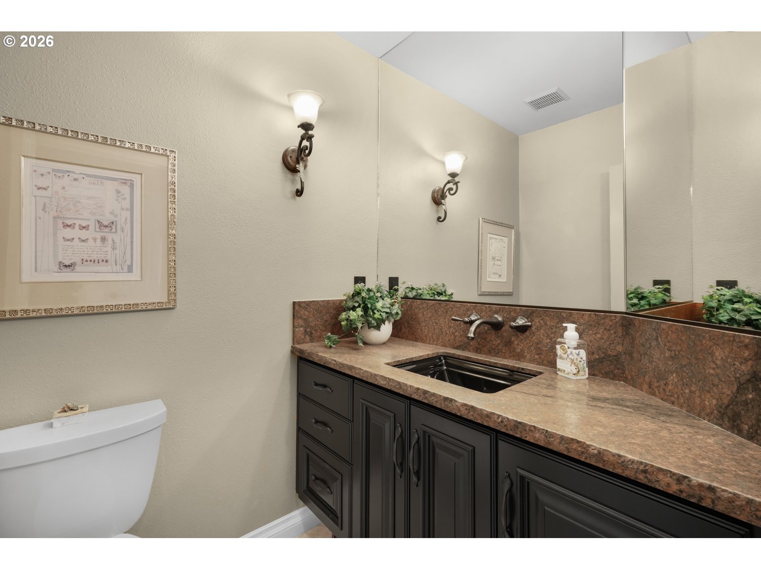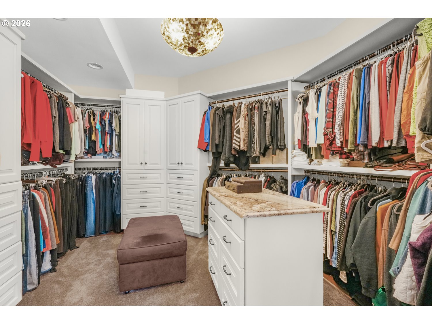 Custom-built luxury estate on .43 acres showcasing breathtaking views of the State Capitol, city lights and surrounding mountains, including Mt. St. Helens and Mt. Hood. This home was completely remodeled in 2011 and is designed with high-end finishes and an open-concept layout ideal for both everyday living and entertaining. The living room has vaulted ceilings, a dramatic floor-to-ceiling wall of windows that frames the stunning views, and a striking granite gas fireplace. Seamlessly flowing into the dining area with French doors leading to the patio, this space offers easy indoor/outdoor living. The gourmet kitchen includes a large island with granite eat bar, premium stainless steel appliances, custom cabinetry, elegant countertops, and a sunny dining nook. The luxurious main-level primary suite has a spacious walk-in closet with custom organizers and a spa-inspired en-suite bath with soaking tub, glass walk-in shower, and dual granite vanities. A dedicated office on the main floor provides ideal work-from-home flexibility. Upstairs, a second primary suite offers elevated comfort with its own fireplace, private balcony access (47x37), walk-in closet, and ensuite bath with dual granite vanities and walk-in shower. A generous family room with kitchenette and balcony access creates the perfect space for entertaining or relaxing. Two additional bedrooms and a full guest bath complete the upper level. Convenience abounds with laundry rooms on both floors, each equipped with utility sinks. The oversized triple garage includes an extra-tall third bay, bathroom, and additional space for RV parking. Outside, the beautifully landscaped and rod iron fenced backyard is an entertainer’s paradise, with a stone patio and built-in BBQ with chef sink, all set against a backdrop of gorgeous views. An Elan-Nice security system adds peace of mind. Minutes from dining, shopping, schools, Creekside Golf Club and local vineyards, this property offers luxury, comfort and lifestyle.