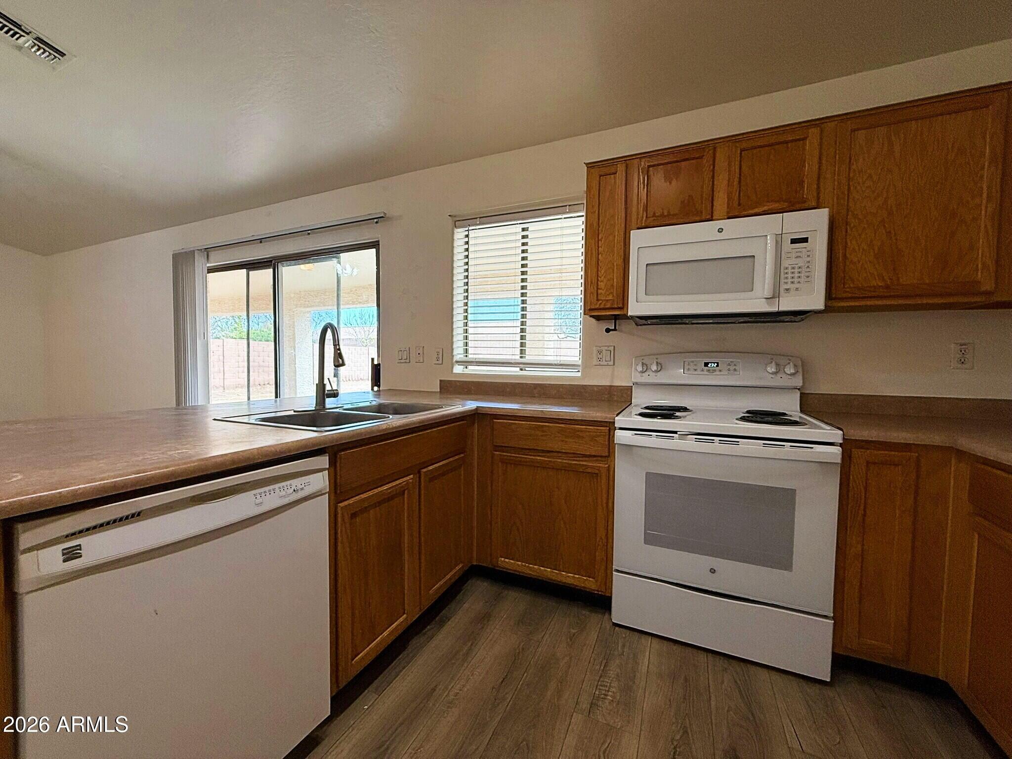Welcome to your beautifully maintained one-story home in the heart of Sundance Ranch! This spacious 4-bed, 2-bath residence sits on a generous ~0.21-acre lot and features abundant natural light, vaulted ceilings, and new vinyl flooring throughout for easy living and low maintenance. The vaulted ceilings provide tons of natural light, and the open floorplan flows seamlessly to a large, private backyard enclosed by a high wall - perfect for outdoor entertaining or quiet relaxation. Enjoy being located directly across from a community park and playground, ideal for families and outdoor fun. With an attached 2-car garage, community HOA amenities, and proximity to local schools, this home combines comfort, convenience, and community living in a desirable Phoenix neighborhood.