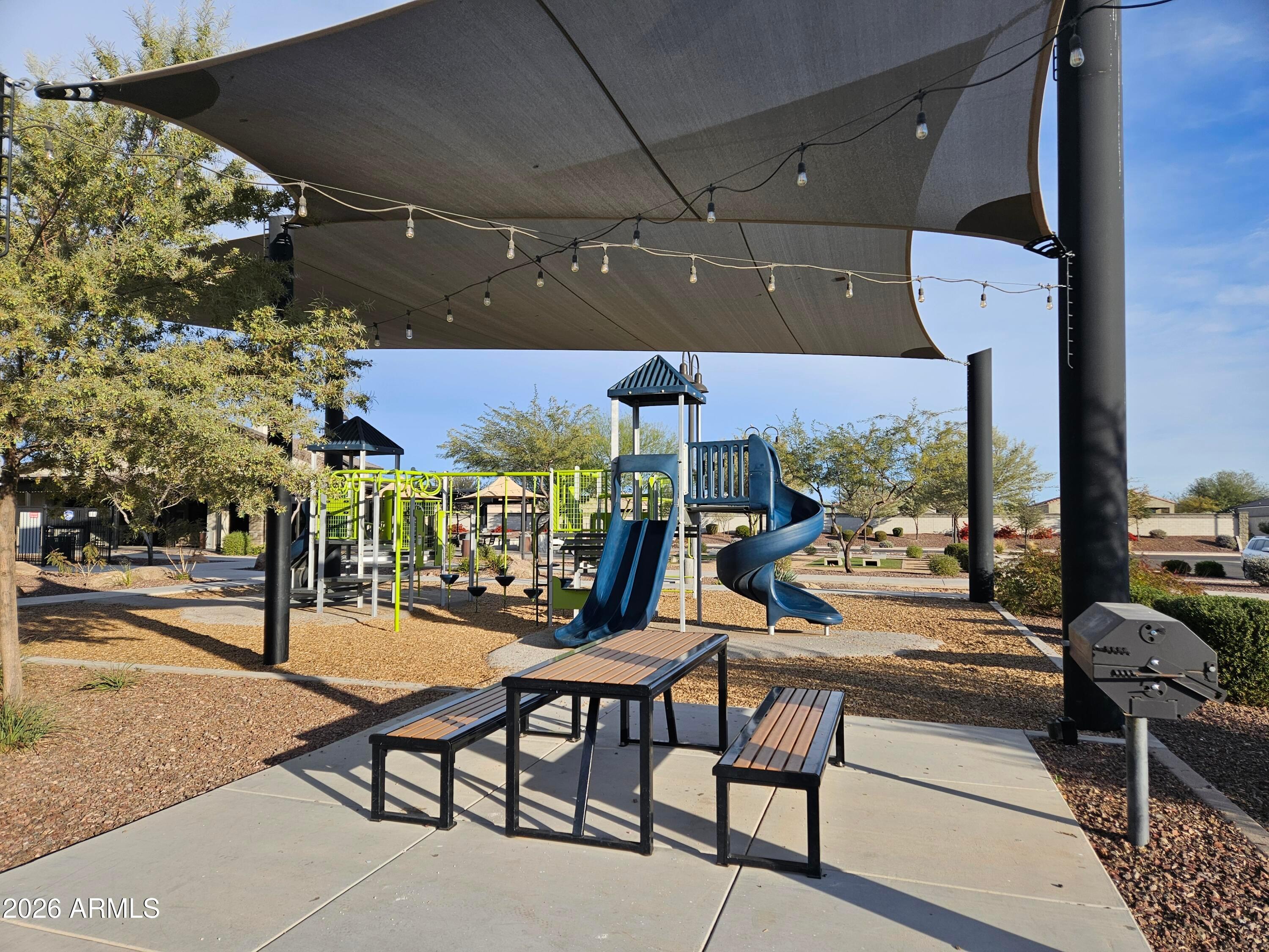 Great floorplan with 3 separate wings for privacy between bedrooms. Gourmet kitchen features white cabinets, granite counters, S/S appliances, gas cook top, tile backsplash. Master is split from the other 3 bedrooms and features double sinks and an extra large shower in the master bathroom. Backyard is landscaped with pavers for low maintenance and RV gate. Community features an amazing pool, basketball courts and playgrounds. Gated Subdivision Also.