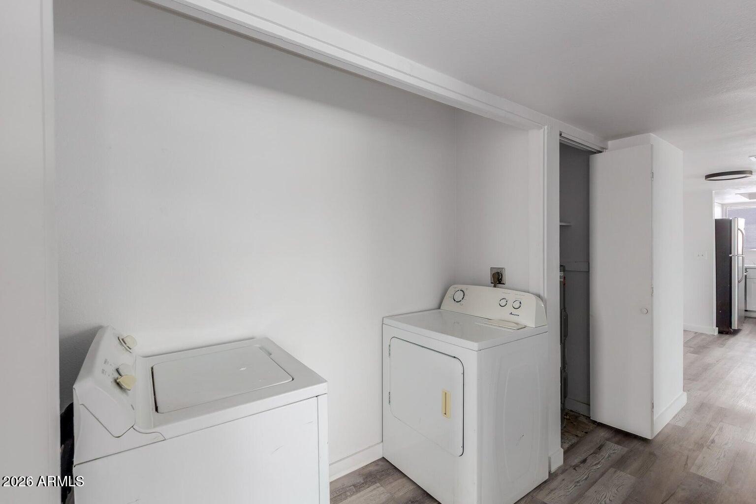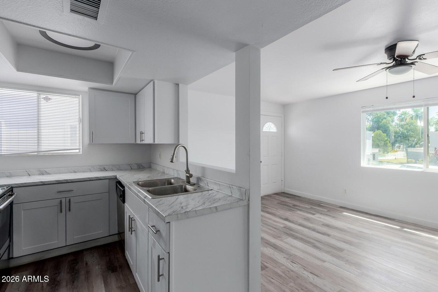 Discover this charming end-unit townhome in the sought-after Loma Linda Condominiums! Featuring a bright and inviting interior with wood-look flooring throughout, a neutral palette, and abundant natural light, this home is perfect for comfortable living. The great room offers a cozy space for relaxation or entertaining. The kitchen is equipped with white shaker cabinets, stainless steel appliances, and a convenient pass-through window. With 2 bedrooms and 1 bathroom, this low-maintenance home is ideal for a variety of lifestyles. Enjoy the added convenience of an inside laundry area, a 1-car garage, and additional open parking spaces. Residents can also take advantage of the sparkling community pool. Conveniently located near schools, shopping, dining, and with easy access to I-17. Move-i