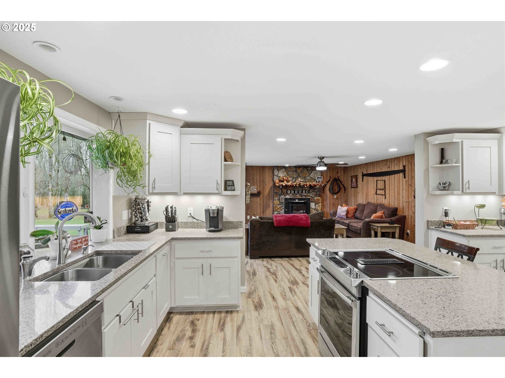 Welcome to this beautifully updated 3-bedroom, 3-bath home set on 2.54 acres of serene, city close, country quiet living. Originally remodeled in 2015, this home has been thoughtfully maintained and modernized, including a complete replumb with PEX piping in 2025 and a new HVAC system with heat pump for year-round comfort. The great room concept creates an open, inviting space perfect for entertaining or relaxing with family. Outdoors, enjoy abundant fruit harvests with established plantings of raspberries, thornless blackberries, boysenberries, and blueberries. Two versatile shops expand the property’s functionality. The RV Shop has concrete flooring, is fully insulated, wired for RV use, and features a spacious two-story loft. The second shop is equipped with a wood stove, loft, welder wiring, insulation, and concrete flooring. It is ideal for projects, hobbies, or a home business. This property offers the perfect blend of modern updates, rural charm, and versatile workspace. Whether you’re seeking a peaceful retreat, a homestead lifestyle, or room for your passions, this home delivers it all.