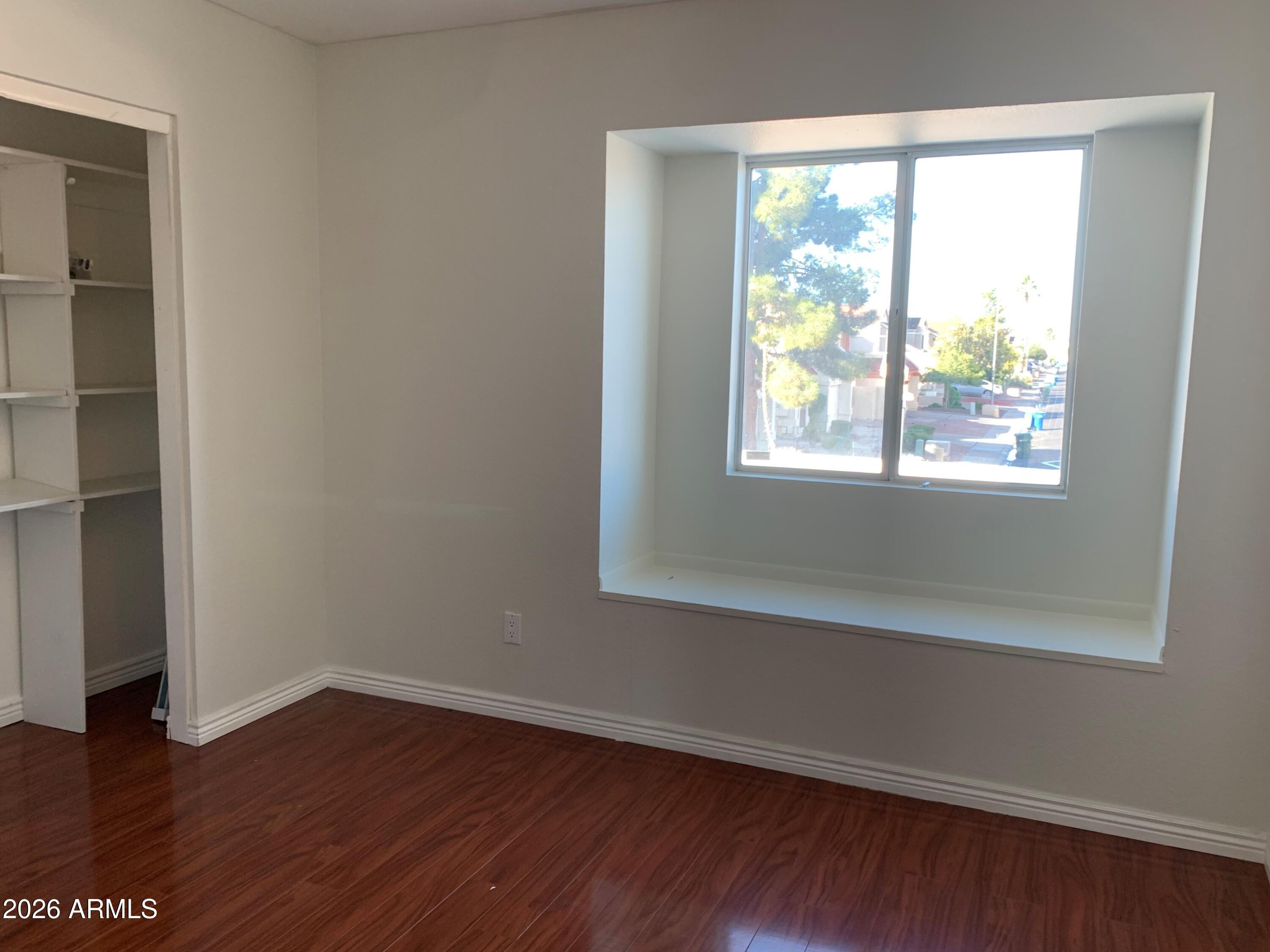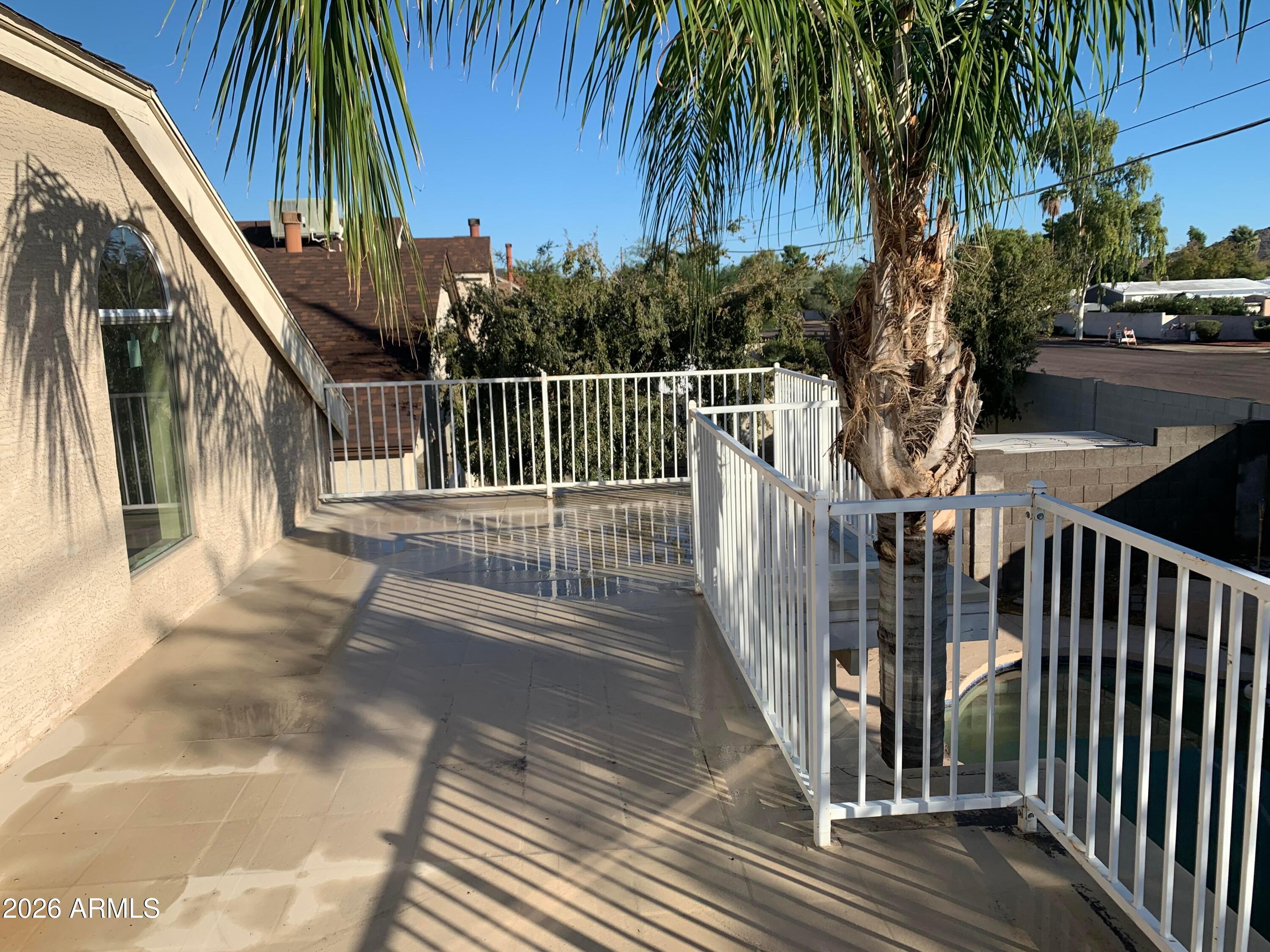 No Application Fees! 3 bedroom, 2.5 bathroom North Phoenix home with a private pool and located within the Paradise Valley School District. This well designed two story home features wood laminate and tile flooring throughout, neutral paint, ceiling fans, and upgraded window blinds. The downstairs living room offers a fireplace and impressive 15-foot vaulted ceilings, creating an open and inviting living space, along with a convenient half bath on the main level. The kitchen includes granite countertops, breakfast bar, upgraded cabinetry, ceramic top electric range, stove top microwave, dishwasher, and refrigerator. All three bedrooms are located upstairs, including the primary suite with private balcony access, double sink vanity, and oversized closet. Washing machine and dryer are included. The backyard features a private pool, and the two-car garage includes built in cabinets for additional storage.