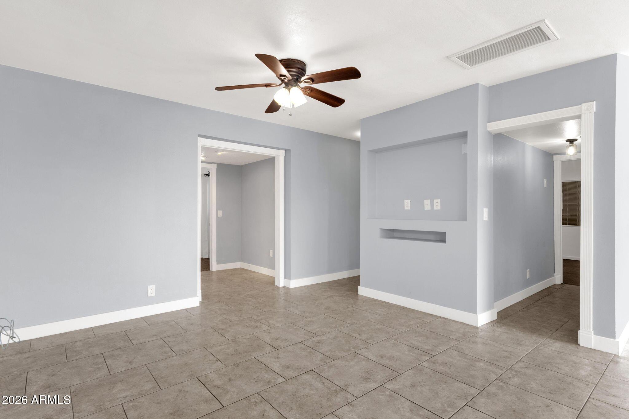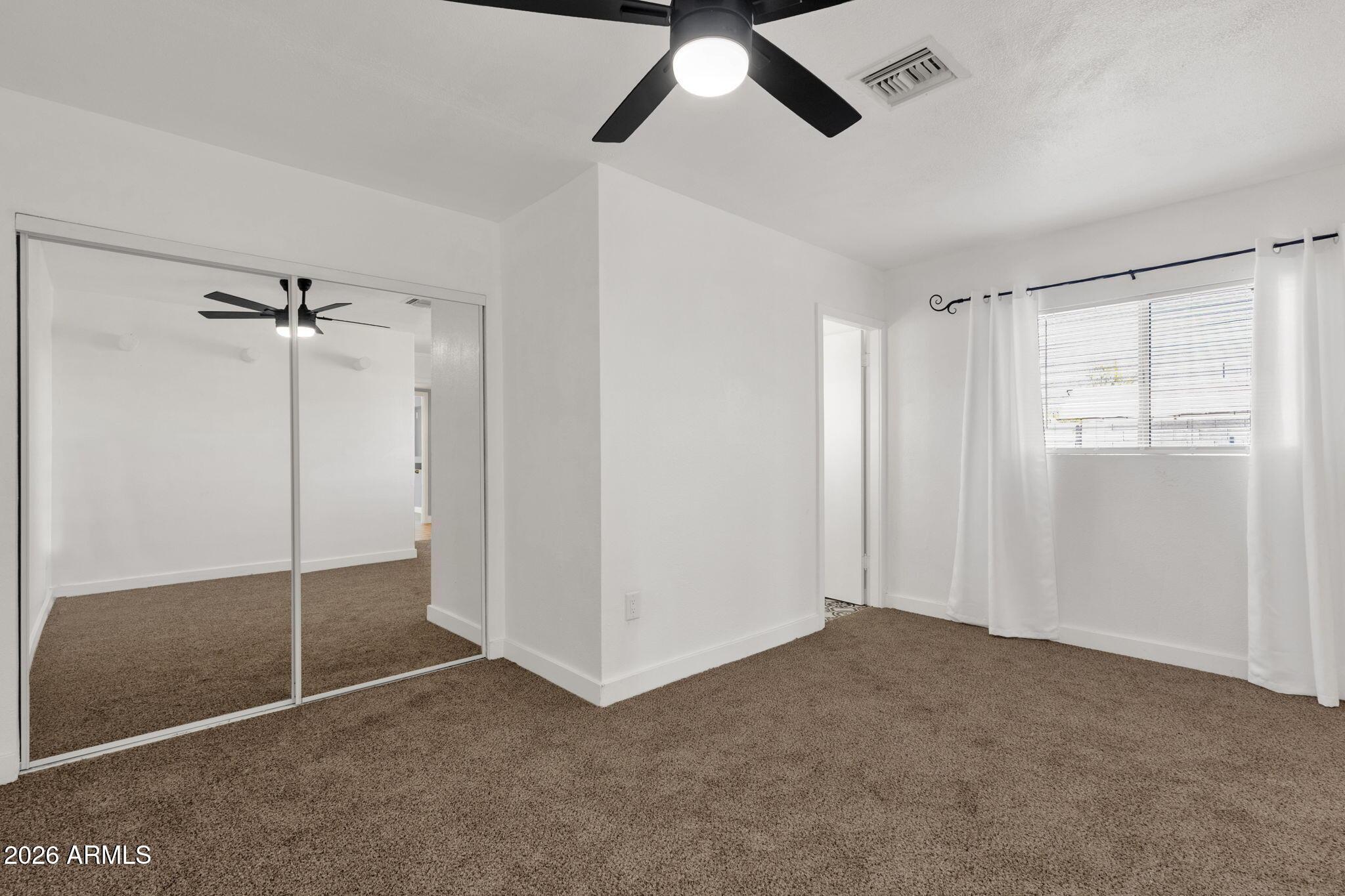 The expansive backyard is block fenced and offers substantial open space for outdoor use. A covered patio adds shaded seating, and the extended driveway plus RV gate provide parking options for recreational vehicles, trailers, or additional vehicles. One-car garage included. Located approximately 2.5 miles to I-10 freeway access, providing connectivity to Downtown Phoenix (approx. 4.0 miles) and major West Valley corridors. Approximately 3.0 miles to Encanto Park, 3.5 miles to Downtown Phoenix dining and entertainment, and near neighborhood shopping and services along McDowell Road and 35th Avenue. Rental properties with private-entry suites, RV parking, and oversized lots are limited in this area.