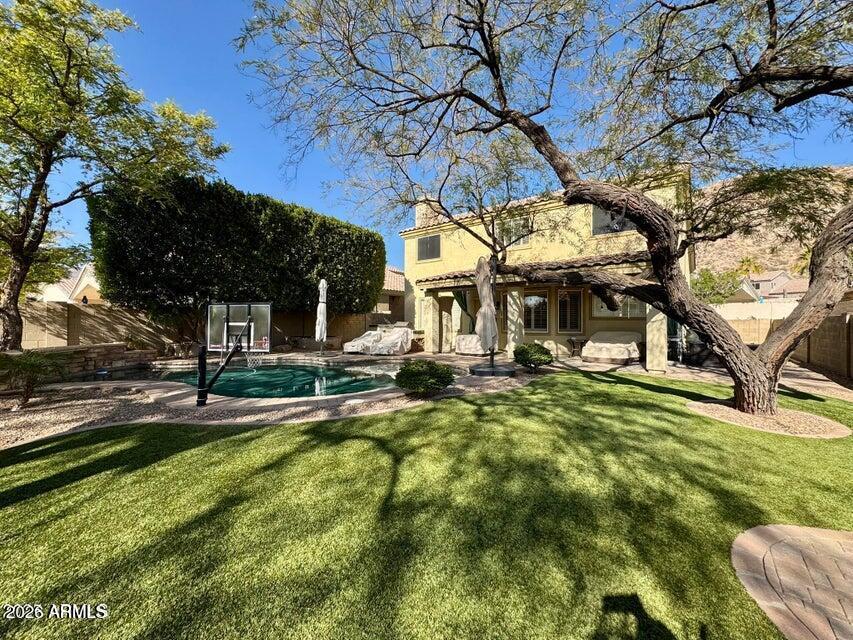 Discover this beautifully updated 4-bedroom, 2.5-bathroom home in a prime location with mountain views! Nestled in quiet neighborhood , this home is just steps away from top-rated schools, parks, local amenities and hiking/biking trails. Step inside to find a bright and modern interior, featuring an open-concept living space, sleek flooring, and a stylish kitchen with new stainless steel appliances, and island--perfect for entertaining! The spacious master suite includes a walk-in closet and an elegant en-suite bathroom equipped with a tub and shower. The real showstopper is the resort-style backyard! Relax and unwind in your private oasis, complete with a sparkling salt water pool, a covered patio, outdoor built-in BBQ, and lush landscaping including five beautiful trees providing ample shade to enjoy the outdoors year round.