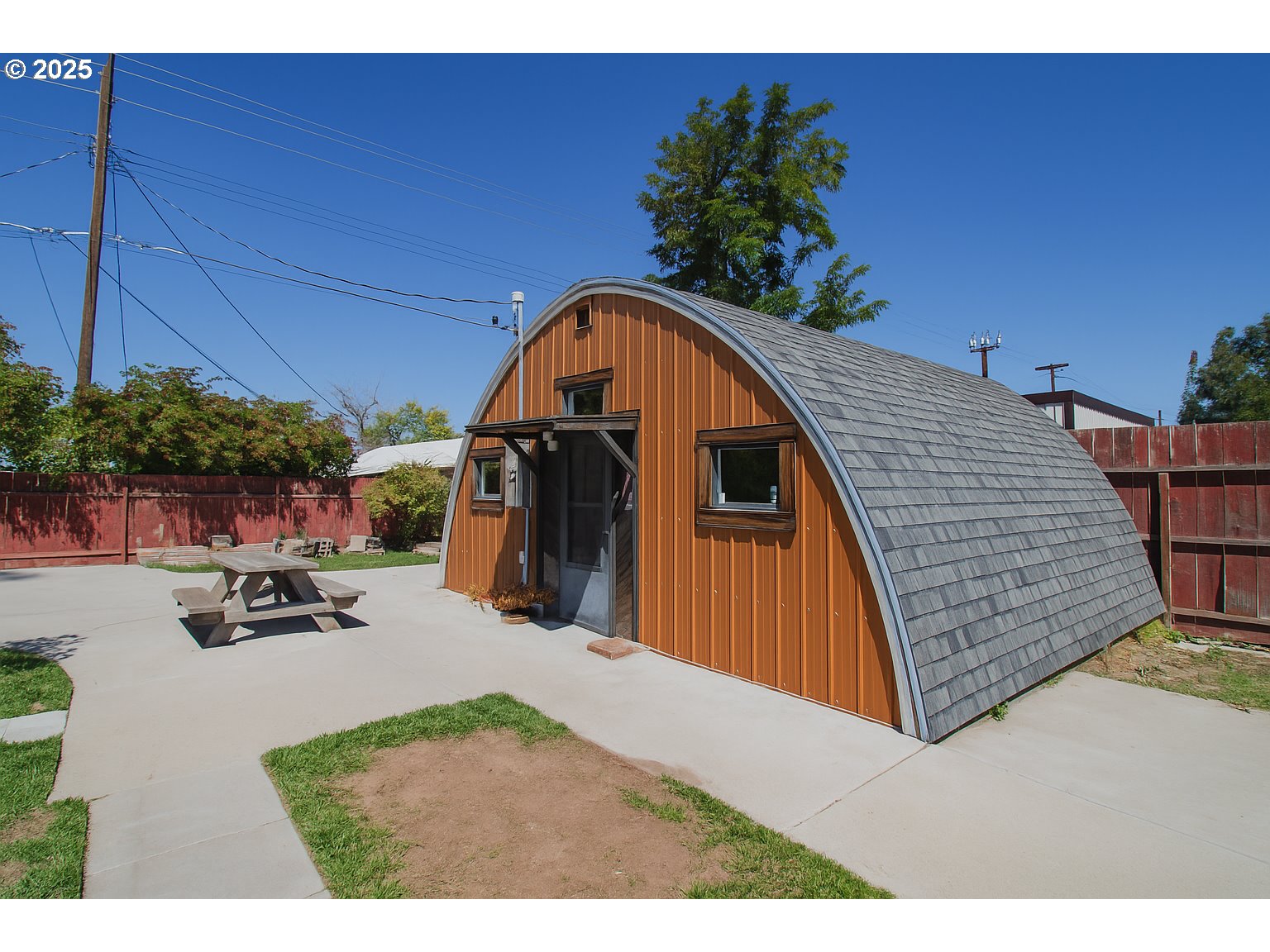 Welcome to a delightful cottage-style home that blends charm with functionality. Located in a vibrant neighborhood, it's ideal for both residential and commercial use. Live in the house & use the Quonset hut as your office/shop. Or, with the proper permitting, it could be an ADU. Please check with the City of Ontario for details. The home features inviting landscaping & a private backyard oasis with fruit trees. Gardeners will love the greenhouse and raised garden beds. With commercial zoning, this property is perfect for a small home-based business. Inside, the spacious living room feels warm and inviting. It has two bedrooms, one of which can easily be a home office, accessible from both the living room and hallway. Downstairs, the space offers extra storage and a flexible room, media room, or additional storage. This charming home offers residential comfort and commercial potential, making it ideal for gardening enthusiasts, entrepreneurs, or those seeking a tranquil backyard setting. Make it your own!