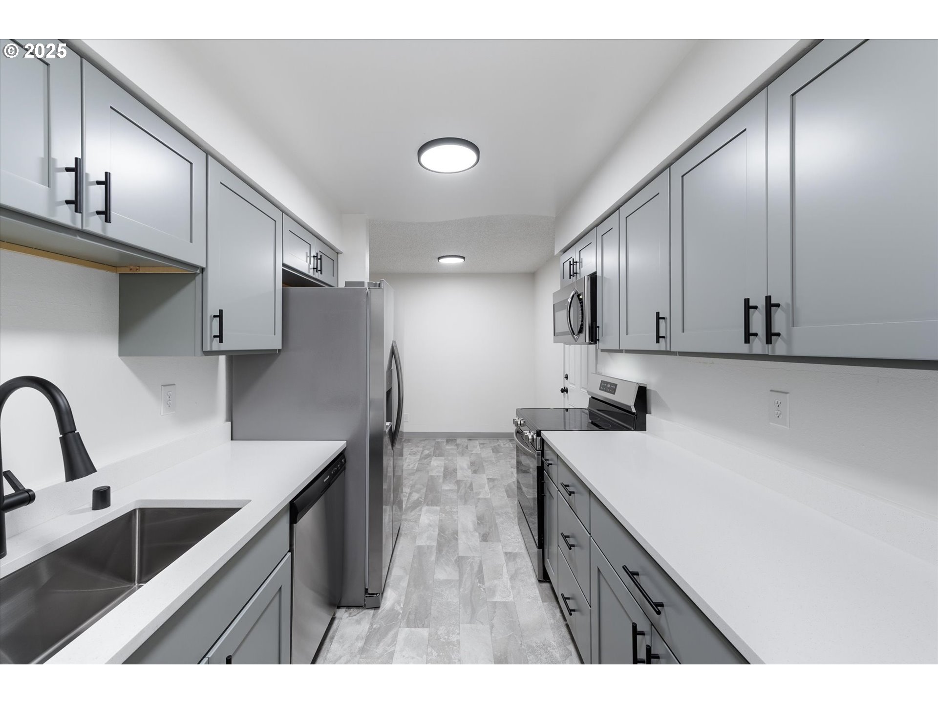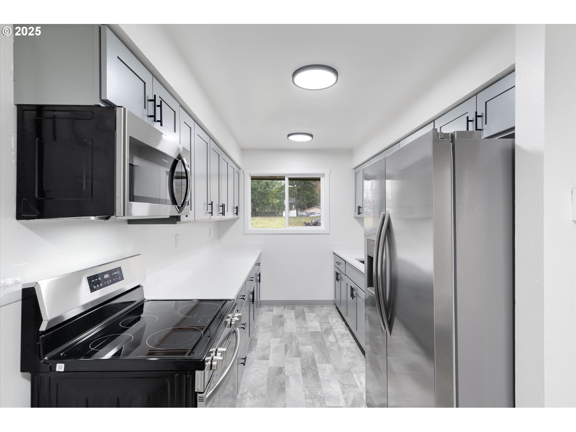 Marvelous Transformation! You will love this affordable, remodeled 3-Bedroom, single-story home! This home features a spacious living room. The kitchen showcases new shaker cabinets, quartz countertops, and a stainless steel appliance package. The bathroom has been completely renovated with a new vanity and a beautiful tile bath surround. The home has new flooring throughout, fresh paint inside & out, new lighting, and new doors. The primary bedroom features a sliding door that leads to the covered patio. The home has a single attached garage as well as a 672 square foot double detached garage off of the alley. This is a one-of-a-kind opportunity! Schedule a personal viewing appointment today!