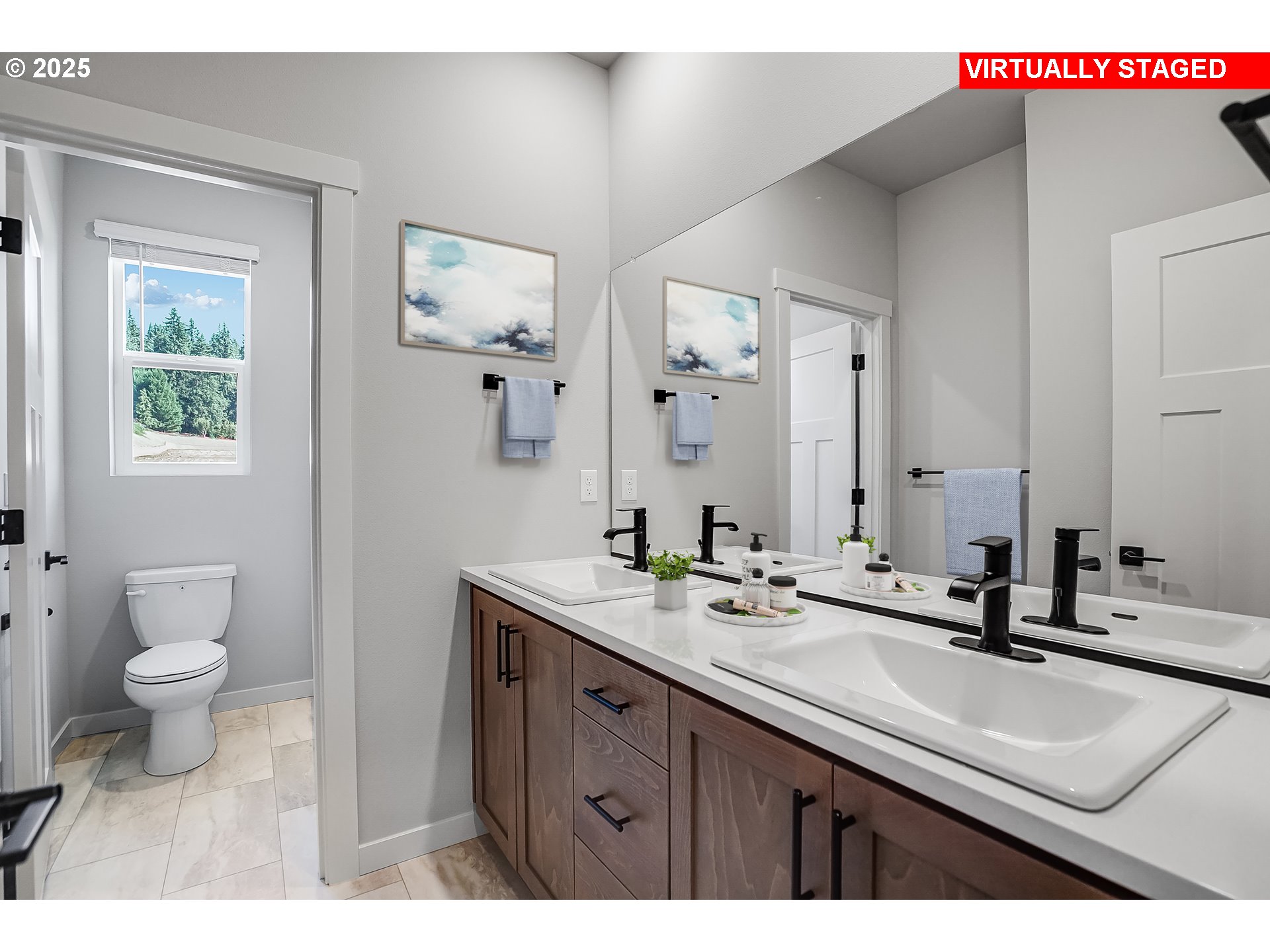 This move in ready, new construction home in Camas Heights is set within a quiet neighborhood just minutes from PDX and the highly desirable Camas School District, with easy access to Lacamas Lake, Camas Meadows Golf Course, and the shops and restaurants in downtown Camas. The Bradford plan showcases a two-story design with a welcoming foyer that leads to an open living area and back patio. A main-level bedroom offers privacy for guests, while upstairs are three additional bedrooms, a versatile bonus room, and a spacious primary suite with a full bath. Interior finishes include quartz countertops, shaker-style cabinets, a picket-style backsplash in the kitchen, matte black fixtures, and LVP flooring in key areas, along with other luxury details. This home also features landscaping, fencing, and central air conditioning, plus a refrigerator, washer and dryer, and blinds—all at no extra cost! Located on homesite 12. Rendering is artist conception only. Photos are of a similar home, features and finishes will vary.Homesite #21