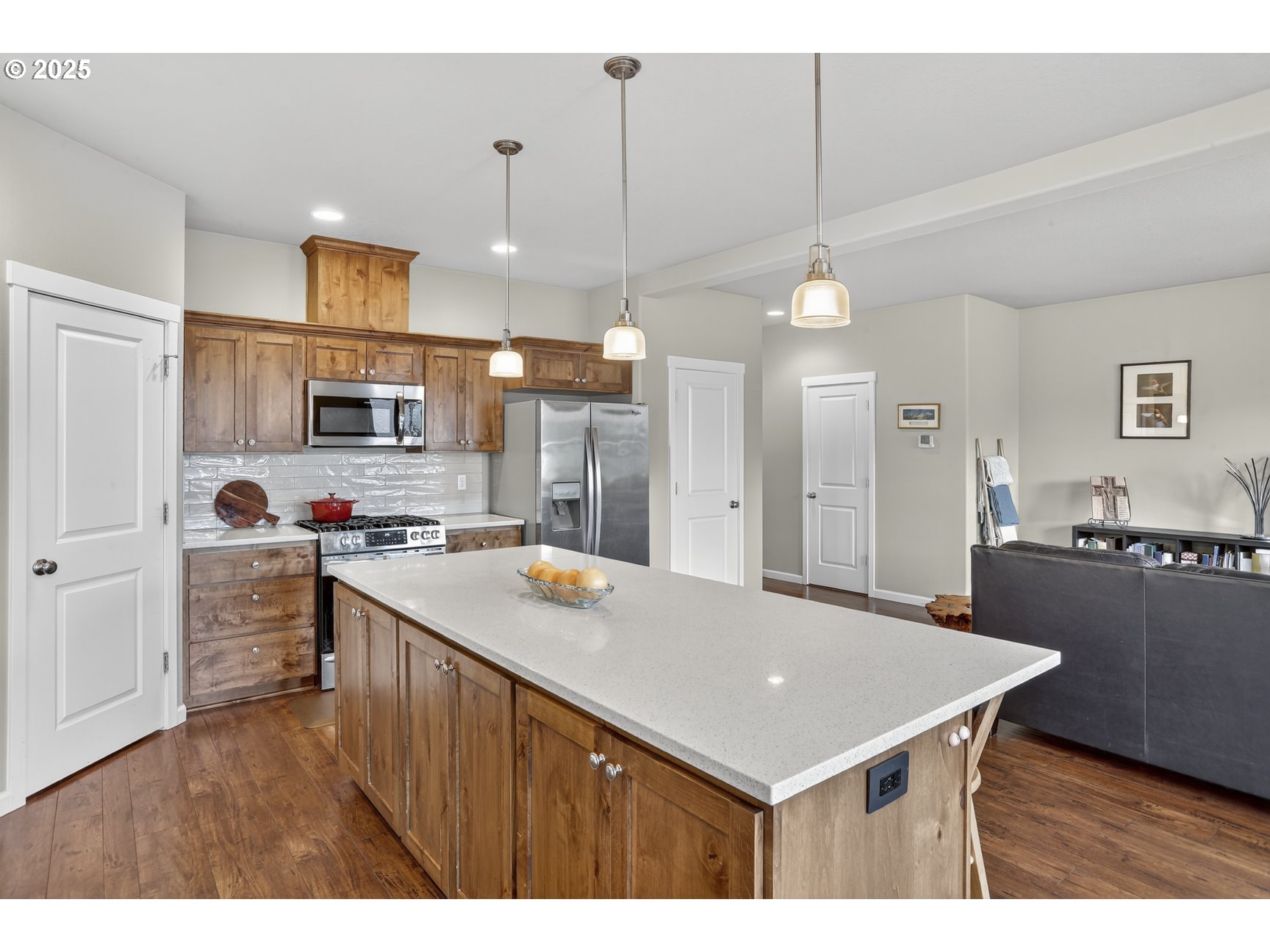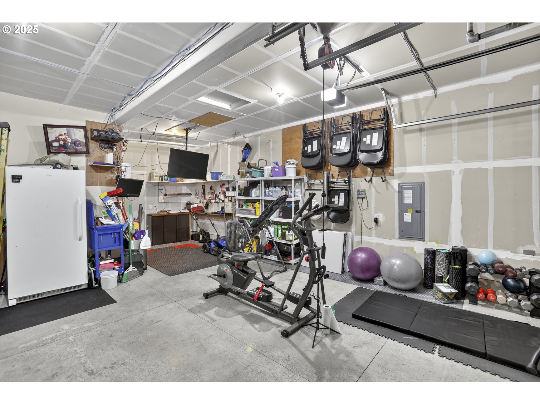 Welcome home! Bright, open layout with upgraded Acacia cabinets, quartz counters, tile backsplash & stainless appliances. Easy indoor-outdoor flow to a covered patio and fully fenced yard—perfect for BBQs or quiet mornings. The garage is a rare find: heated, finished, with built-in shelving, storage above all bays & a shop area. Upstairs offers generous rooms, a private primary suite & great natural light. Meticulously maintained, move-in ready, in proximity to shopping, parks & easy I-205 access.Professional photos coming on Wednesday.