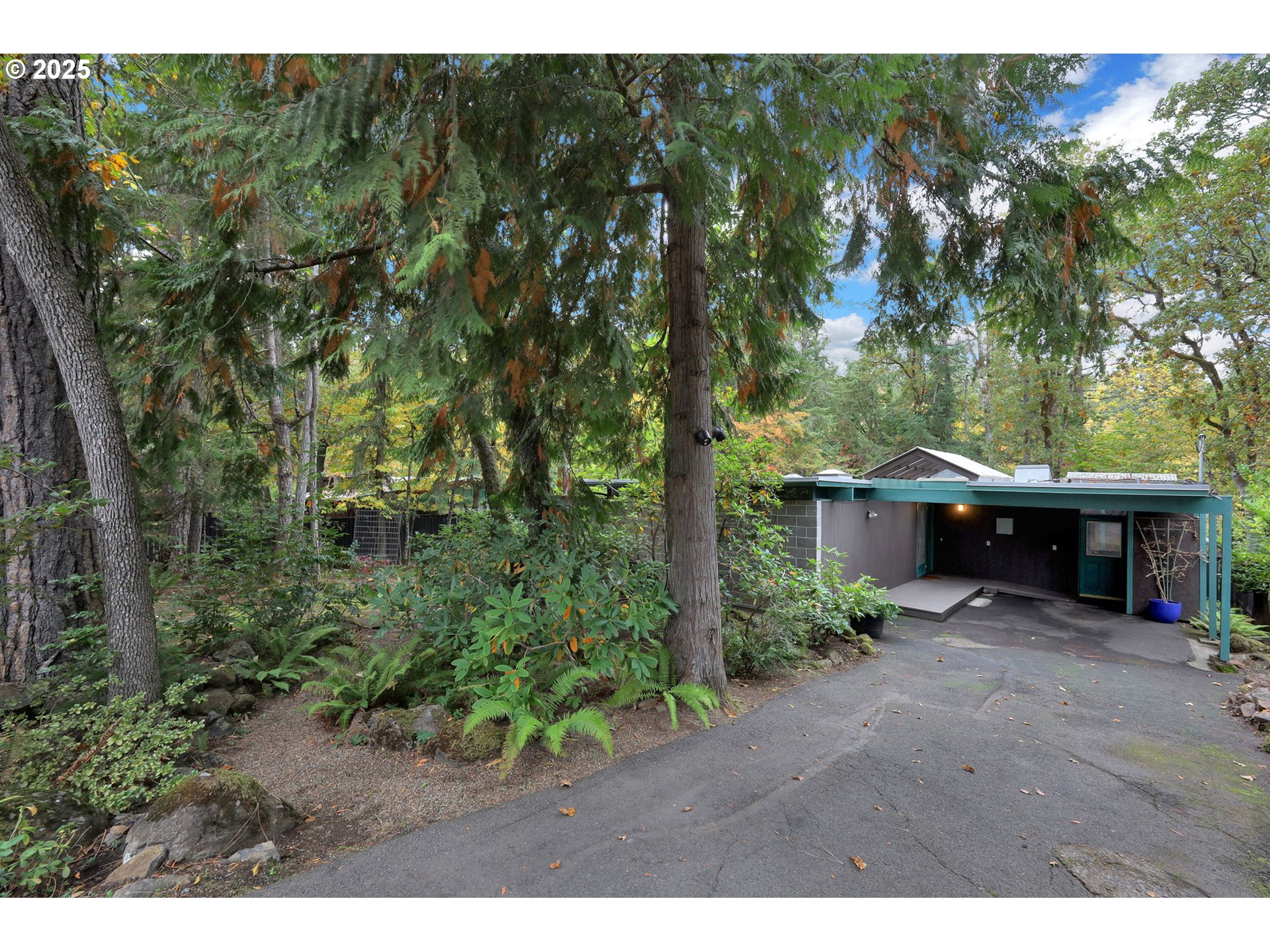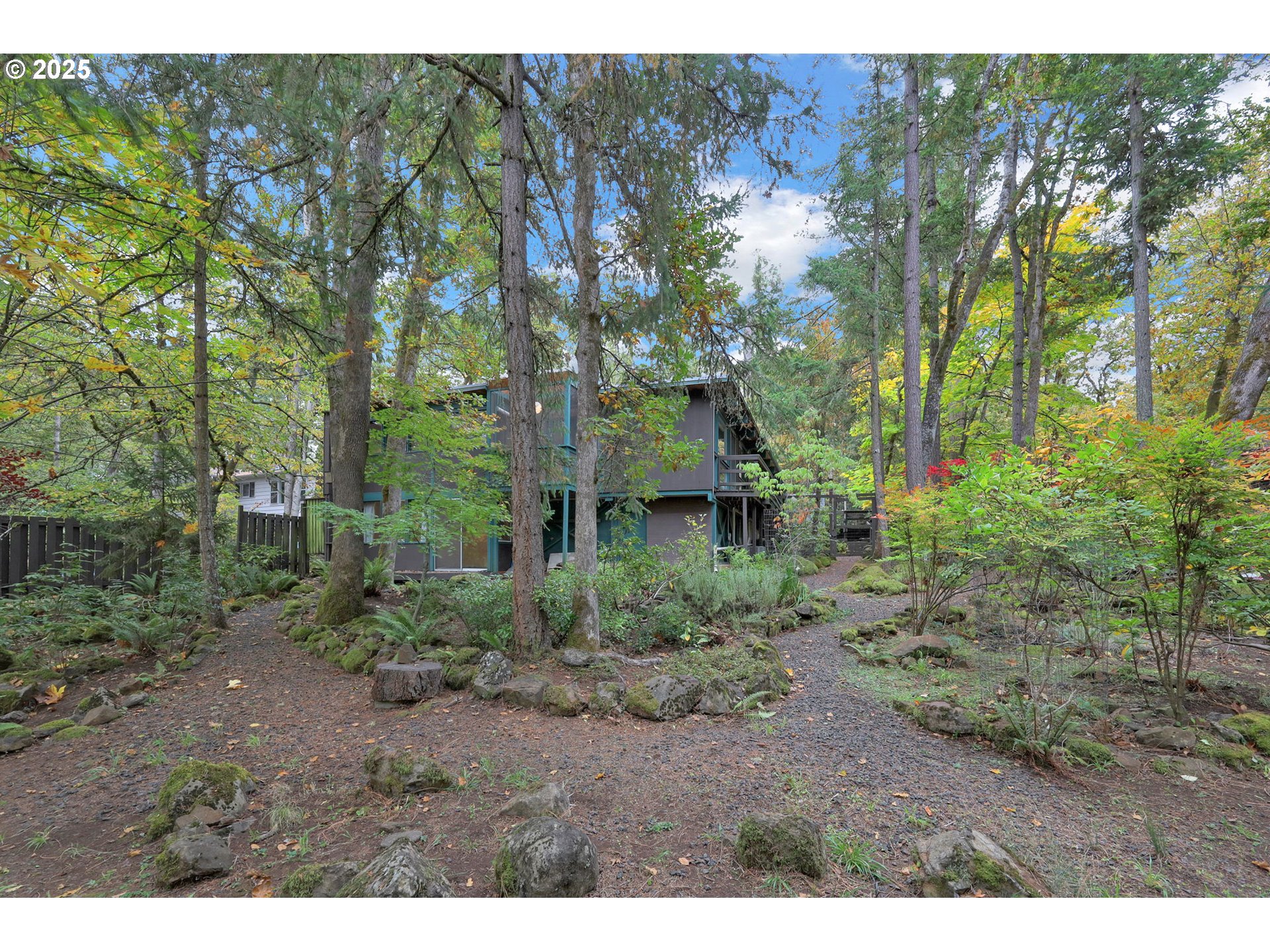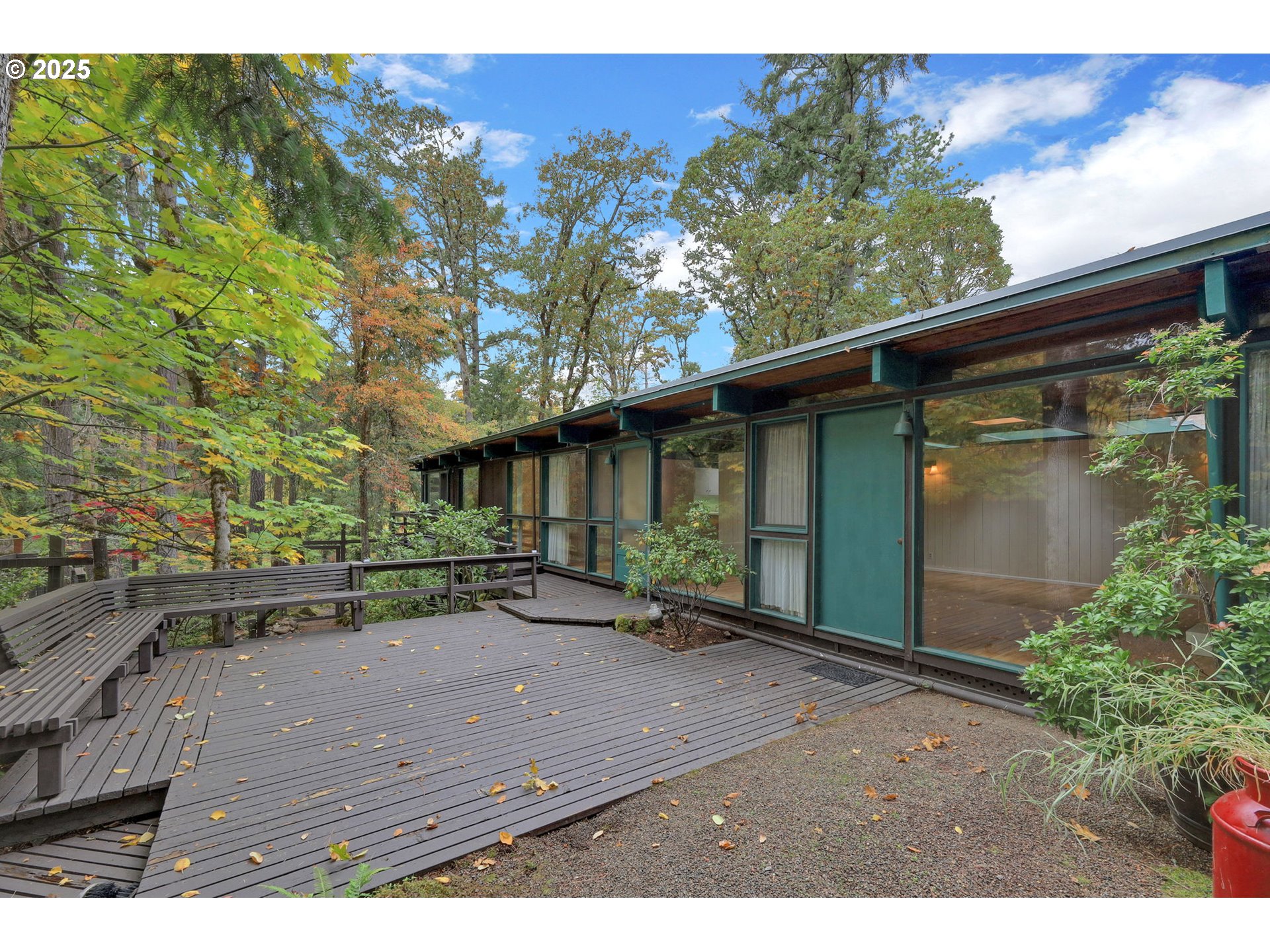 SOUGHT AFTER MID-CENTURY MODERN HOME DESIGNED/BUILT BY UNTHANK/CHAMBERS IN SOUTH EUGENE! Boasting beautiful hardwood floors, floor to ceiling windows that afford a connection to nature, skylights, natural wood accents, heat pump, and gas fireplace with stunning copper hood. The light and bright kitchen has a built-in eating area and island with formal dining room adjacent. The main level affords 3 bedrooms, full bath with curbless shower, laundry, in addition to the primary en-suite complete with a reading nook, private balcony, walk-in closet and full bath. The lower level family room with exterior access, built-in closets, sink & private deck could also be flex space, office or guest room. Abundant storage in low ceiling basement (not counted in the sq ft). Enjoy the .28 acre yard which is park like with maintained pathways, mature landscaping, deck for entertaining and sitting areas. South Eugene Schools!