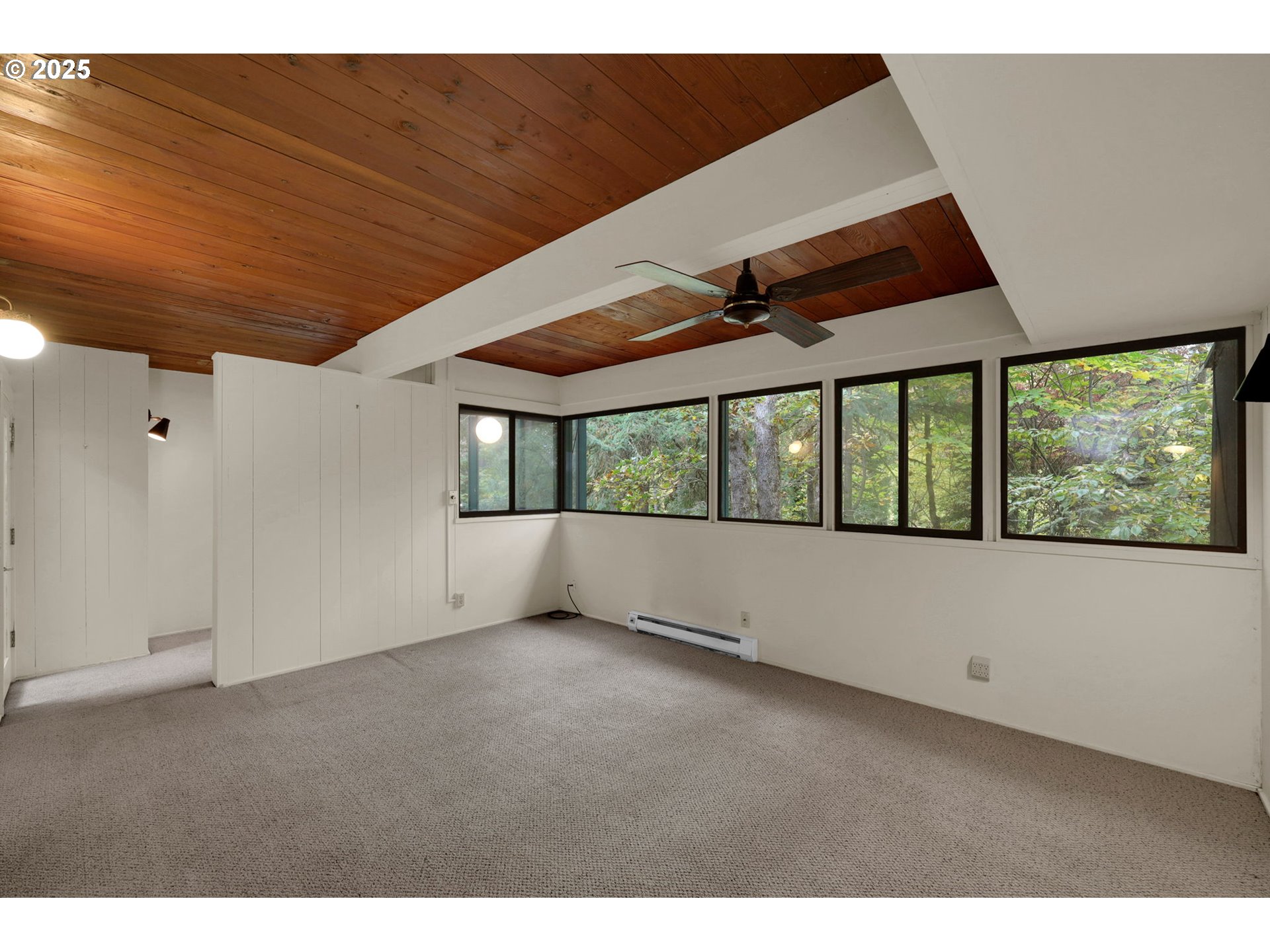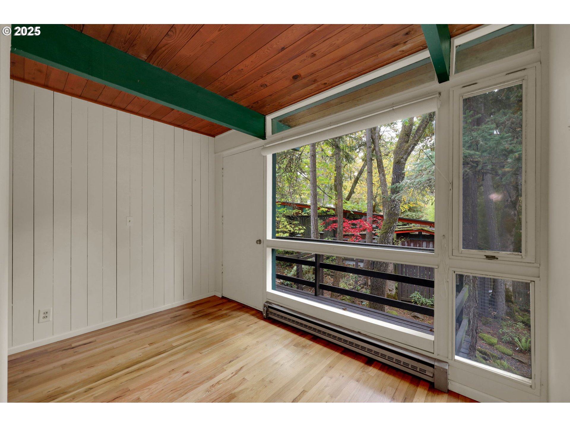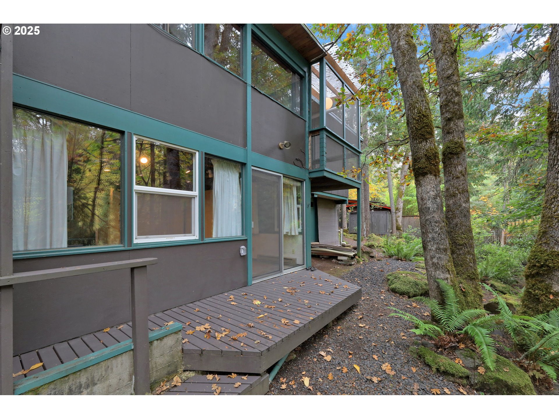 SOUGHT AFTER MID-CENTURY MODERN HOME DESIGNED/BUILT BY UNTHANK/CHAMBERS IN SOUTH EUGENE! Boasting beautiful hardwood floors, floor to ceiling windows that afford a connection to nature, skylights, natural wood accents, heat pump, and gas fireplace with stunning copper hood. The light and bright kitchen has a built-in eating area and island with formal dining room adjacent. The main level affords 3 bedrooms, full bath with curbless shower, laundry, in addition to the primary en-suite complete with a reading nook, private balcony, walk-in closet and full bath. The lower level family room with exterior access, built-in closets, sink & private deck could also be flex space, office or guest room. Abundant storage in low ceiling basement (not counted in the sq ft). Enjoy the .28 acre yard which is park like with maintained pathways, mature landscaping, deck for entertaining and sitting areas. South Eugene Schools!