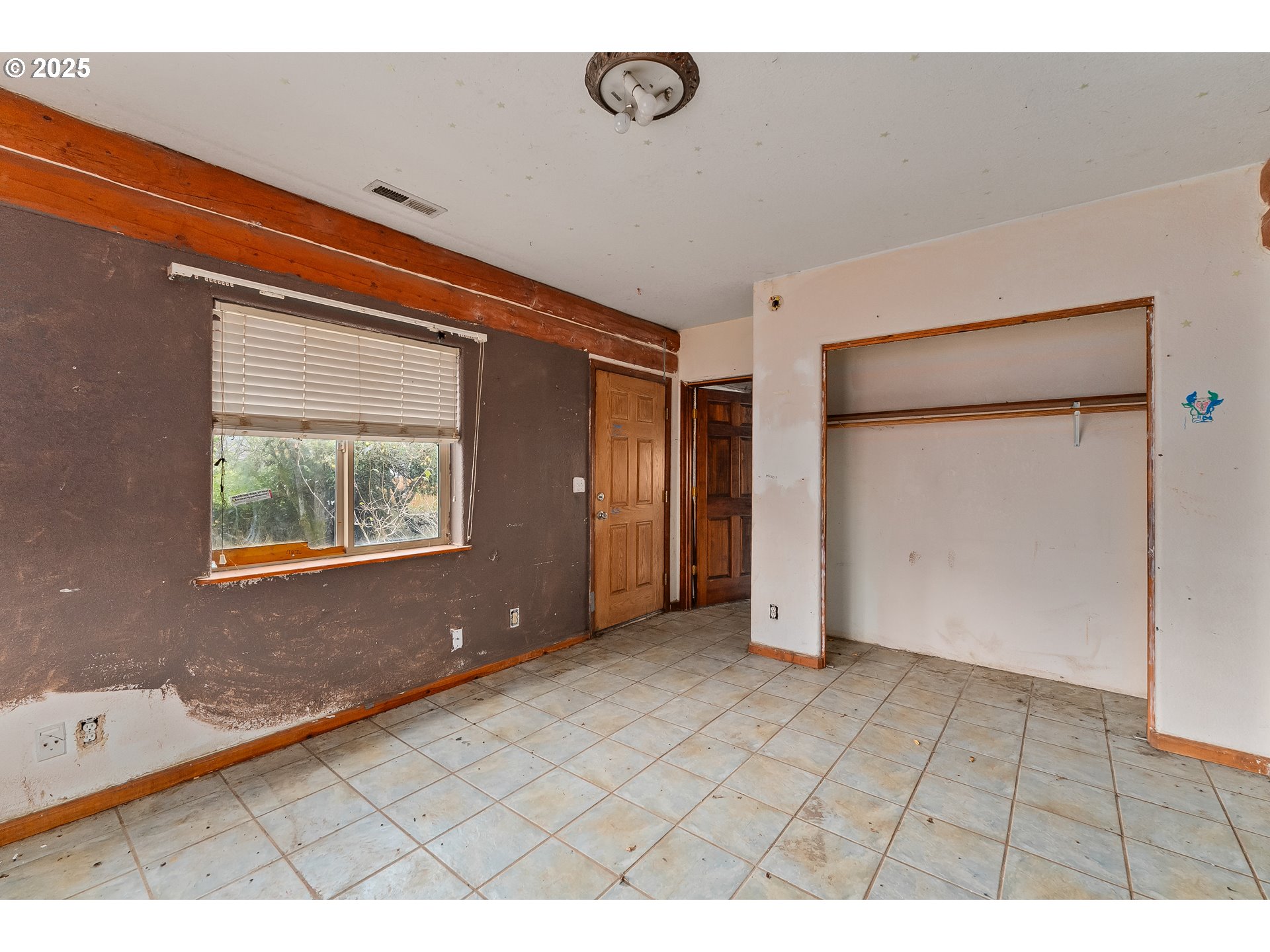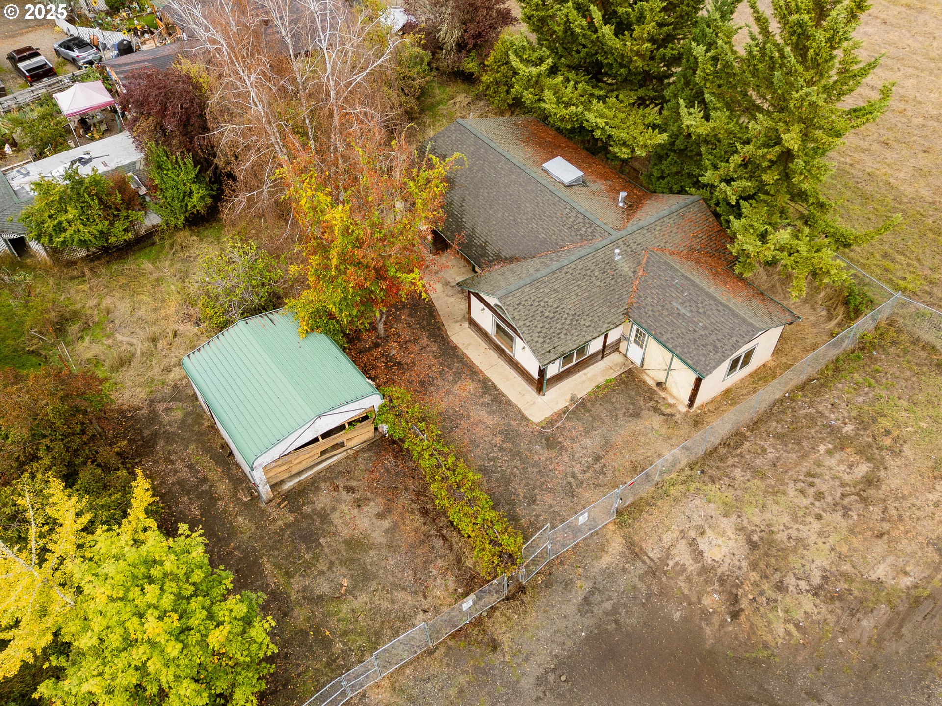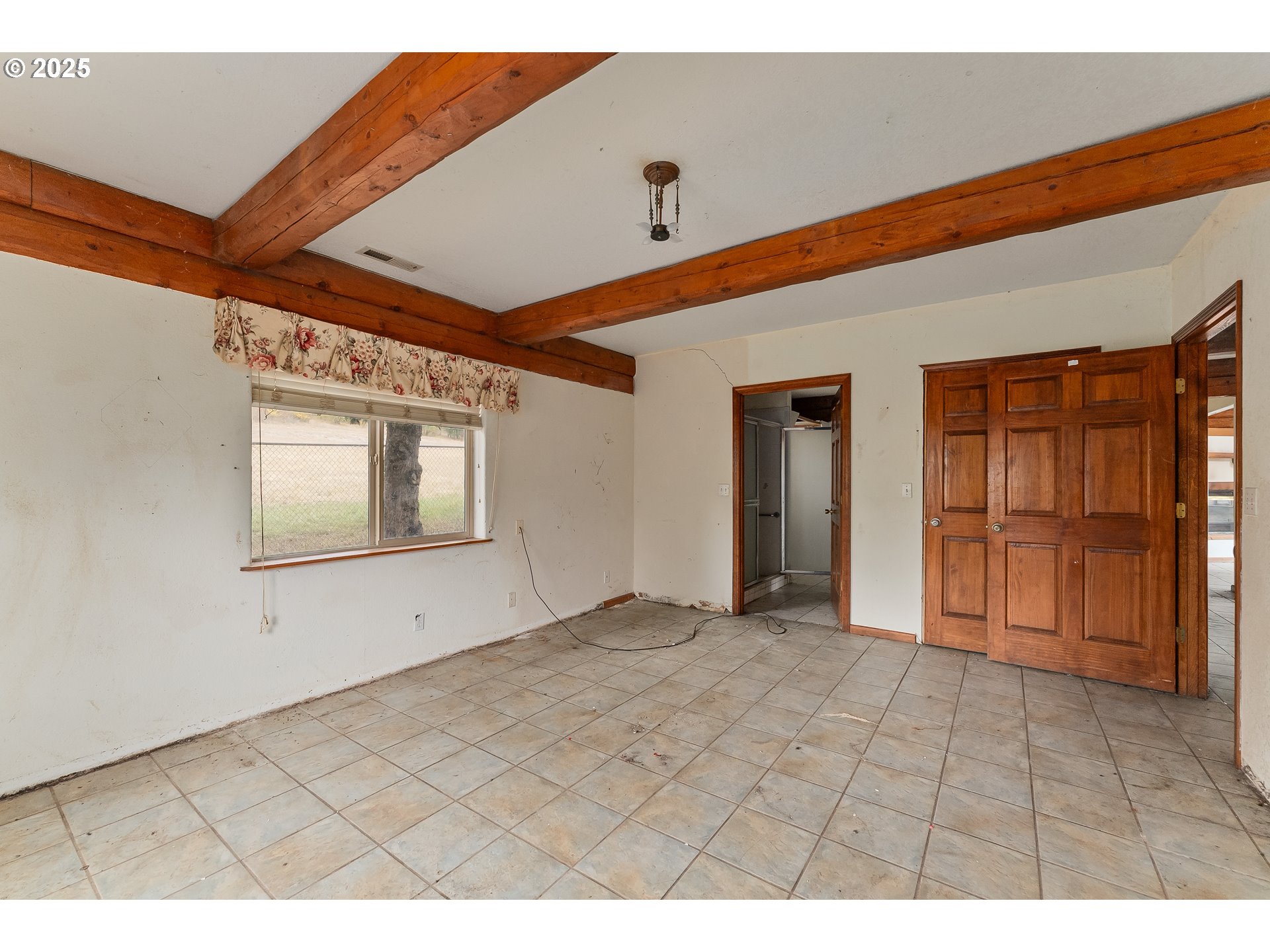 WOW! INVESTOR SPECIAL! Tucked away on the end of a quiet street, this property offers a rare sense of privacy and potential. Set on a .28-acre lot that backs up to open, undeveloped land, this 2-bedroom, 1-bath home is 1,441 square feet and is ready for its next chapter. Inside, vaulted ceilings with exposed wood beams add character and warmth to the open floor plan. Large windows bring in natural light and frame views of the surrounding trees and hills. The tile flooring runs throughout the main living areas, creating a cohesive, low-maintenance foundation for renovation. The kitchen offers generous counter space, a walk-in pantry, and built-in appliances with a solid layout to work from. The attached garage could easily be converted to additional living space. Outside, the fenced yard features mature trees, a detached carport, and plenty of room for RV parking, gardening or expansion. With no neighbors behind you, the setting feels peaceful and private, yet you’re only minutes from town conveniences, shopping, and easy freeway access. Whether you’re an investor, builder, or want a project to make your own, this home is a promising project with good bones, natural surroundings, and room to add serious value. Bring your vision and your toolbelt! Schedule your private tour today!