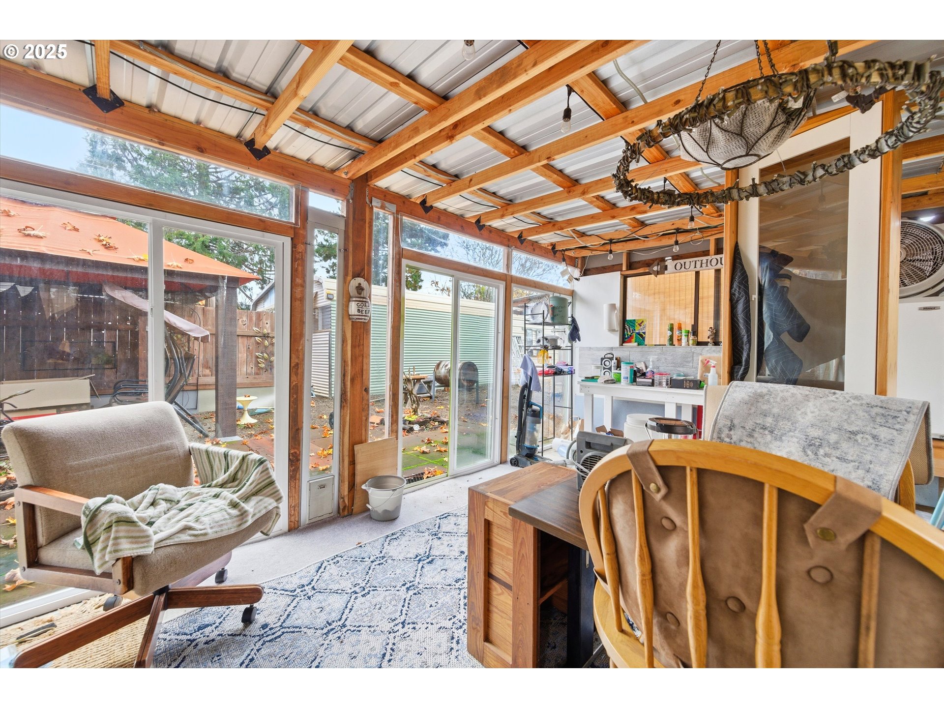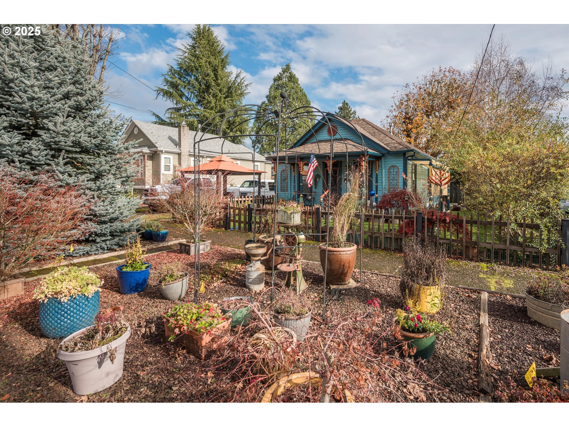 Charming Victorian-style 2 bedroom, 1 bath home on large lot with 4 outbuildings. Home features a newer roof, 9 ft. ceilings, gas woodstove, LVP flooring, and carpet. The renovated kitchen includes ceramic countertops, deep storage drawers, and updated finishes. Formal dining room offers additional space for entertaining. The main bedroom features a closet, and direct access to the updated bathroom with a walk-in tile shower. A spacious 8x8 mudroom provides excellent storage.