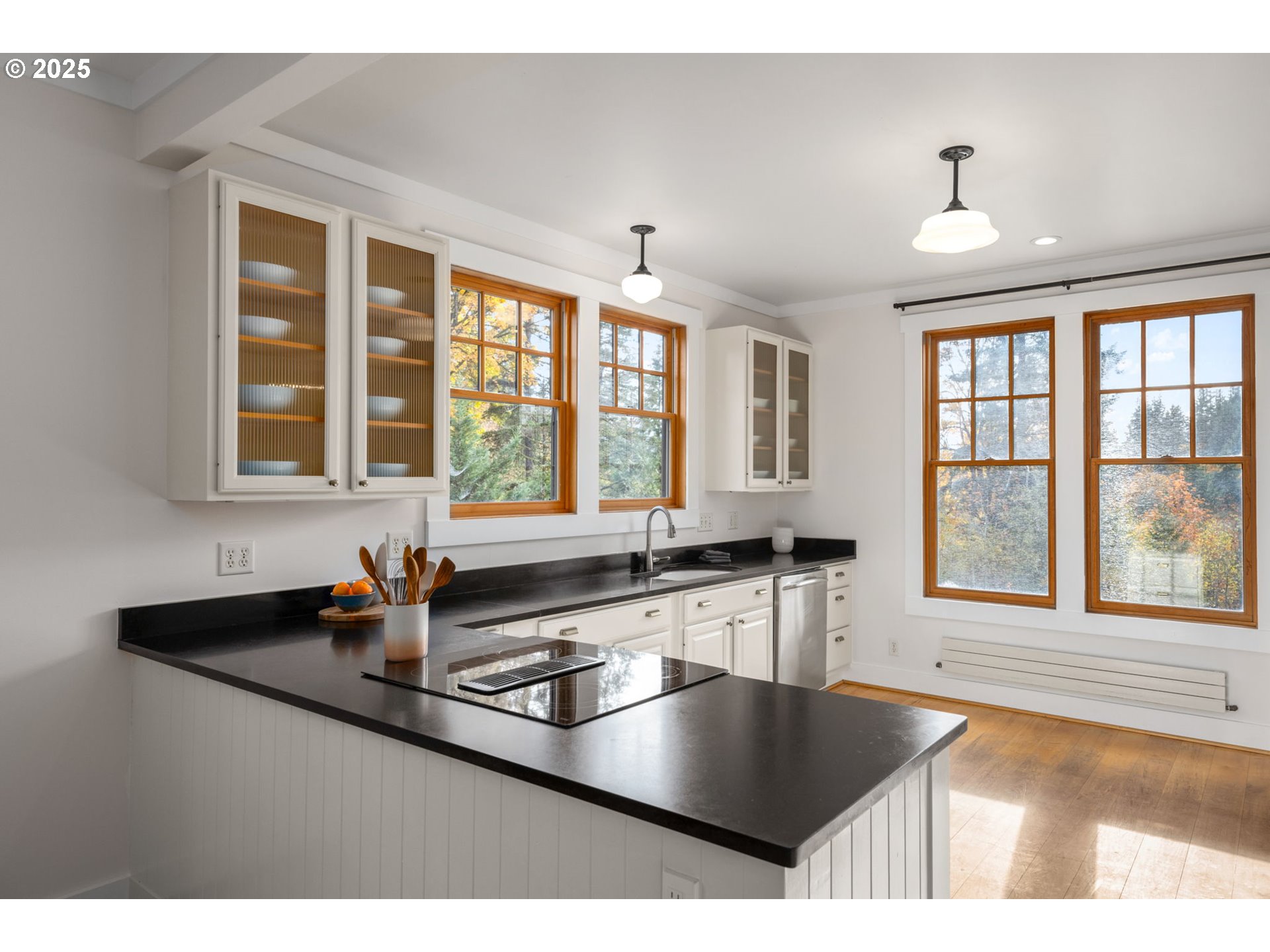 Custom designed, New England style farmhouse perfectly positioned on two acres with tranquil view of gorgeous rolling country hills. This stunning home features wide plank hardwood floors, high ceilings, heated floors, and radiant heat. Kitchen features combination of butcher block and granite counters. Dining room adjacent to kitchen could also function as a family room. Wood burning fireplace in the living room with floor to ceiling bookshelves. Upstairs are three generously sized bedrooms with lovely high ceilings. Primary suite with clawfoot tub, walk-in shower, and double sinks. Downstairs is the perfect all purpose room! Painted concrete floors make for multi-purpose space... set up a family room, office area, or work out room. The park-like yard features a deer-proof garden area (because there are always deer nearby), large pool with deck, storage shed, and more! MUST SEE!