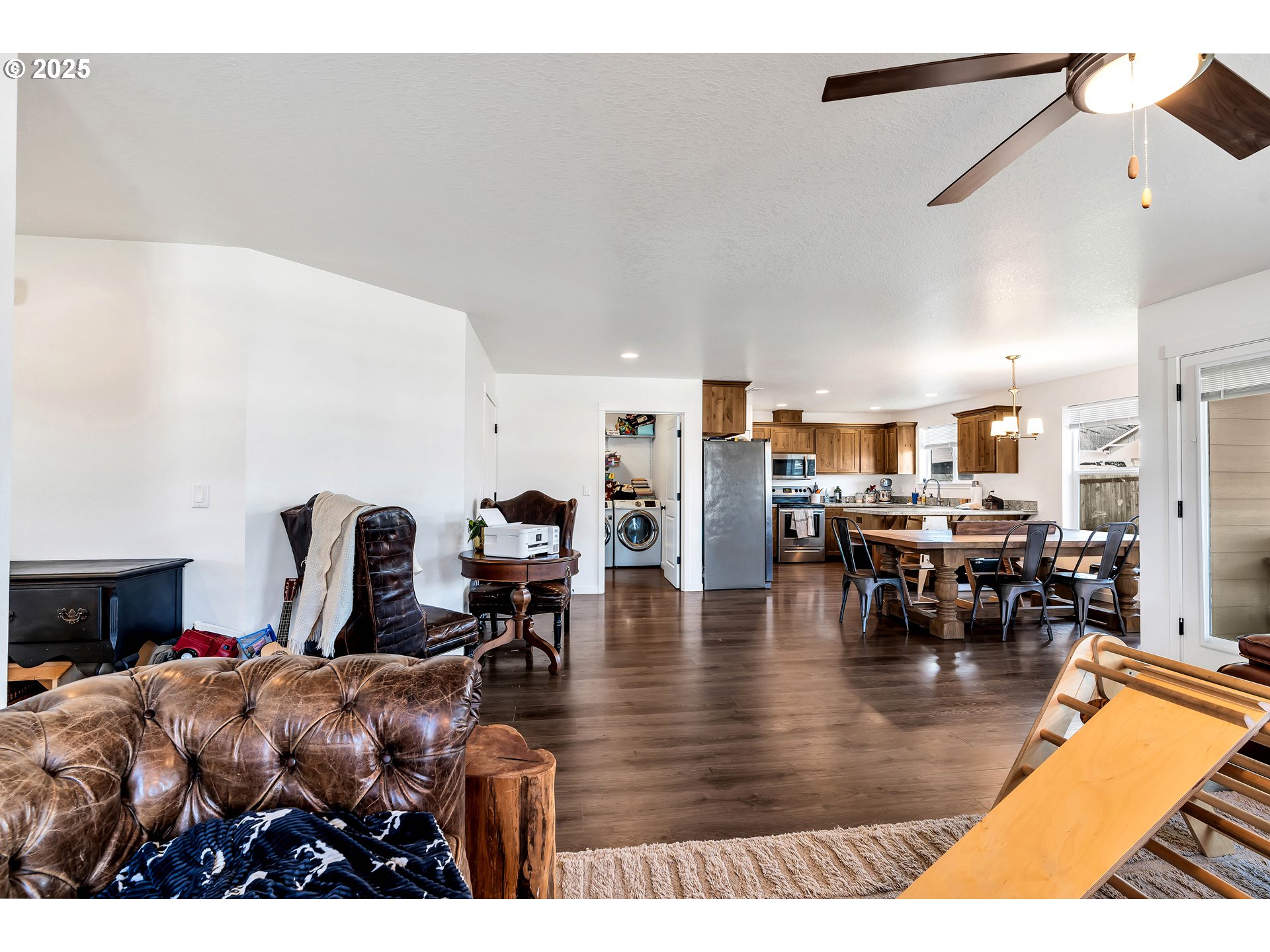 Welcome to this beautiful two-story home offering comfort, space, and functionality throughout. Featuring 4 spacious bedrooms with wall-to-wall carpet, including a primary suite with ensuite bathroom, this home is designed for both convenience and privacy. The open-concept living areas feature durable laminate flooring and ceiling fans in the living room and all bedrooms for year-round comfort.Step outside to a covered patio perfect for relaxing or entertaining, overlooking a large, fully fenced backyard ideal for gatherings, gardening, or play. With its blend of modern finishes, generous layout, and inviting outdoor space, this home has everything you need to enjoy easy, comfortable living.