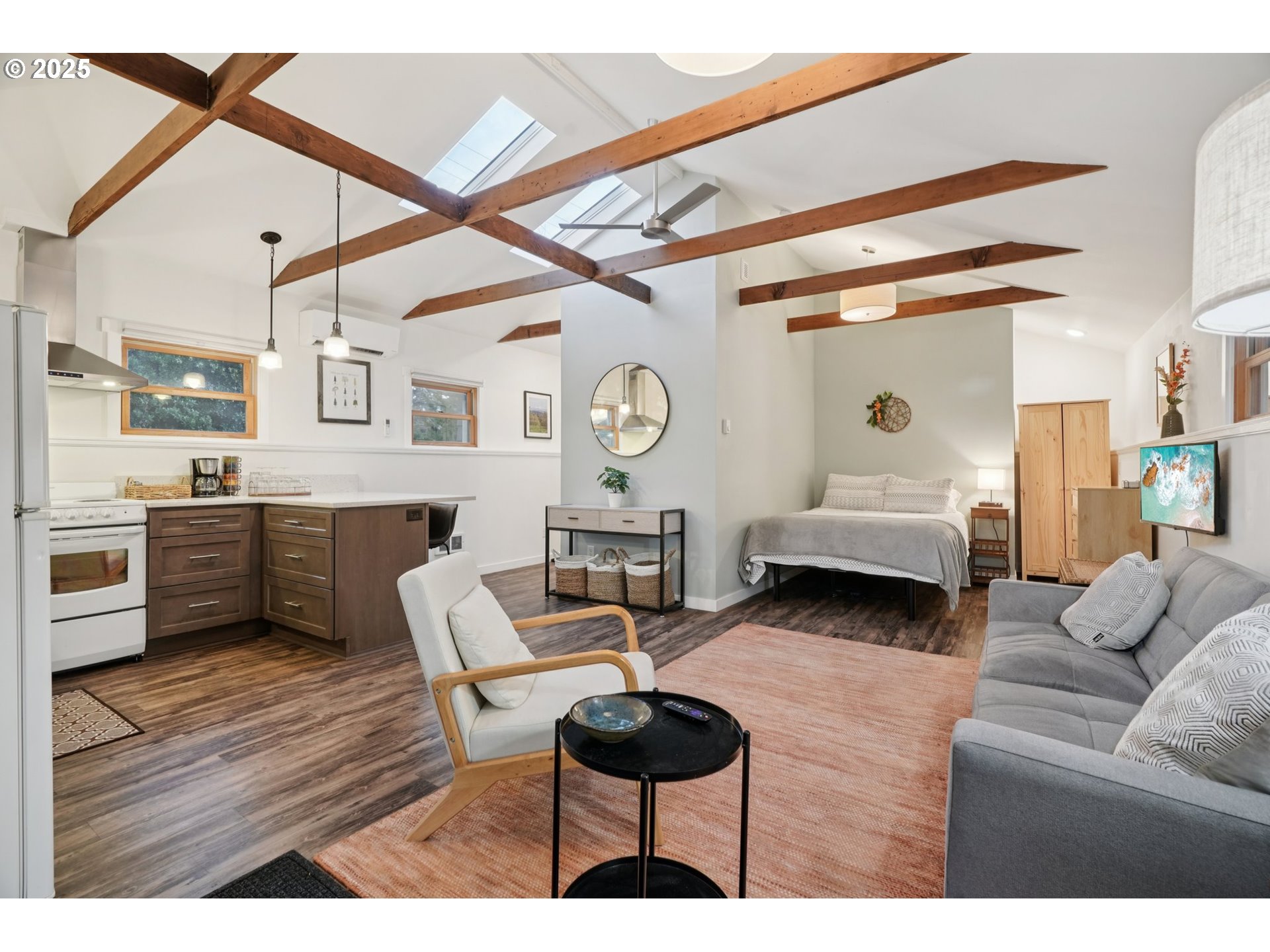 OPEN HOUSE Sat, Nov 22nd from Noon-2pm! This one is a 10! Hip 1949 charm meets modern living in this beautifully cared-for Concordia gem—complete with a Rain Garden installed by the crew of “This Old House” and featured on their show. (YouTube link included in private remarks). Thoughtful updates throughout: newer roof & gutters, Marvin wood/fiberglass windows, tankless hot water, all appliances—including washer & dryer—stay with the main house, NEW AC, quartz kitchen counters, Marmoleum kitchen flooring, and beautiful hardwoods. The fully permitted 2016 ADU is a light-filled studio with vaulted ceilings, laminate flooring, its own washer/dryer, private entrance, and a NEW heat pump. It has a strong history of rental + Airbnb income and comes fully furnished—turnkey and ready for your next tenant or guest. The yard is a sanctuary—an Audubon Gold Certified Native Habitat, permaculture design, raised beds, fig tree, raspberries, sheds, and peaceful plantings at every turn. Holman St is a designated Greenway/Bike Corridor, meaning no through traffic on 33rd, and a tranquil location.Walk to Alberta St., New Seasons, Fernhill Park (2 blocks!), Kennedy School (2 blocks!), and incredible eateries, shops, parks, and services. The U of O campus is nearby. Additional Highlights: • All appliances stay (main house + ADU) • Both washers & dryers included • Tankless H2O heater • Quartz counters• New AC (main house) + New Heat Pump (ADU) • Furnished ADU • Fig tree + raspberries • Raised Beds • Fully fenced yard • Rain Garden • Walk to New Seasons • Walk to Fern Hill Park • Close to Alberta Arts Shops and Eateries.