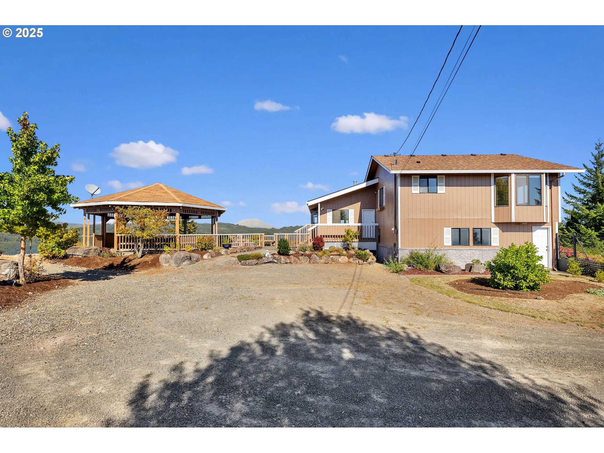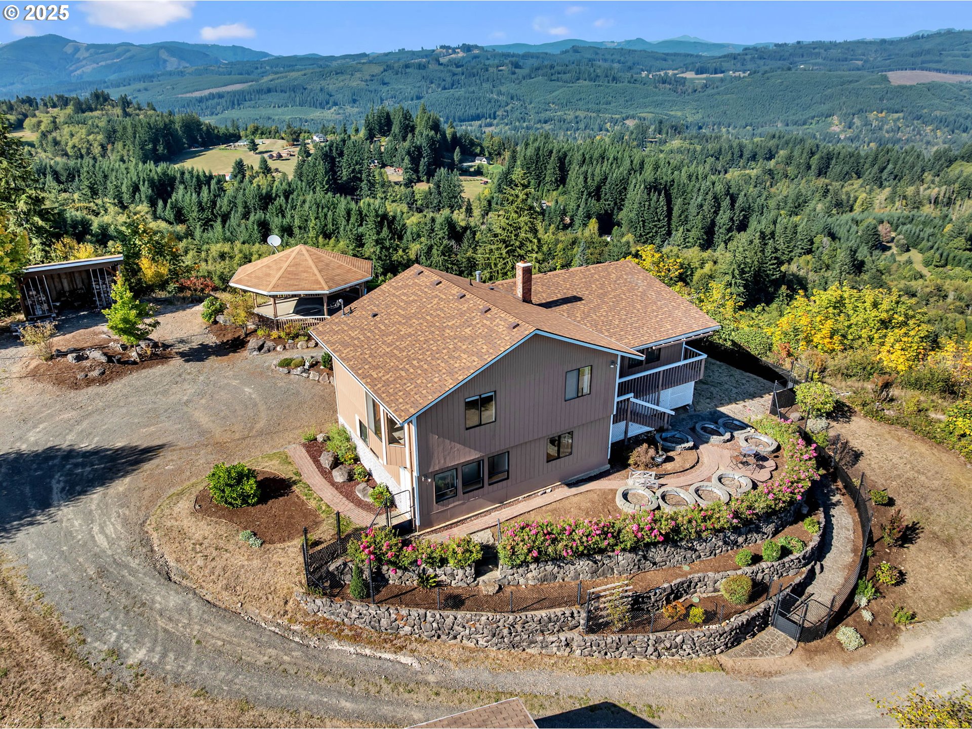 Perched high on your own personal mountaintop, this one-of-a-kind custom-built, single-owner home offers 360 degrees of unimaginable alpine and valley views, from the majestic Mt. St. Helens & Mt. Adams, to the rolling ridges of Tum Tum; a perfect volcanic cinder cone at the end of the valley. Look closely & you can even watch planes lift gracefully from the airstrip, embarking on their next adventure. Step outside & soak in the scenery from the charming gazebo, perfectly positioned for panoramic mountain viewing. This dreamy 5-acre property is dotted with lush apple trees that offer sweet morning bites. For the green thumbs, a pristine fenced garden awaits, complete with a heart-shaped patio, raised beds ready for your vegetable dreams, & a sprinkler system to keep everything thriving. Families of bunnies & deer often linger nearby, just beyond the protection of the fence, adding to the storybook charm of the property. On these acres of pure tranquility, you’ll also find a detached garage with carport, & even an additional space to build a large shop if you choose. This is the perfect blend of peaceful country living & practical comfort. Inside, the home offers cozy cottage charm with endless potential. Imagine sipping your morning coffee while looking through windows that enhance the view even further! Watching eagles soar overhead or listening to doves circling the water feature. In the colder months, gather around the custom-built stone fireplace & enjoy the glow of all four seasons this mountain retreat provides. The property is equipped with modern conveniences: a large well producing 25 gallons per minute, wired for a backup generator, & 5 pressure tanks providing approximately 3 days of water storage, a rare and invaluable feature. This is a home that makes you feel like you’re on vacation every day, yet still just moments from town.And here’s the incredible part: this dream property is available with an assumable VA loan. Don’t just imagine it, come see it