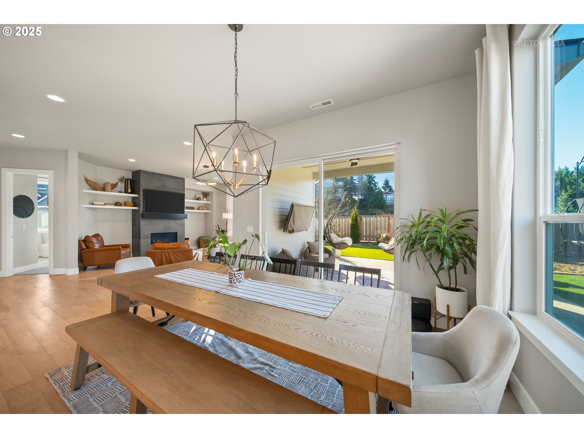 Set on a beautiful corner lot in one of Sherwood’s most desirable neighborhoods, this home combines the best of newer construction with meticulously curated upgrades and exceptional design details, so you can simply move in and enjoy! Striking Northwest contemporary curb appeal welcomes you to thoughtfully designed spaces that blend timeless style with modern convenience. The gourmet kitchen is a showpiece, featuring quartz countertops, a full-height backsplash, custom cabinetry, and a large island with an eat-bar. High-end Monogram appliances and a gas cooktop add both luxury and function. The light-filled dining area opens to a covered patio, perfect for effortless indoor-outdoor entertaining. Relax in the inviting family room by the dramatic floor-to-ceiling fireplace or take advantage of the flexible main-level layout with a bonus room ideal for an office or fifth bedroom. A custom mudroom and hidden walk-in pantry add smart design touches. Upstairs, the serene primary suite feels like a private retreat with a coved ceiling, barn door, and spa-inspired bath featuring dual sinks, a soaking tub, and a tiled walk-in shower. Three additional bedrooms and a spacious bonus room offer versatility for every lifestyle. The fully fenced backyard is ready for year-round enjoyment with a covered patio, extended seating area, turf yard, and sport court. With engineered hardwoods, premium finishes, central air conditioning and a three-car garage, this home stands out for its quality and craftsmanship. Perched on a storybook neighborhood homesite with stunning treed views and convenient to Old Town Sherwood, top-rated schools, wineries, parks, and trails, this is a rare opportunity to own a better-than-new home, at a great value, in an unbeatable location!