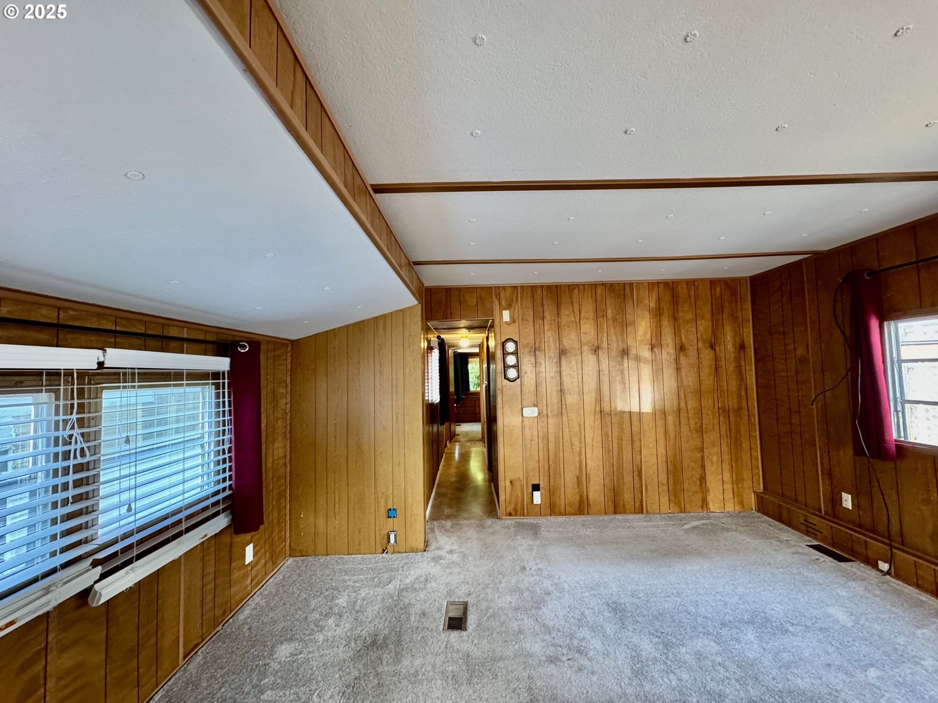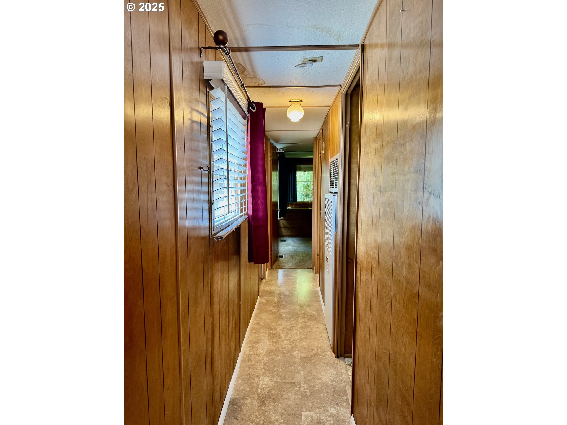 Enjoy life in a 1960's retro time capsule for 55+ folks. This is a step back into a simpler life and a beautiful setting. It has been well maintained by past owners with just minor upgrades. The biggest and the best improvement is a new heat pump installed in 2023. This home was placed on this lot in 1967, I do believe. Most of the homes in this park are from the 1960's and are very art deco in their style. A very unique group of homes. There is a paved driveway along the east side, of the home,long enough for 2 cars to park in line.There is a nice large bump out in the living room area with lots of windows and the original real wood paneling that was very popular in the 60's and is in very good condition. The home has been professionally cleaned so is move in ready. The 2nd bedroom is being used as the laundry room and there is a walkin shower in the bathroom. There are two covered porches at the front and back doors. There are large windows throughout the home to let in lots of natural light, especially in the kitchen which you enter through an arch way.The park had its beginnings in the 60's and has a freshly updated Community Center. Come and make yourself comfortable in these beautiful surrounding. Maybe the most important thing is LOCATION,LOCATION. So close to everything. Bus lines, stores and lots of places to eat. Pets can be allowed and there is a new fenced dog park for them.