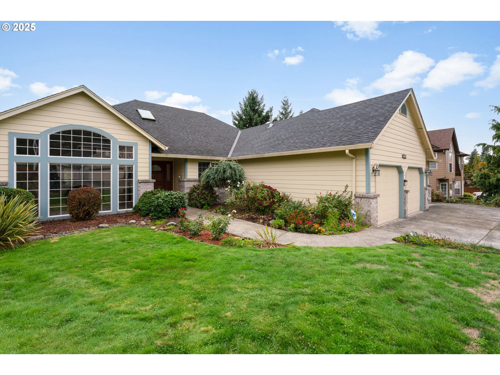 Beautiful Ranch Home in Desirable Salmon Creek NeighborhoodWelcome to this meticulously maintained ranch-style home nestled on a quiet street in the sought-after Salmon Creek area. Situated on a generous lot with mature landscaping and a full sprinkler system, this property offers privacy, space, and exceptional outdoor living with a covered rear deck perfect for year-round enjoyment.Step inside to find spacious, light-filled rooms, including a sunken living room with vaulted ceilings and a large windows that floods the space with natural light. The formal dining room is ideal for entertaining, while the vaulted family room features a cozy gas fireplace, ceiling fan, and elegant French doors.The roomy kitchen is a chef’s delight, complete with granite countertops, a pantry, an eating area, and an included refrigerator. The master suite is a true retreat with vaulted ceilings, a ceiling fan, and a luxurious en-suite bath featuring a soaking tub, separate shower, double sinks, and a large walk-in closet.Additional highlights include:- Brand new carpet- Skylight and central vacuum system- Gas forced air heating and air conditioning- New roof and fiber cement lap siding (installed 7–8 years ago)- Laundry room with built-in sink, washer, and dryer included- 3-car garage with workbench.- RV parking for added convenience - Gardeners delightThis home combines comfort, functionality, and timeless style in one of the area's most peaceful settings. Don’t miss your chance to own this exceptional property!