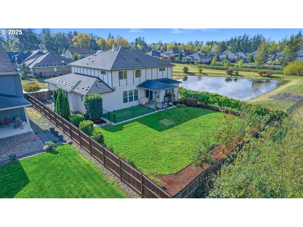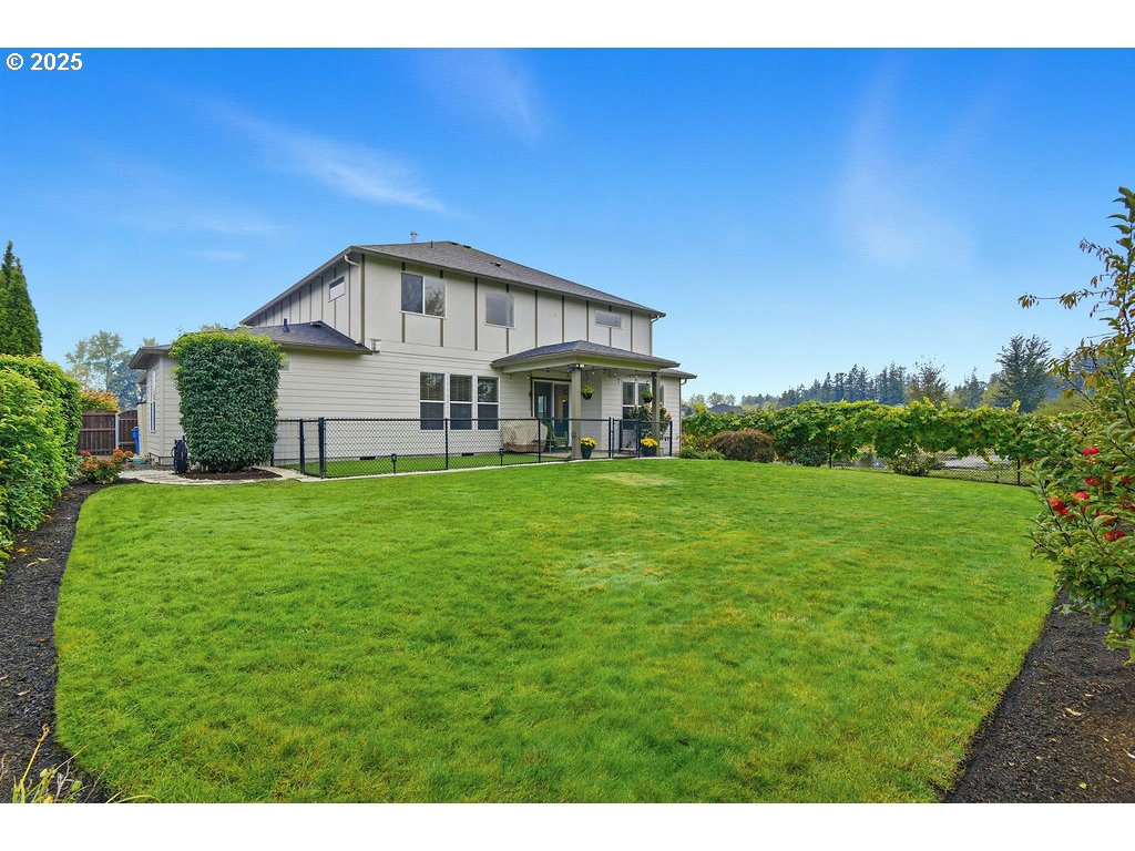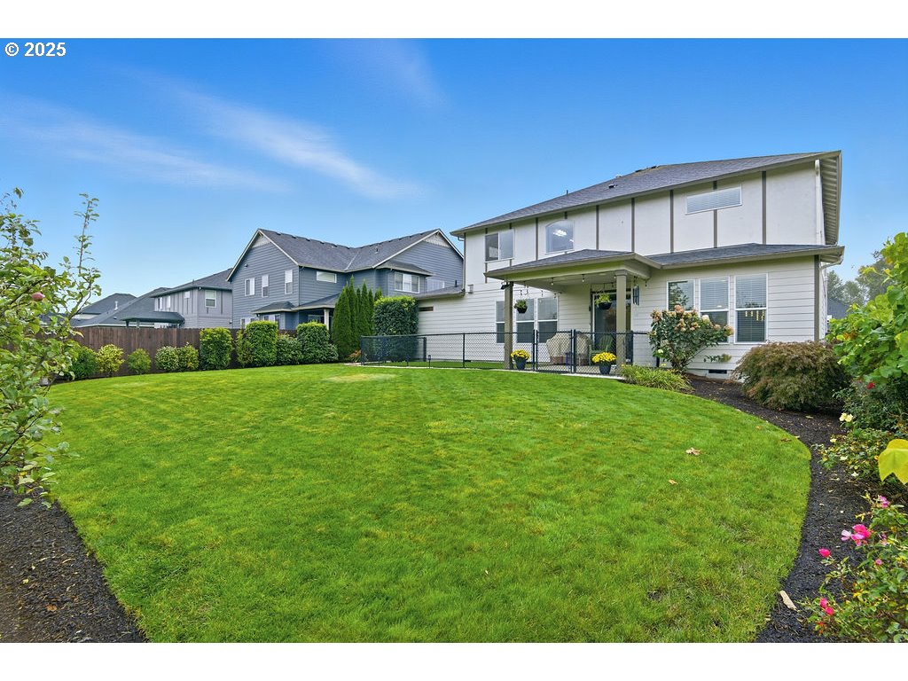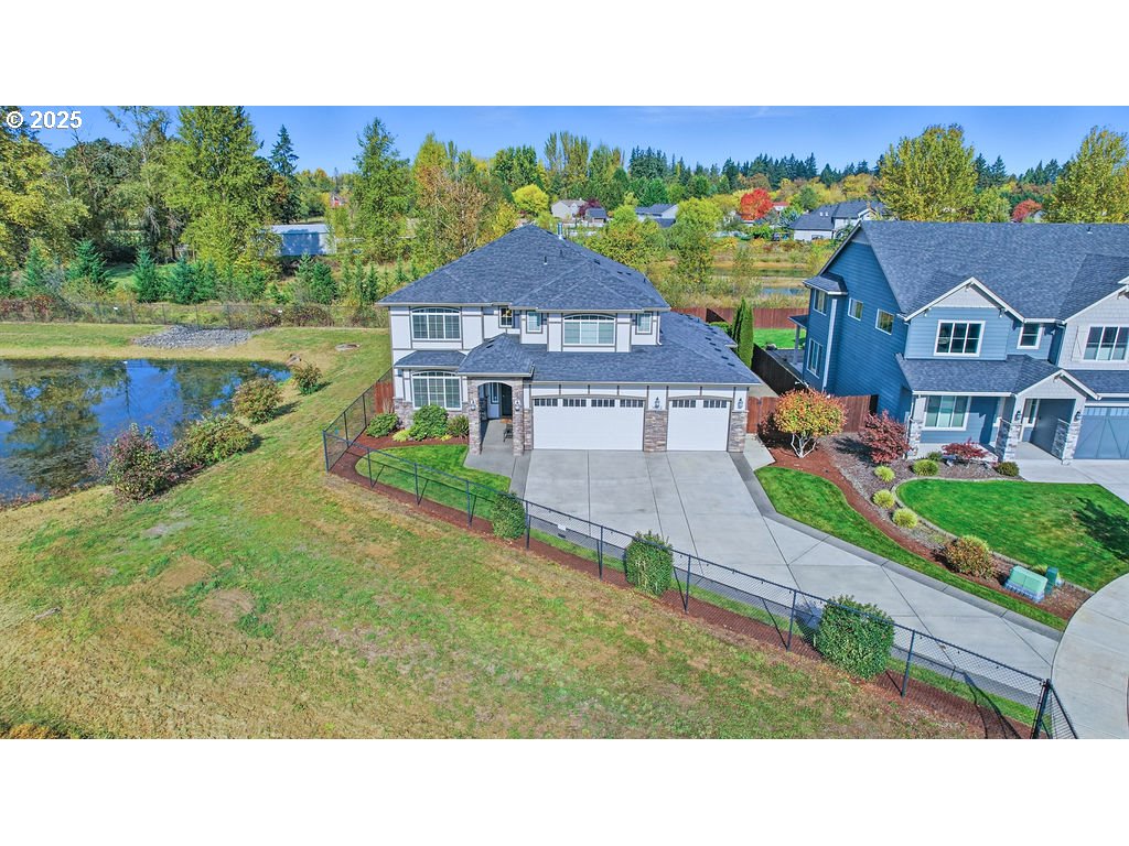 Don't miss Fieldstone's Finest! Perfectly placed, and meticulously maintained, this showstopper checks all the boxes! Experience better living in this versatile New Tradition home that blends style, flexibility, and functionality.The home's spacious, and natural light-filled rooms, include upgraded finishes throughout. The open-concept main level features a large great room that flows seamlessly into the kitchen, complete with an oversized island and adjoining dining area, ideal for hosting family and friends, an ensuite bedroom with walk-in closet, perfect for guests or multigenerational living, and a den/office. The upstairs is highlighted by a retreat-like primary suite, featuring two walk-in closets, a luxurious bathroom featuring dual vanities, soaking tub, and walk-in shower. The upstairs offers two additional bedrooms, a full bath with tub/shower combo, a media (flex) room, and laundry room.The over-sized 3-car garage boasts abundant storage and an extra-deep third bay with a work bench. The corner quarter-acre lot offers a private and peaceful retreat, next to a retention pond, and backing to a conservation greenbelt and wildlife habitat. The fully fenced backyard features a covered patio and a fenced dog run. The property is part of a friendly HOA that hosts seasonal community social events.
