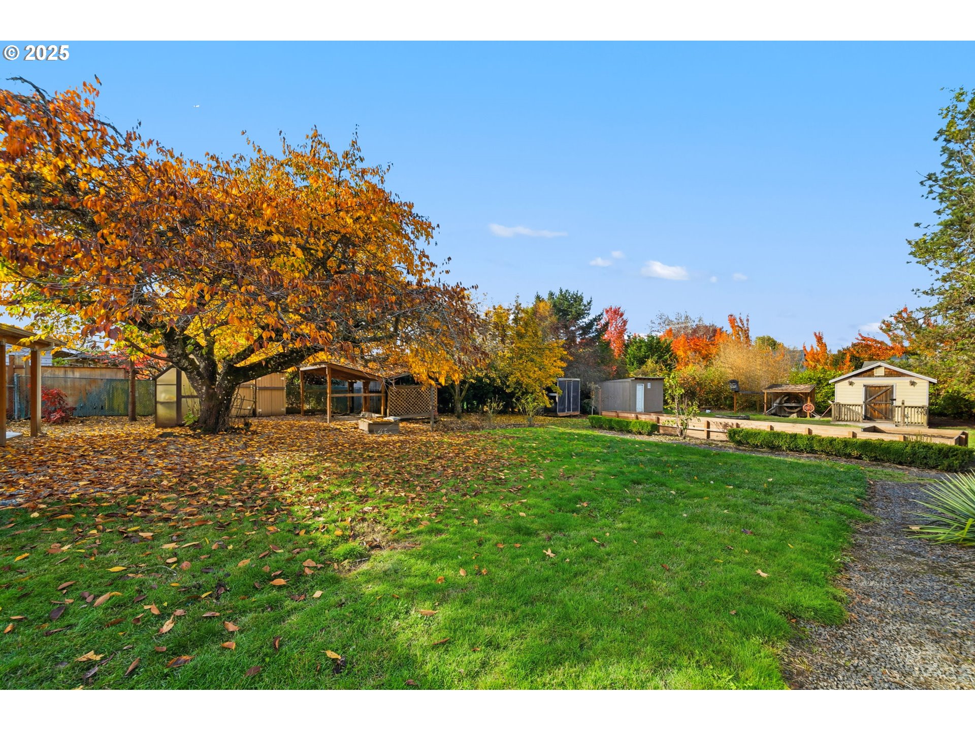 Sweet, well maintained ranch not far from Pacific University. This 2 bedroom, 1.5 bath home has a living room/dining/kitchen combo (complete with wood burning fireplace) with lots of cabinets and eating bar, storm windows, covered patio, fenced, landscaped yard with two storage sheds and a green house and RV Parking. Come make this one-level charmer yours! Photos being taken on 11/8/25.