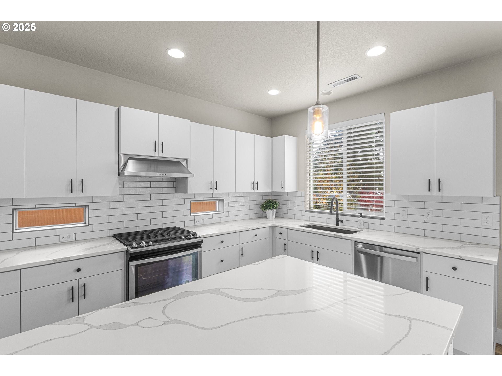 Built in 2018, this 2,626 sq. ft. home offers modern design and comfortable living throughout. The open-concept main level features a bedroom and full bath—perfect for guests, an office or multigenerational living. The kitchen impresses with sleek quartz countertops, pantry, stainless steel appliances, and a gas range, opening to a bright dining area and great room ideal for entertaining.Upstairs, a generous loft provides flexible space for a media room, office, or play area. The vaulted primary suite is a true retreat—measuring 20x16—with a luxurious ensuite bath featuring a soaking tub, separate shower, and walk-in closet. Two additional bedrooms and another full bath complete the upper level.Step outside to a large composite deck overlooking the backyard—perfect for gatherings or relaxing evenings. The yard has many plantings, including birch trees, cherry blossoms and hydrangas. A rare 3-car garage provides ample storage and parking. Modern finishes, thoughtful layout, and quality craftsmanship make this home move-in ready and exceptional in every way.
