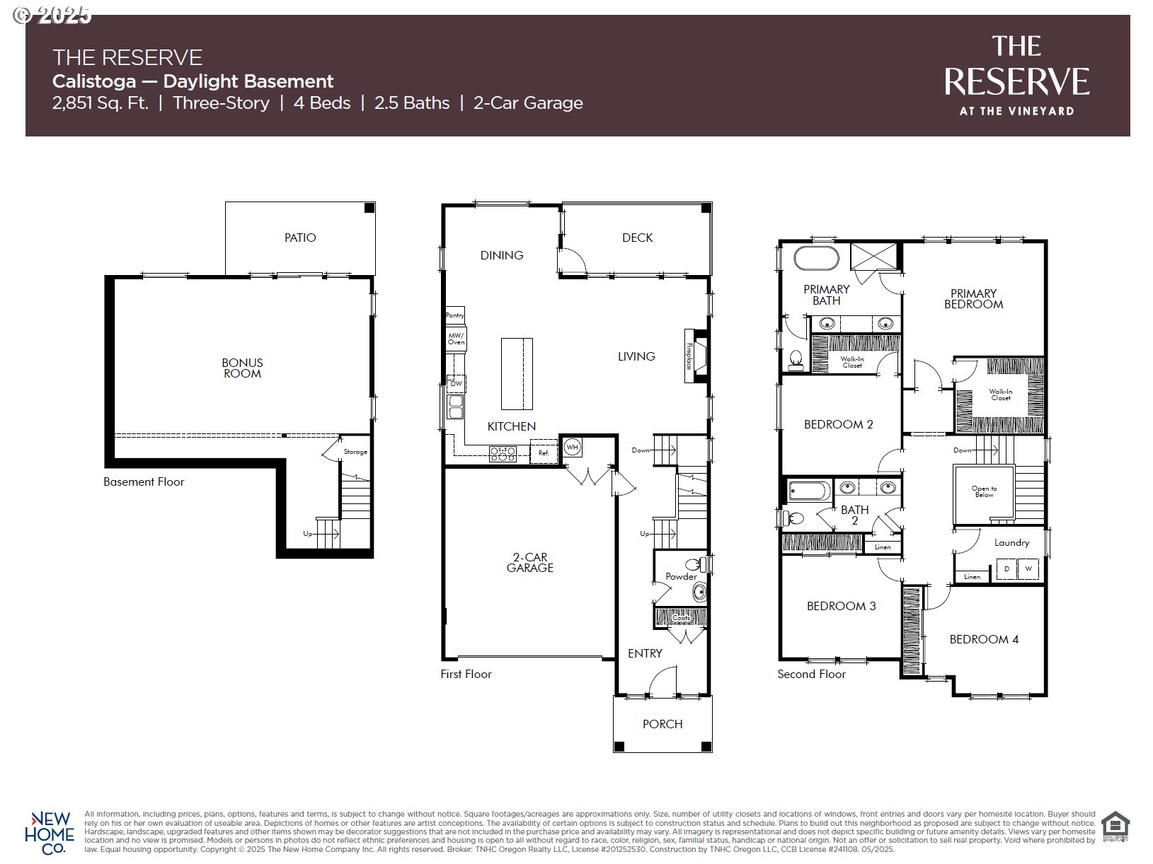 Exceptional Calistoga Home with Daylight Bonus Room and Southern Views! Explore the unique charm of our Calistoga Home at The Reserve, a rare gem featuring a Daylight walk-out bonus room. The daylight bonus room, featuring 8-foot ceilings and a walk-out patio to the fenced yard, serves as a versatile space, ideal for an office, TV room, gathering room, or hobby room. Enjoy the covered deck off the dining/living room on the main floor. The home offering serene views of the green trees area to the South and sunsets to the west. The kitchen is a focal point with a gorgeous large quartz island and a functional L-shaped design. Never worry about storage space again with the generous pantry, keeping your kitchen organized and clutter-free. The Calistoga floor plan includes a wall oven, microwave, and a gas 5-burner cooktop with a hood for plenty of enjoyment. Indulge in the spa-like primary bath with a soak tub and shower, featuring dual sinks. The primary bedroom includes a spacious walk-in closet, and the convenient laundry room upstairs comes with linen storage. The Vineyard community offers numerous amenities, including walking and biking trails, nearby shopping at Progress Ridge, and easy access to major freeways. Don't miss the chance to call this amazing Calistoga home yours!
