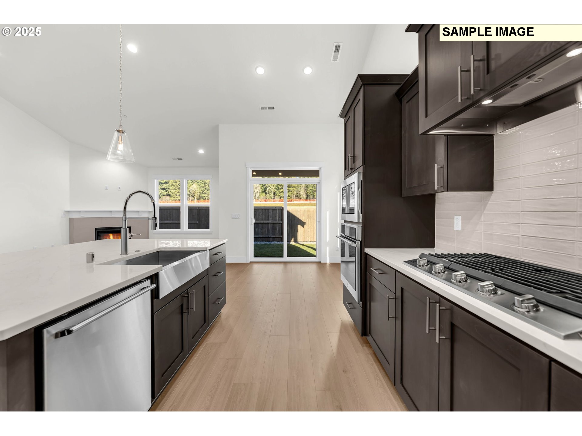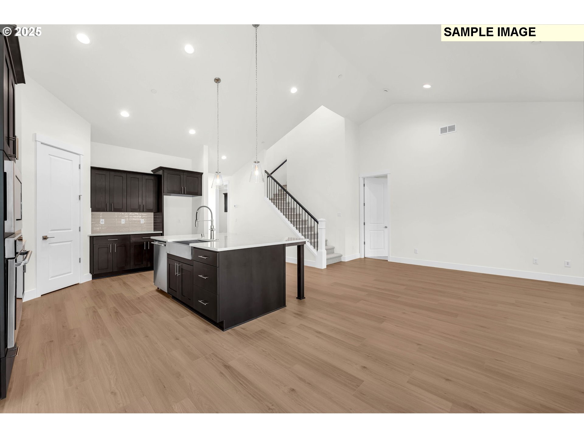 The 2096 Plan features a large vaulted open main floor with two car garage plus shop. Laundry, office/guest bedroom with full bath and open great room, and a primary suite complete the main level. The second floor layout has two bedrooms and a full bathroom. Standard features include a large kitchen island, gas range cooking, A/C, forced air heating, beautiful trim work, soaking tub in primary bathroom, 9 ft ceilings on main floor with 8 ft doors, 8 foot ceilings upstairs, covered back patio, fully fenced yard. Upgrades included: laminate flooring throughout, gourmet kitchen layout, tile shower, quartz counters in kitchen and bathrooms and full tile backsplash. Welcome home to Ramble Creek, a brand-new community in a pristine wooded setting with walking trails, parks, a playground, creek and tall trees, all within easy access to I-5 and I-205. Please come by for a tour, open daily 10-5! Check in at the Model Home located at 4519 NE 183rd Street Vancouver, WA 98686
