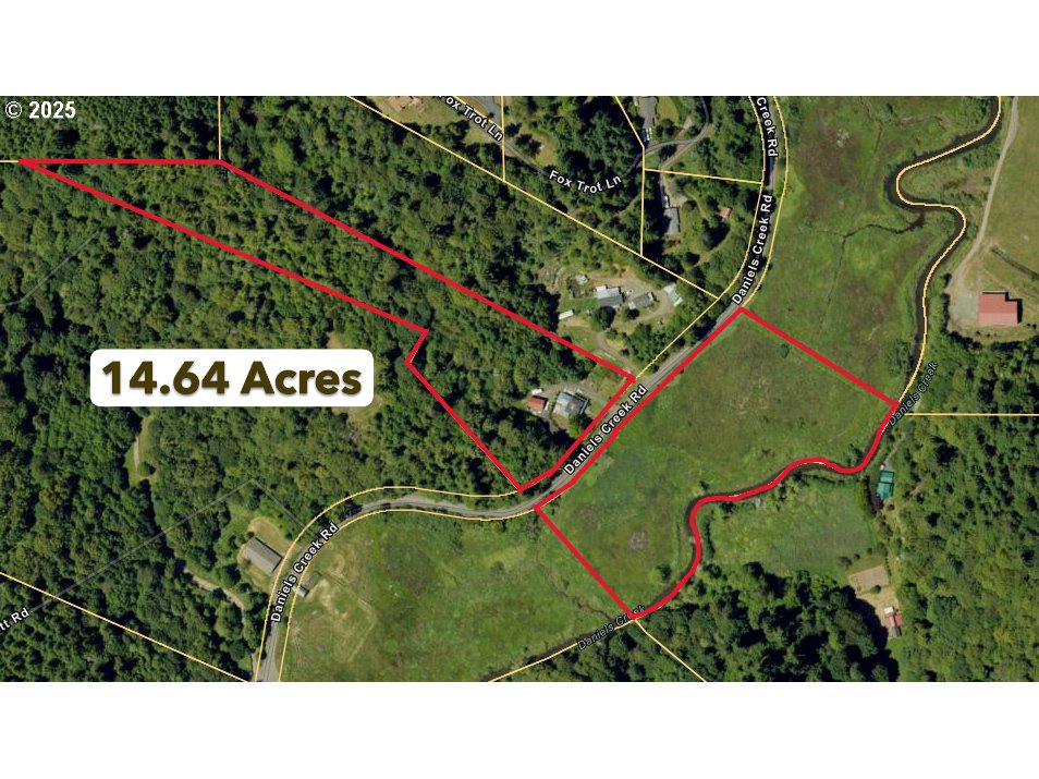 Coos River Lane, right on Daniels Creek about 1/2 mile, house on right. Pasture and creek on left.