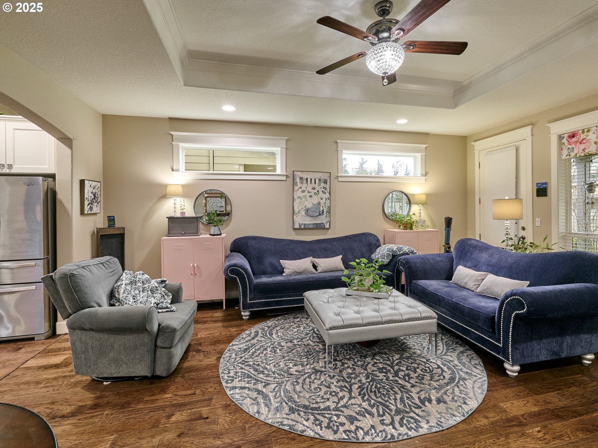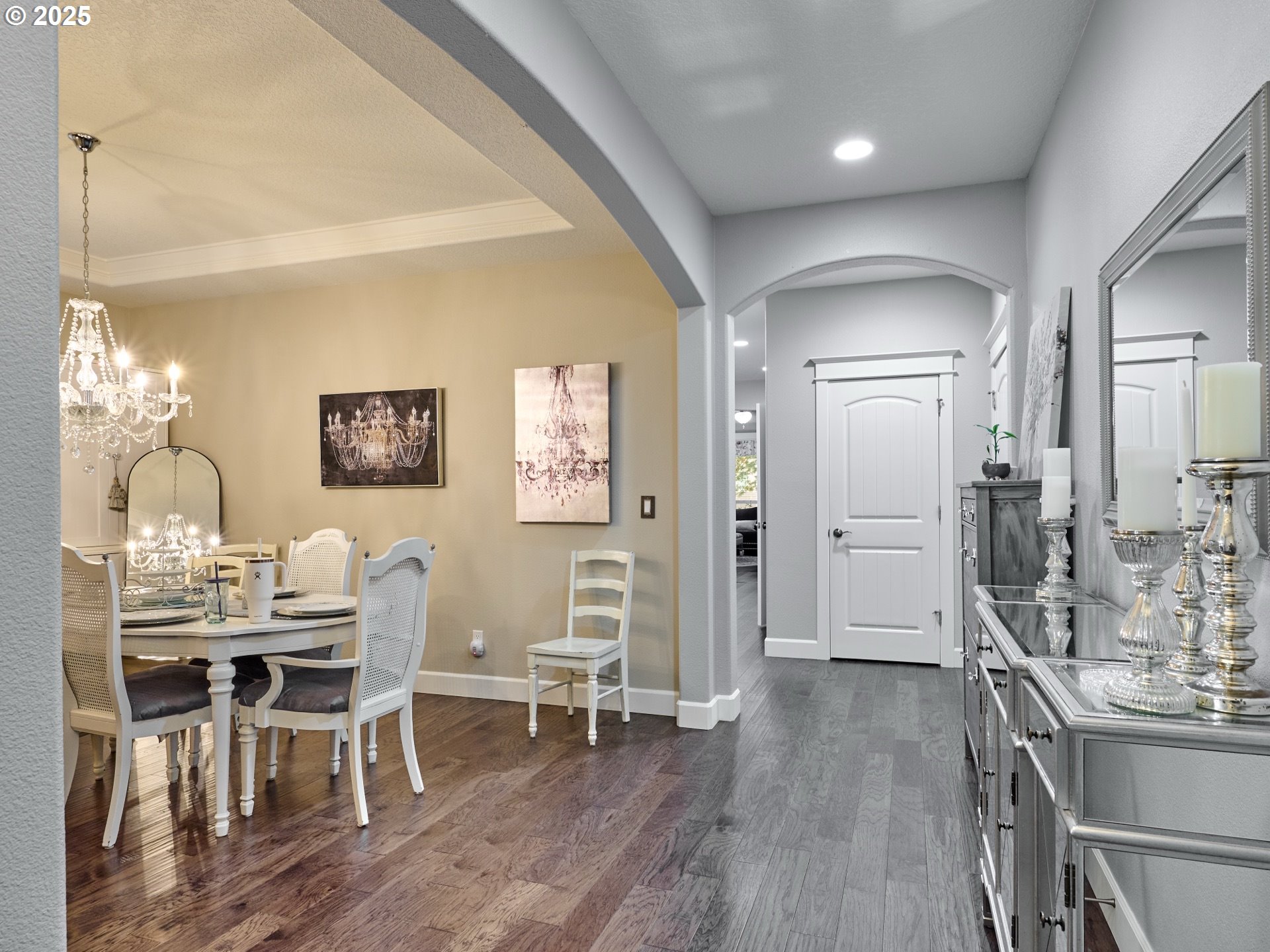 Spacious home in Woodburn’s desirable Tukwila community! This beautifully designed 3-bedroom home offers flexible living spaces, standout architectural details, and access to the community pool, tennis/pickleball courts, meeting room, and common areas. The main-level owner’s suite features a unique dual-access laundry room for added convenience. Upstairs, a generously sized bedroom with an attached full bathroom which functions perfectly as a second primary suite. A cozy loft at the top of the stairs creates an ideal hobby, gaming, or reading area. This home includes 3 bedrooms, an additional bonus room, a dedicated office/den, and a separate formal dining area—providing exceptional versatility for living, working, or hosting. Enjoy the comfortable flow of the open-concept kitchen leading into the warm and inviting living room, perfect for everyday living and entertaining. Custom archways, impressive ceiling architecture, and abundant storage enhance the home’s elegant character. Outside, the fully fenced backyard and covered patio offer year-round enjoyment and privacy. Located just steps from the OGA Golf Course, this home blends comfort, style, and top-tier community amenities in an ideal Tukwila location.